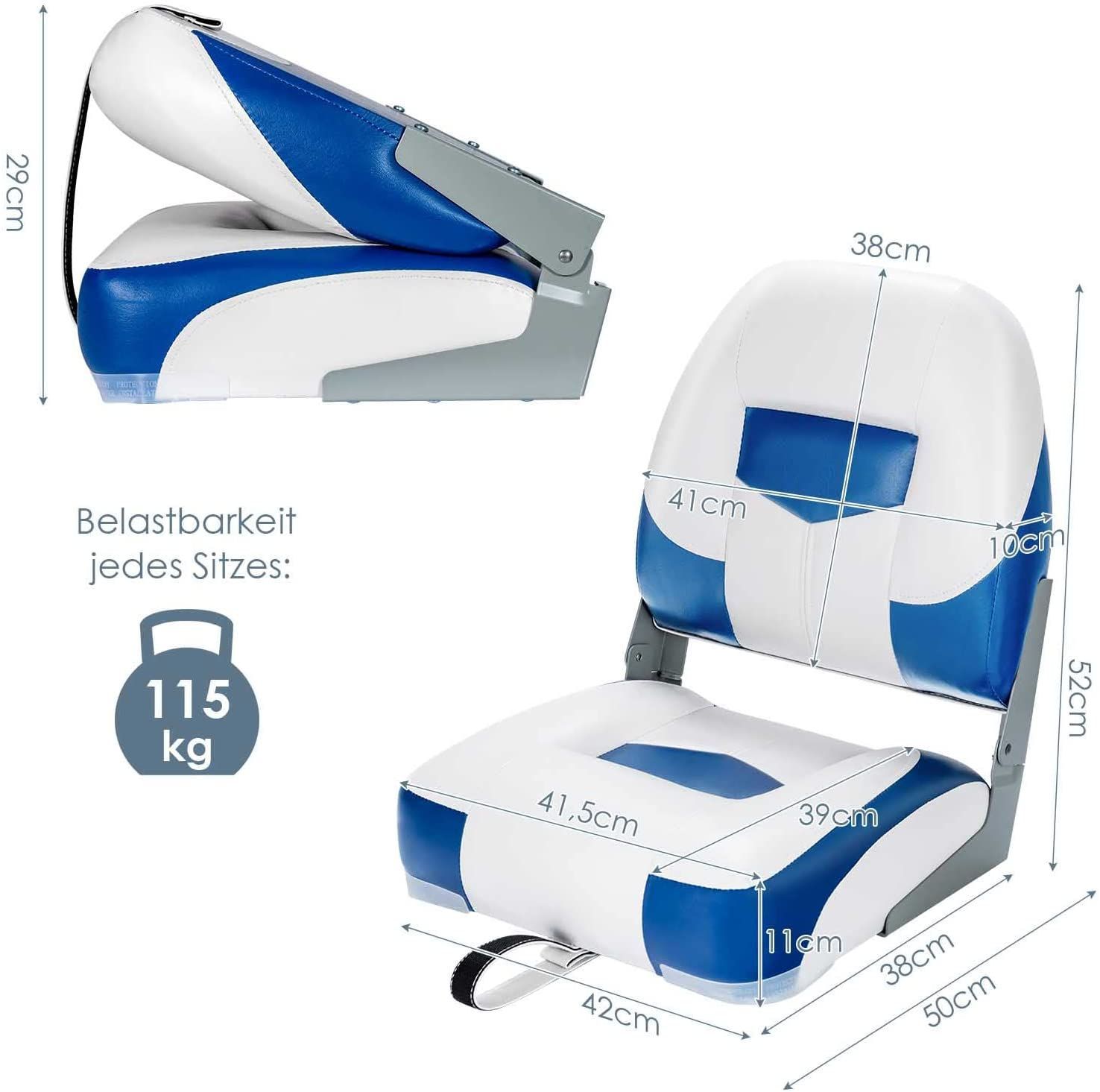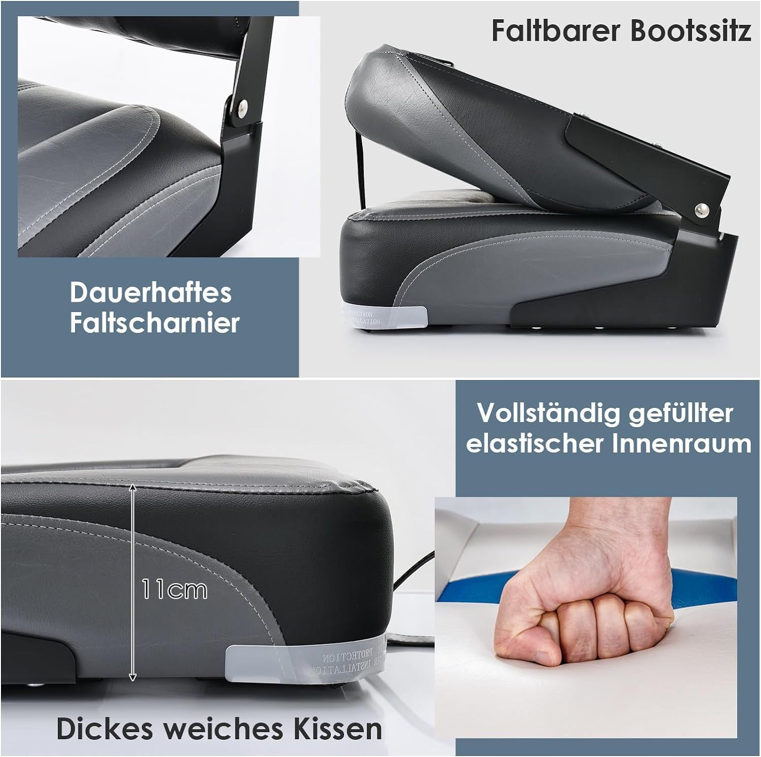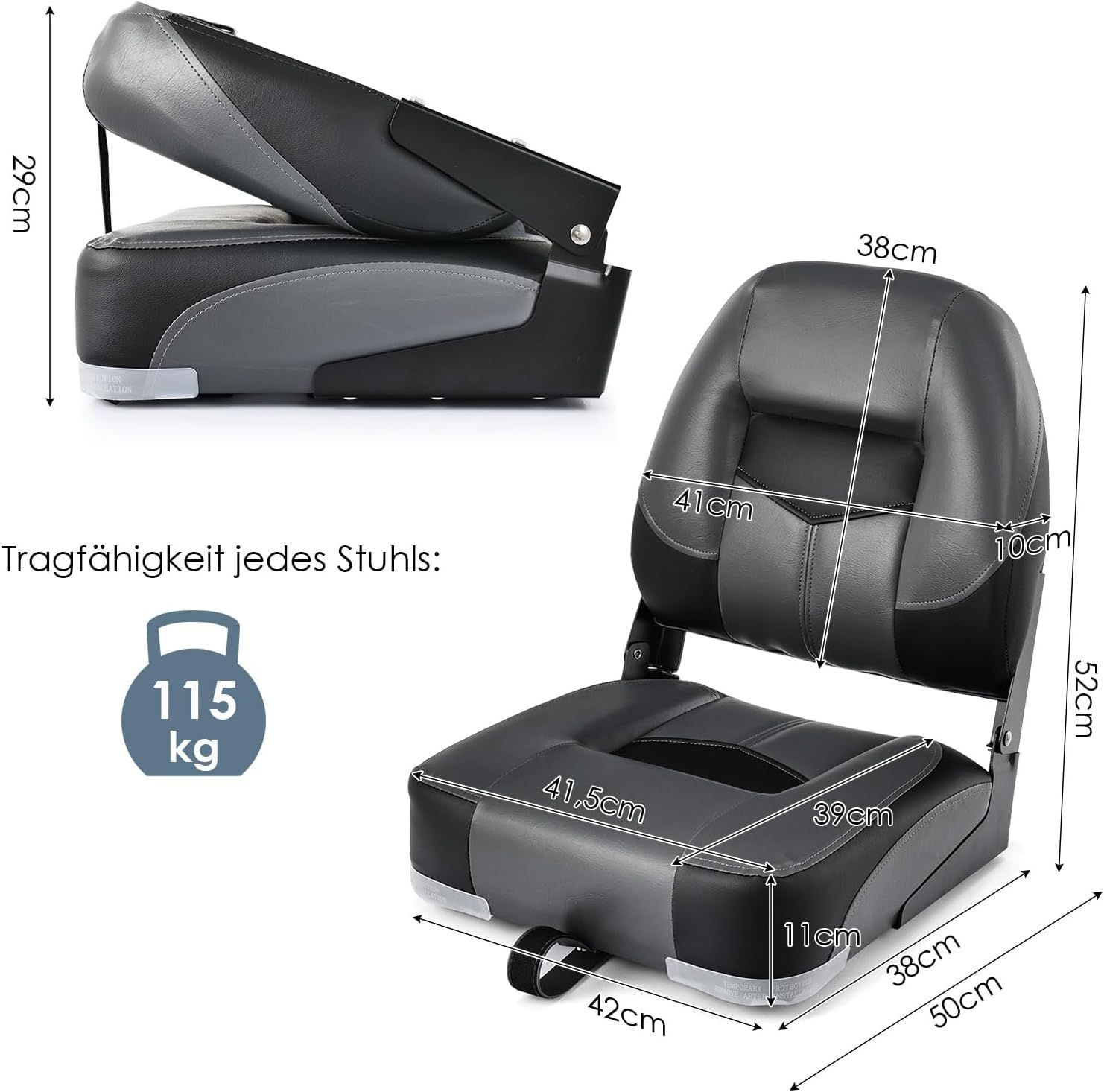 2er Bootssitze Set Bootsstuhl klappbar, Steuerstuhl Klappsitz mit Befestigungsgurt