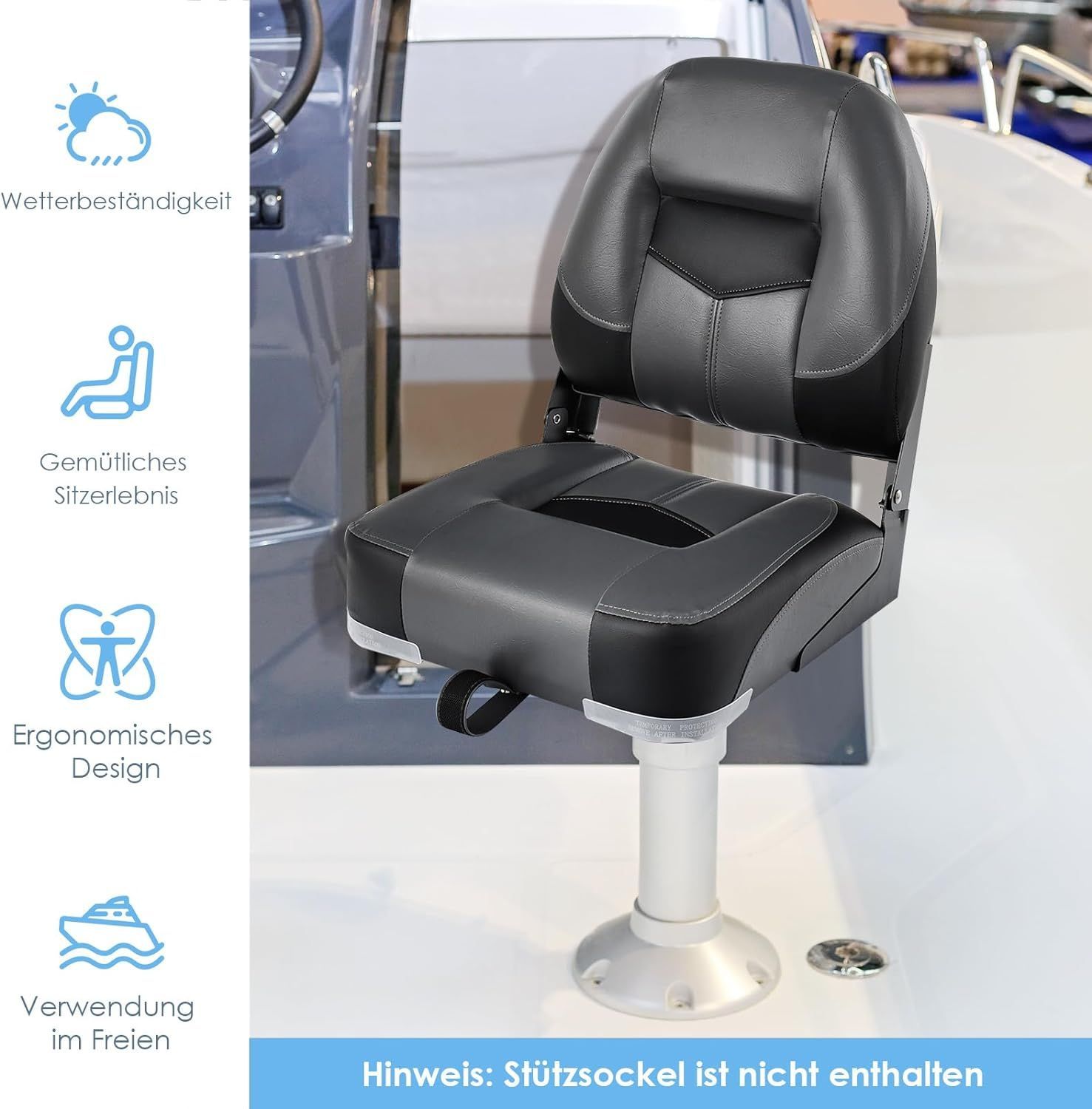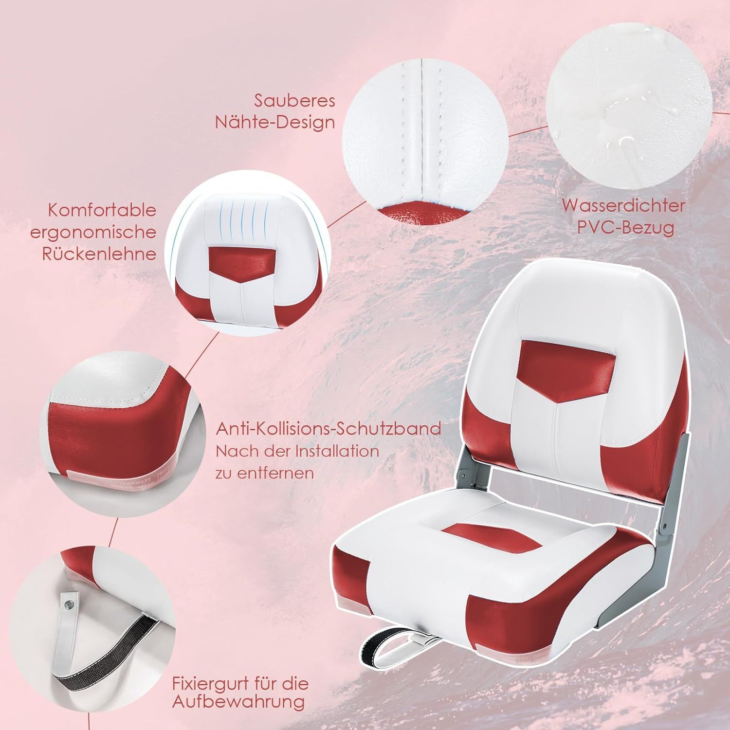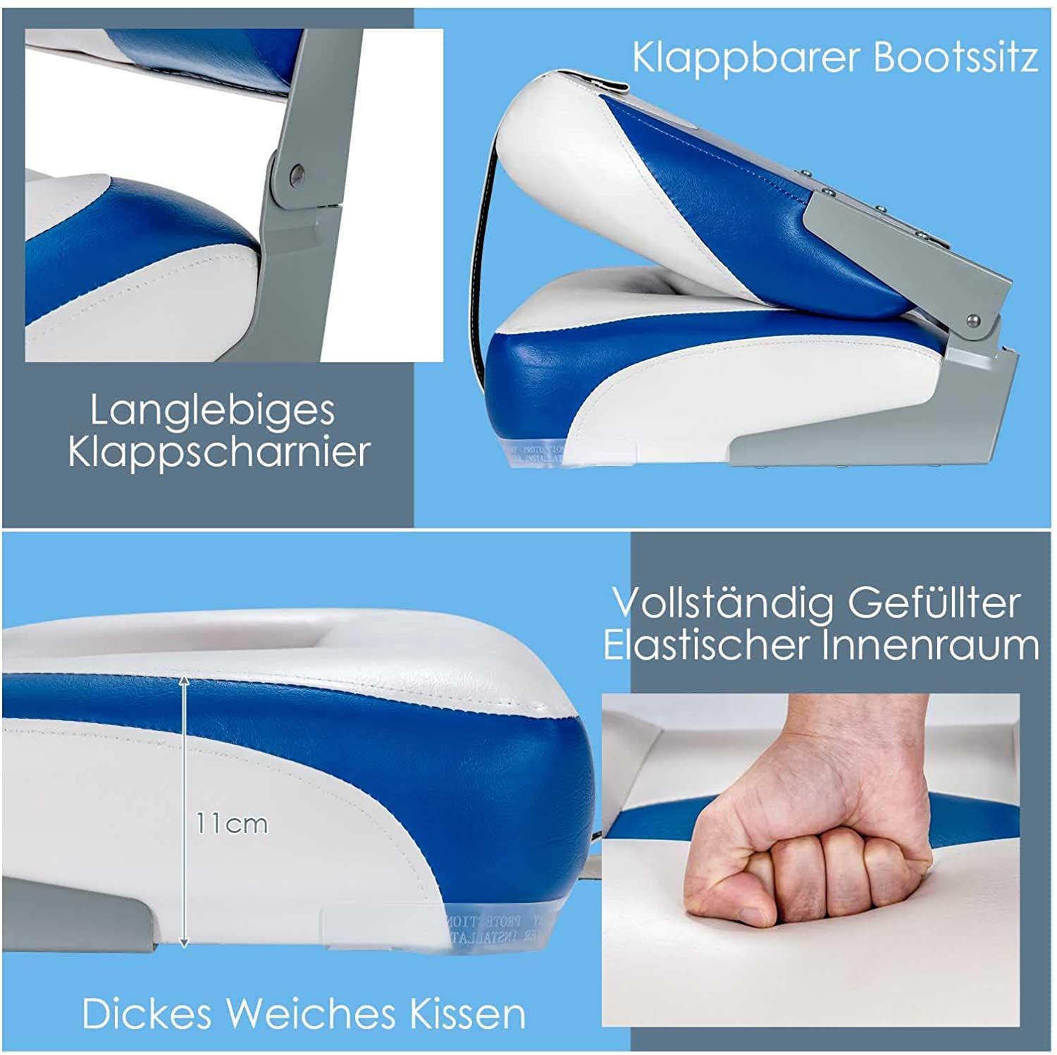2er Bootssitze Set Bootsstuhl klappbar, Steuerstuhl Klappsitz mit Befestigungsgurt