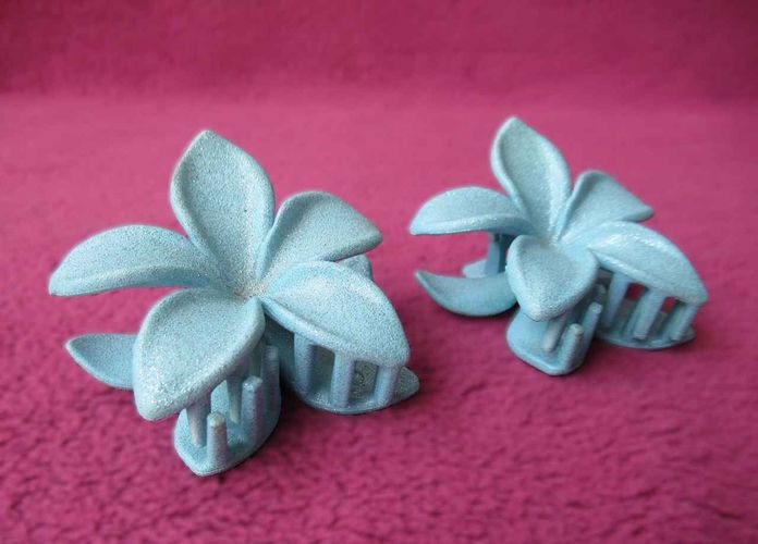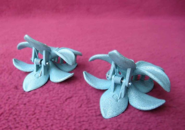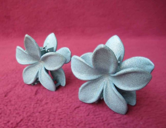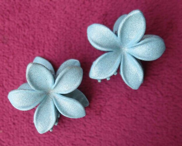 2er Haarclip Glitzer Haar Blüte hell blau Haarklammer Hawaii Blume Kralle Clips