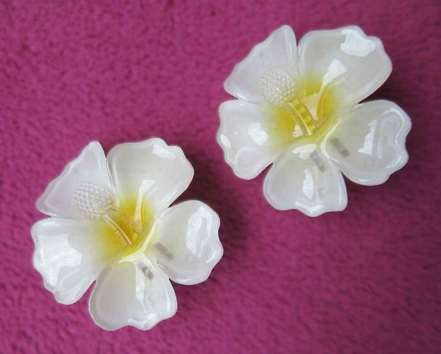 2er Haarclip Glitzer Haar Blüte weiß Haar Spange Klammer Hawaii Blume Kralle Clips