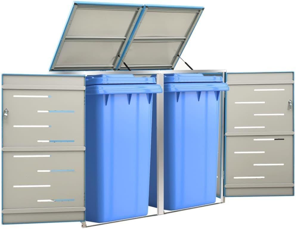 2er Mülltonnenbox JAGU Edelstahl Blau 115,5x138x77,5cm Mülltonnenverkleidung für 2