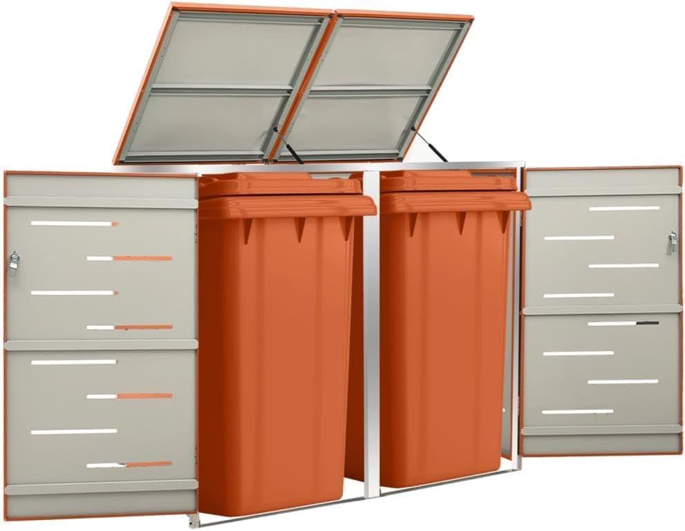 2er Mülltonnenbox JAGU Edelstahl Orange 115,5x138x77,5cm Mülltonnenverkleidung für 2