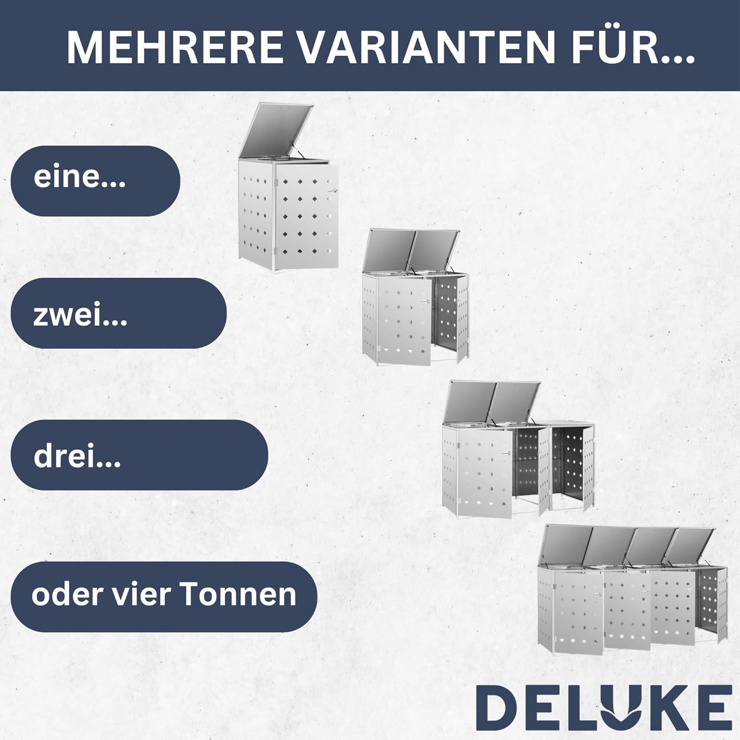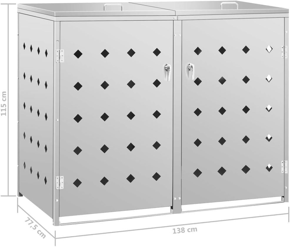2er Mülltonnenbox SOGI Edelstahl 138x115x77,5cm silber Mülltonnenverkleidung für 2