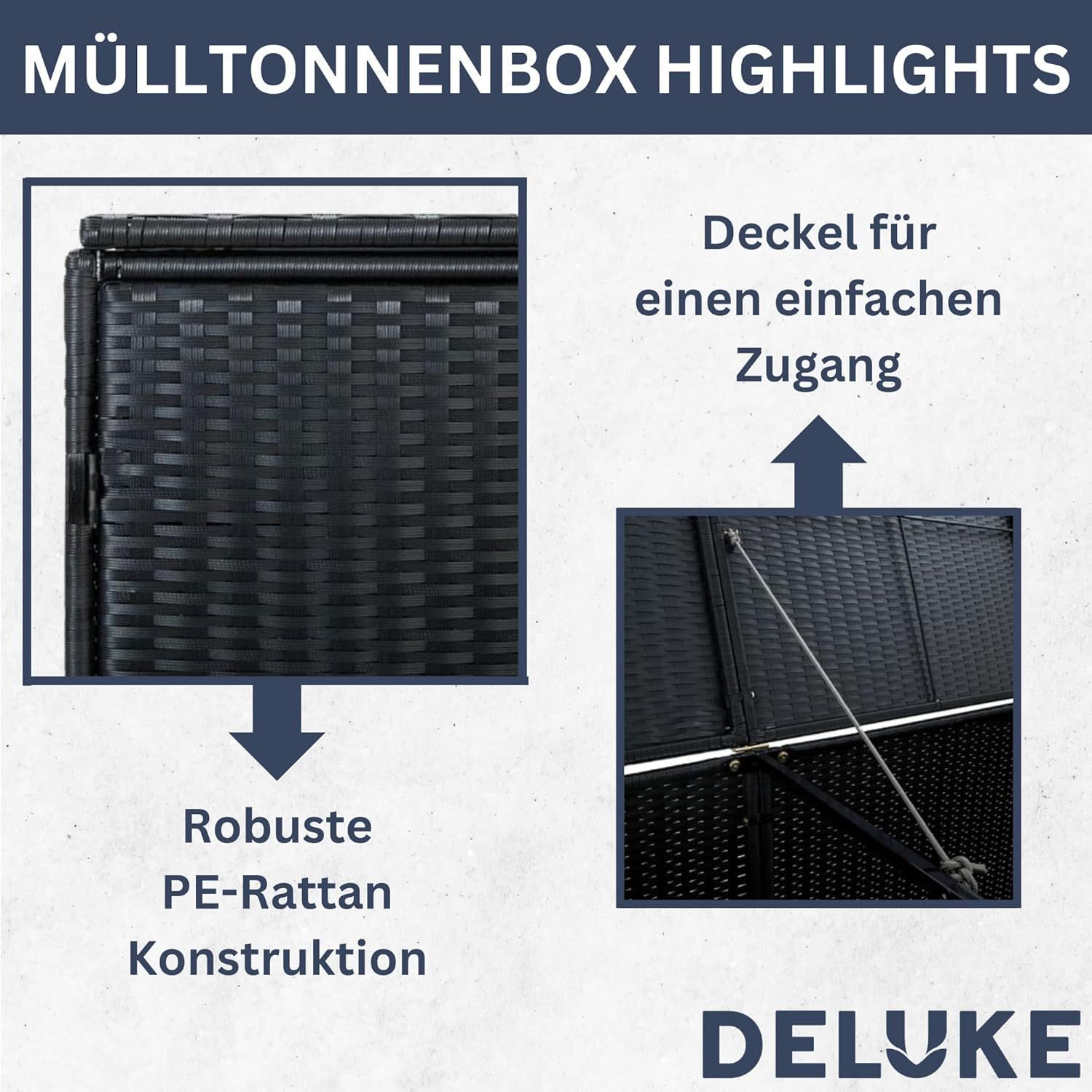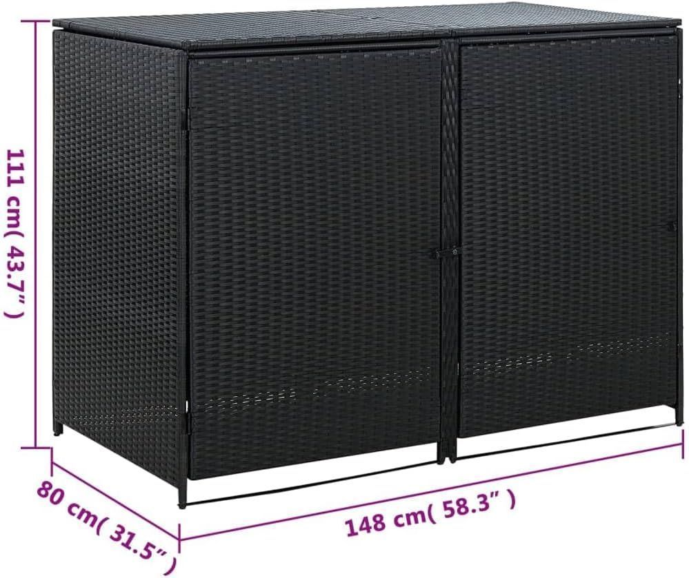 2er Mülltonnenbox TRIE Rattan 111x148x80cm Schwarz Mülltonnenverkleidung für 2 Tonnen