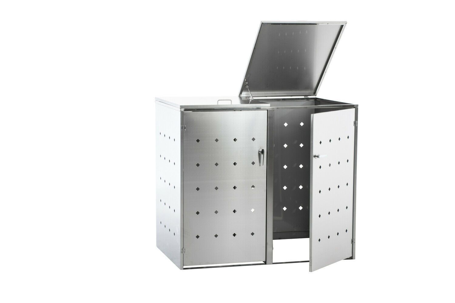 2er Mülltonnenverkleidung Edelstahl mit Deckel Mülltonnenbox/ Schutz zwei Tonnen