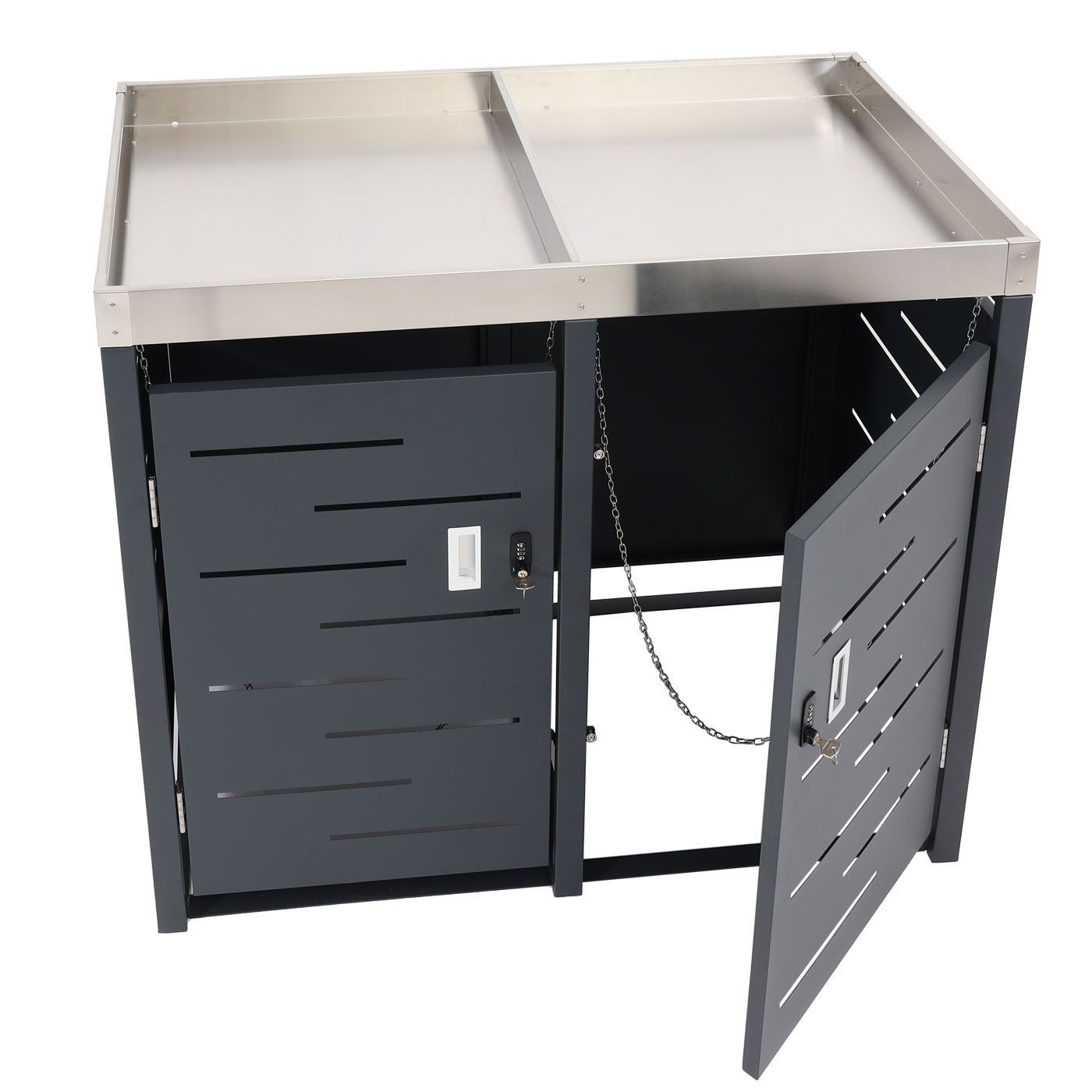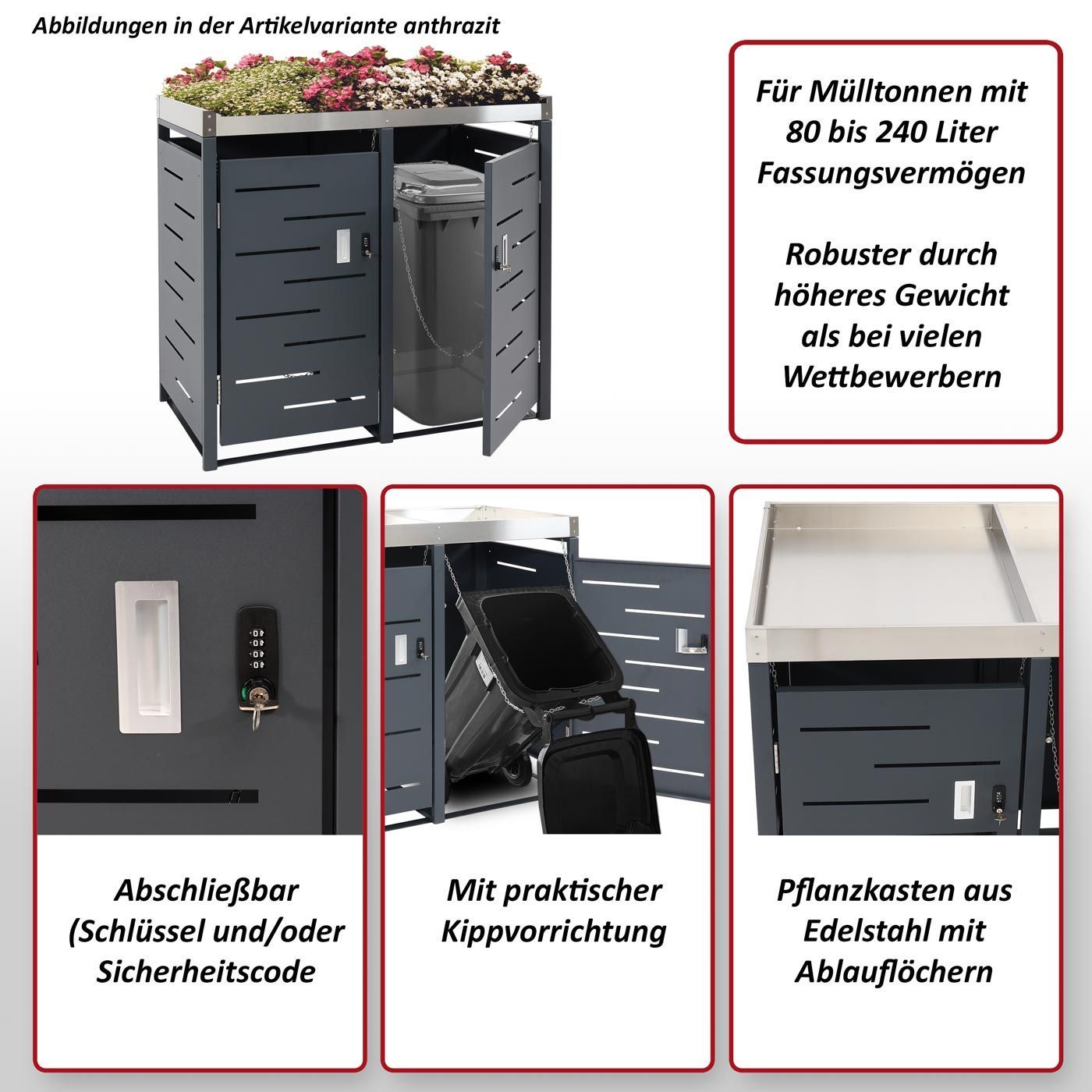 Mendler 2er-Mülltonnenverkleidung HWC-H40b, Pflanzkasten Edelstahl-Metall-Kombi 110x115x62cm