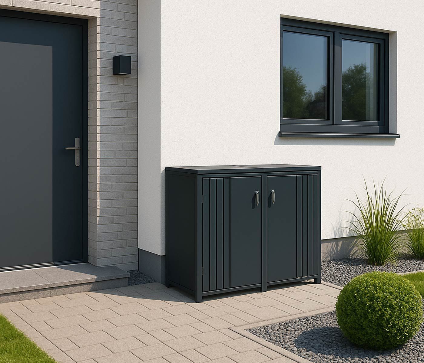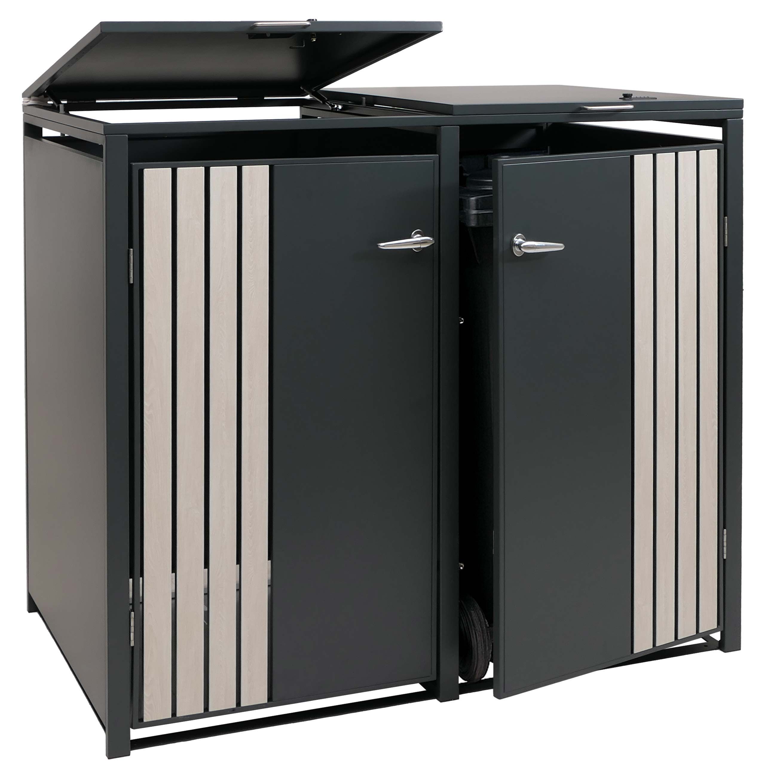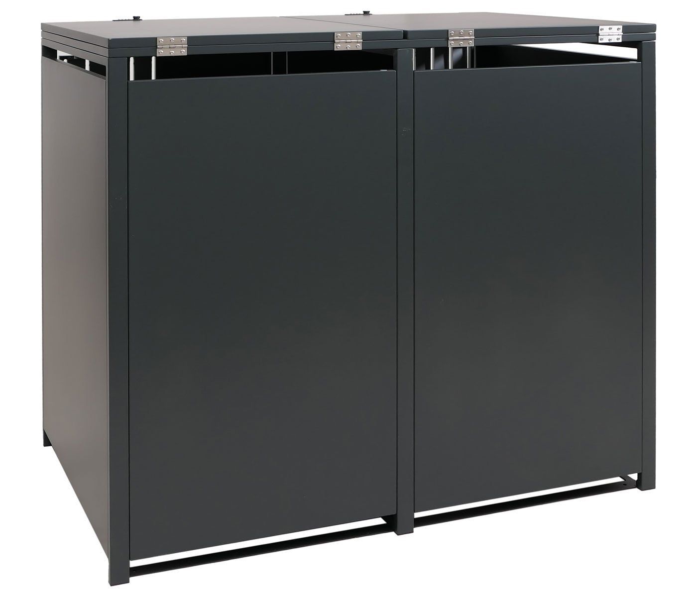 • Wiltec Mülltonnenbox für zwei Tonnen Anthrazit Klappdeckel Mülltonnenverkleidung