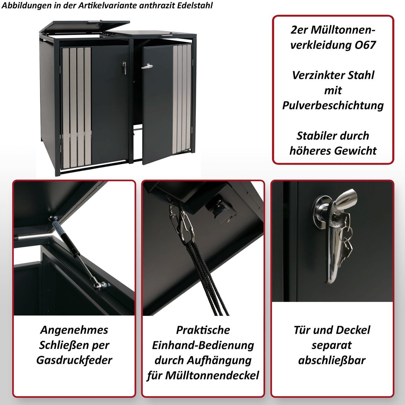• 2er Mülltonnenverkleidung anthrazit Edelstahl mit Deckel Mülltonnenbox / Schutz