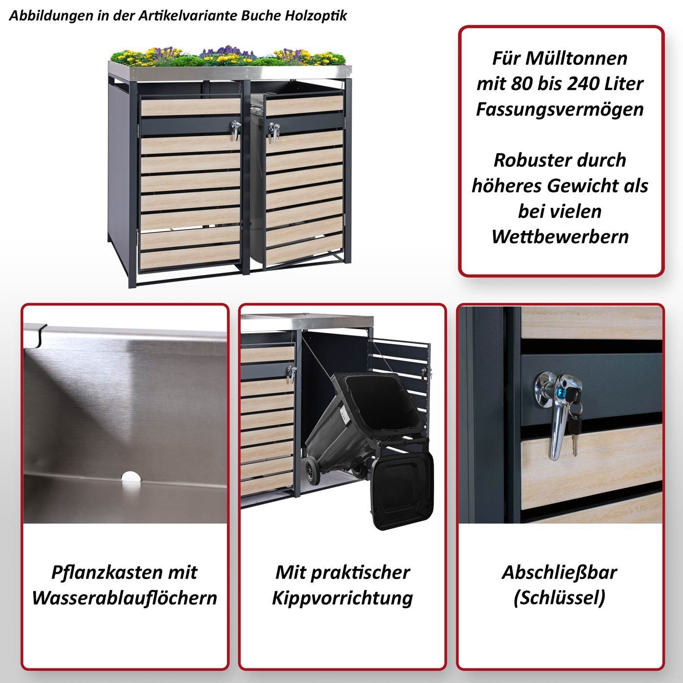 Mendler 2er Mülltonnenverkleidung mit Pflanzkasten HWC-J81, Metall 47kg, anthrazit