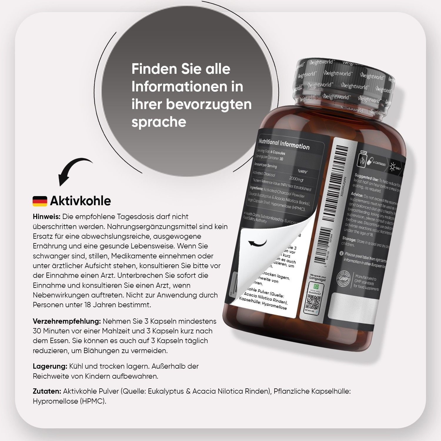 2er Pack Aktivkohle Kapseln - 360 Stk. - Hohe Dosierung - WeightWorld