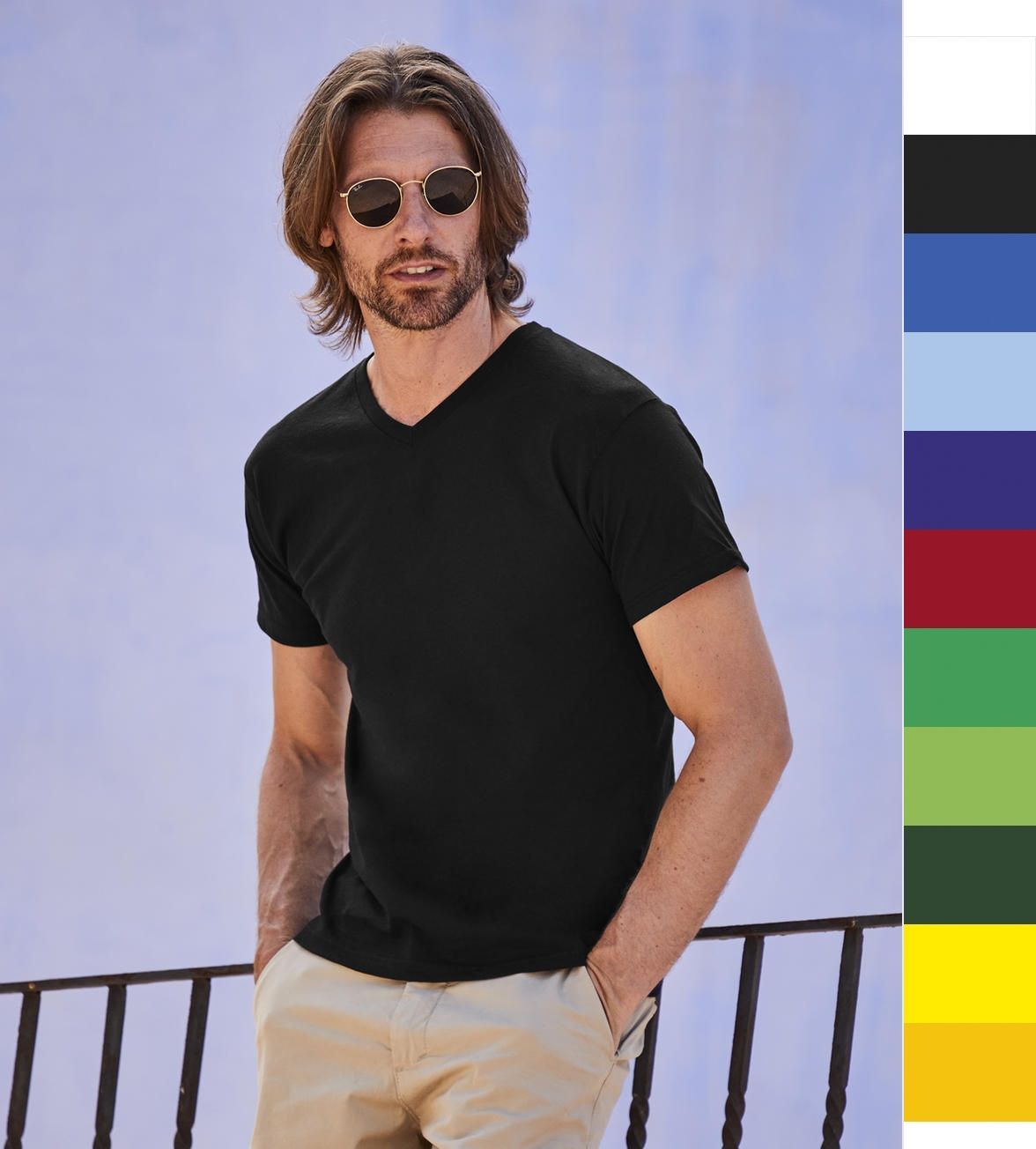 Fruit of the Loom 2er Pack Fruit of the Loom dünnes Herren Original V-Neck T-Shirt bedruckbar