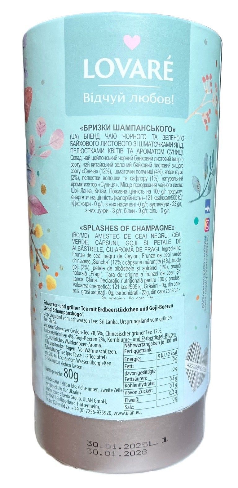 2er Pack. Lovare Schwarzer Grüner Tee "Spritzer Champagner" 2x80g