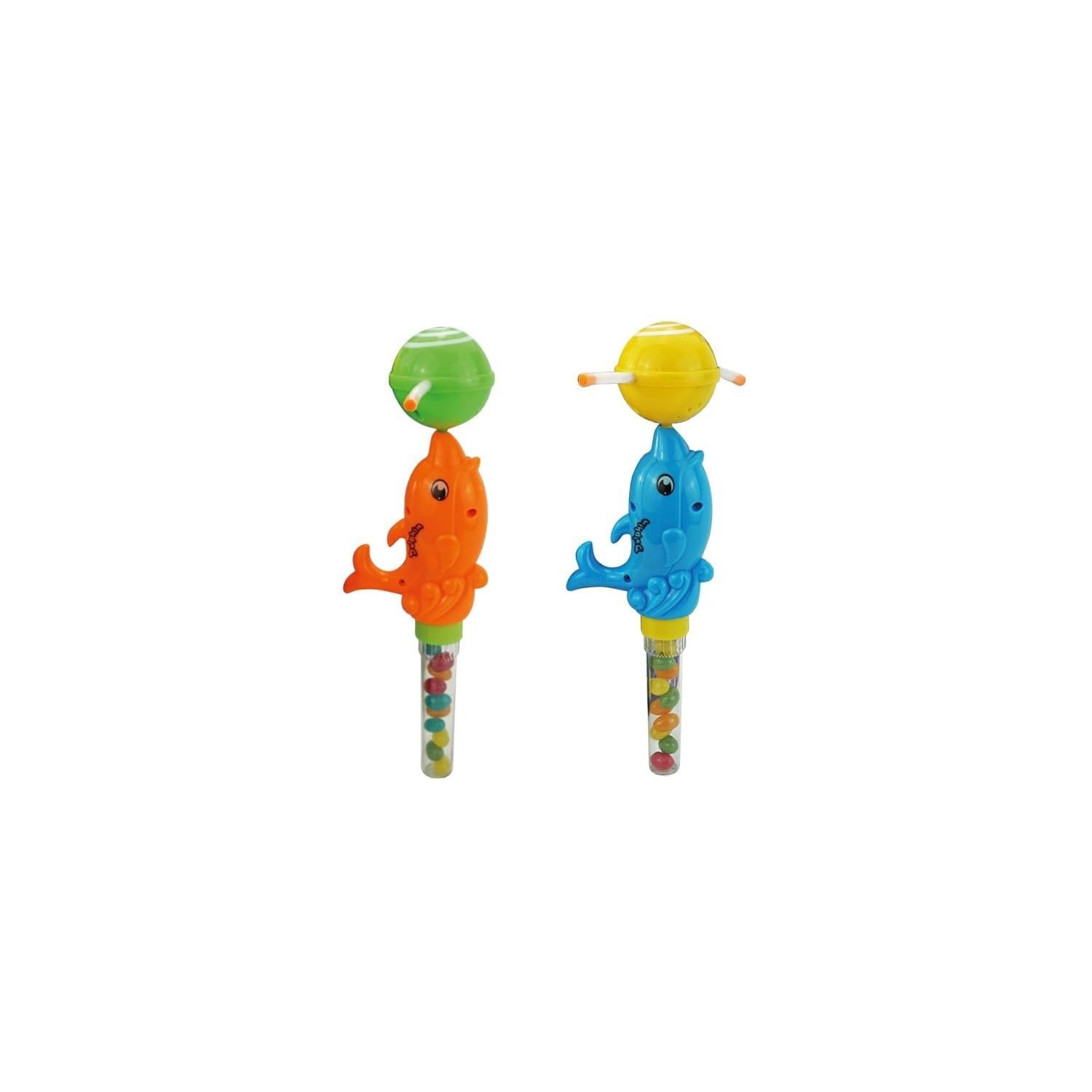Sea World Dolphin- 2er Pack ? 2er Pack leuchtende Delfine mit Jelly Beans ? Mit Musik- und Lichteffekten für extra Spaß ? Praktische Handkurbel zur Aktivierung von Licht und Musik ? Ideal als Geschenk oder Mitgebsel auf Kinderpartys ? Farbenfrohe Delfin-Designs in Blau und Orange