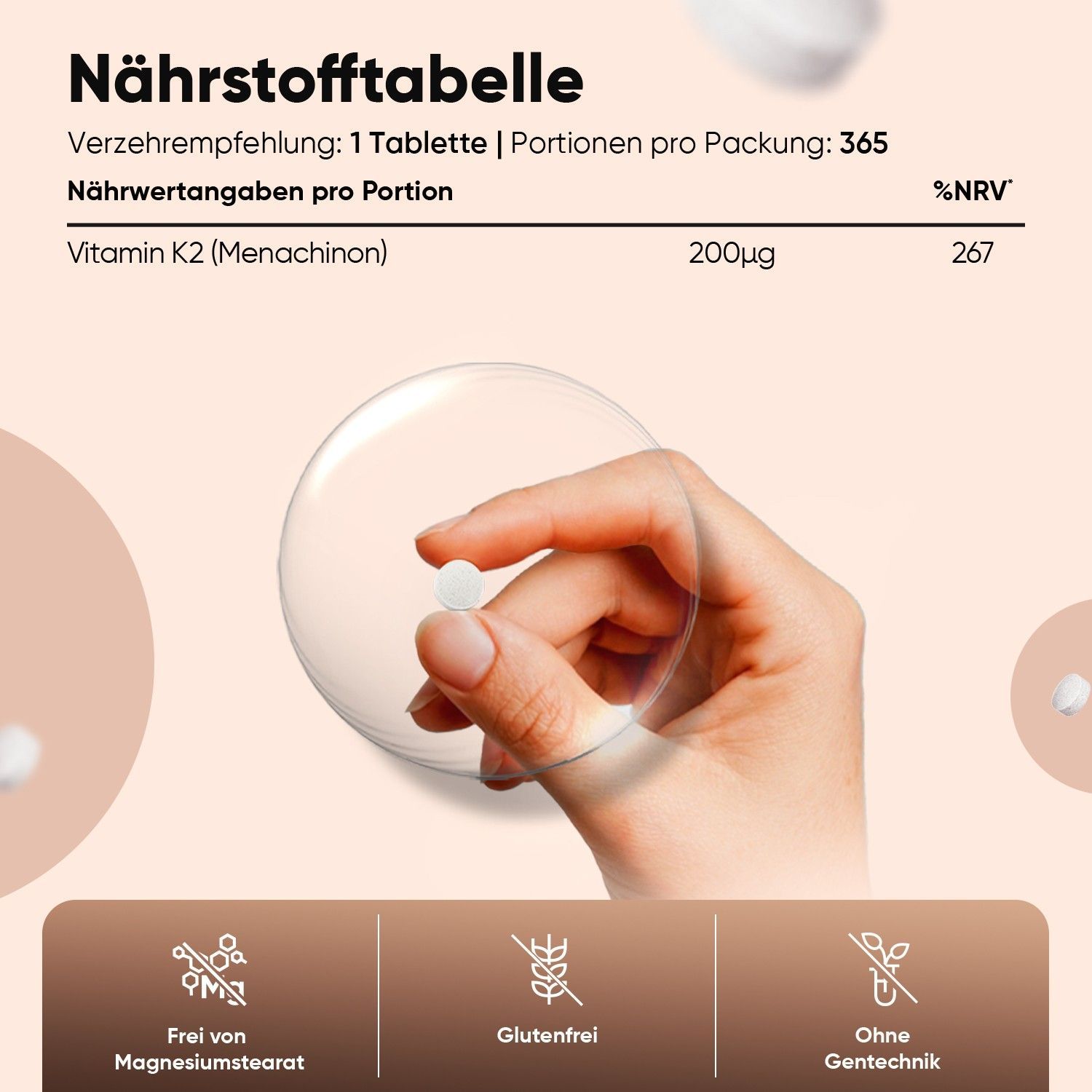 2er Pack: Vitamin K2 MK7-365 vegane Tabletten - 200µg je Dosis