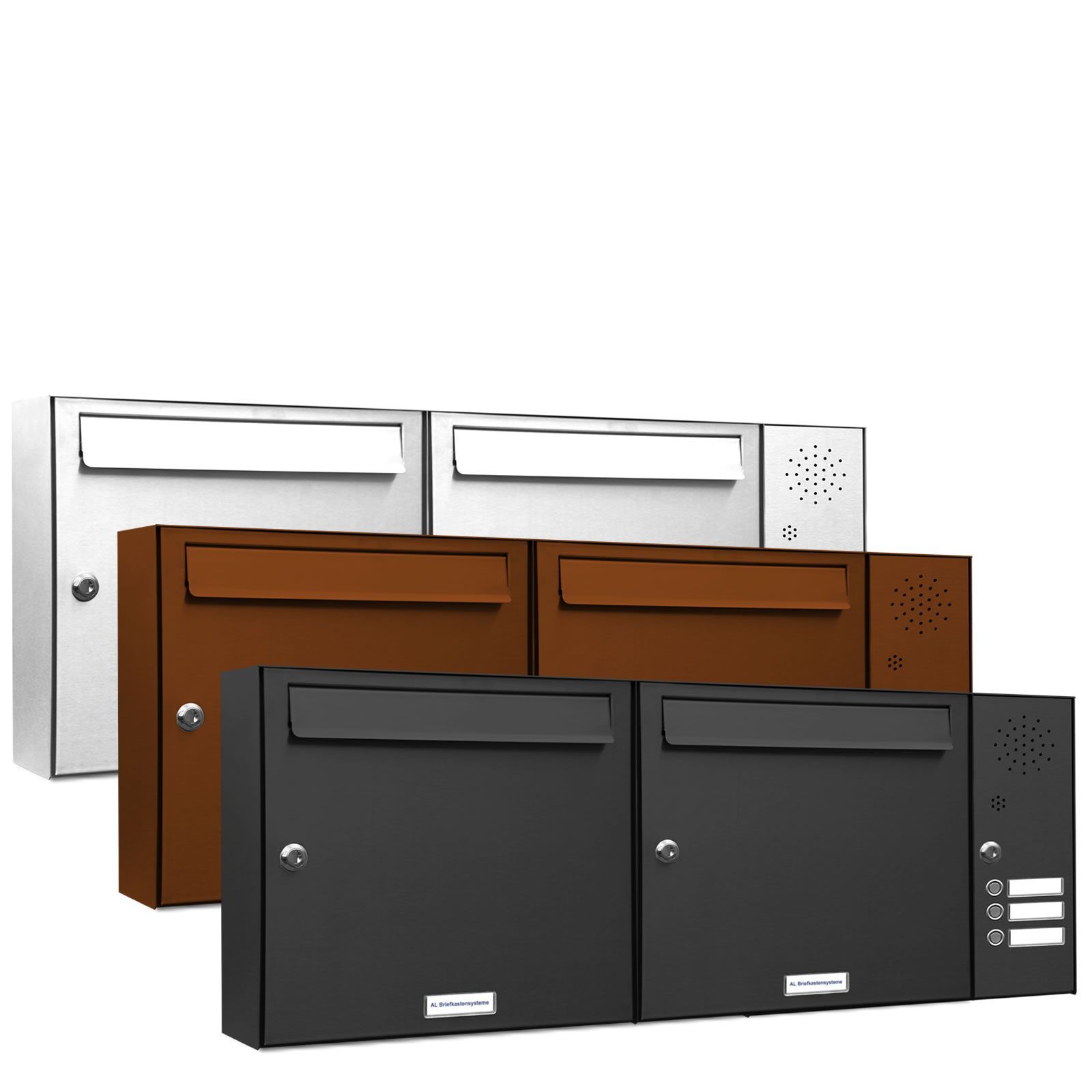 2er Premium Briefkasten Außen RAL Farbe 3 Klingel Rechts Postkasten 2x2