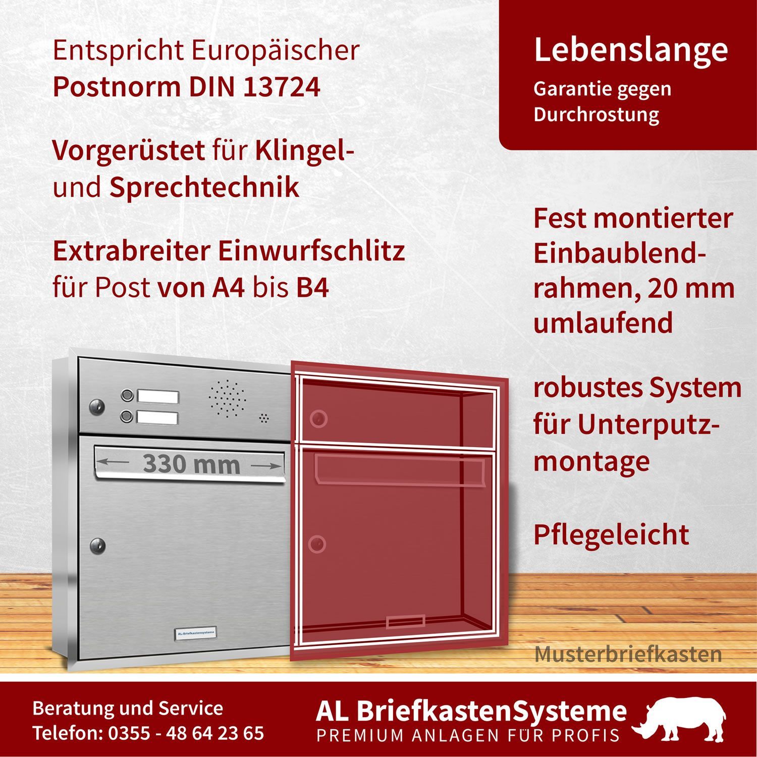 2er Premium Edelstahl Unterputz Briefkasten Anlage 3 Klingeln 2x1 Postkasten