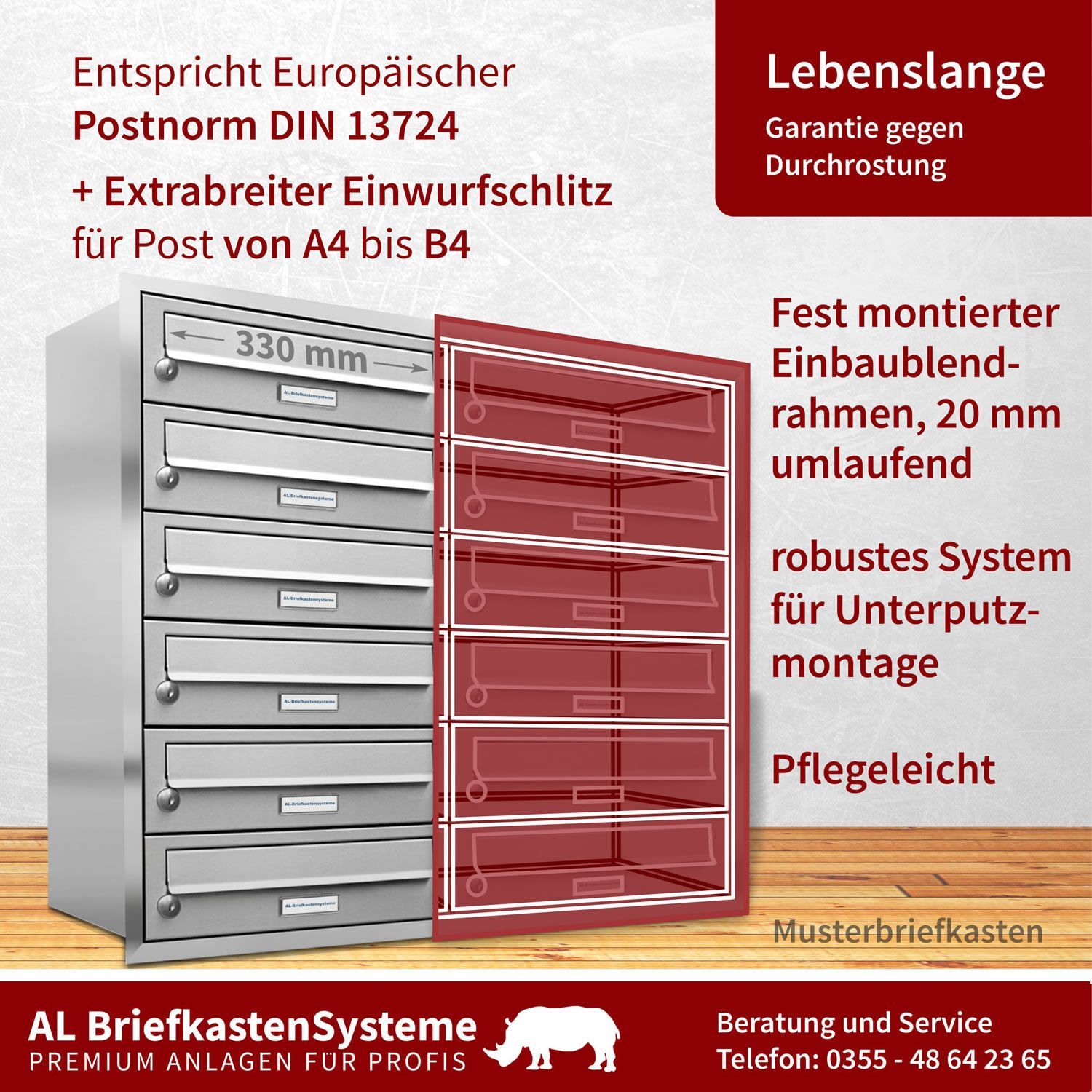 2er Premium Unterputz Edelstahl Briefkasten Anlage 2 Fach V2A Postkasten A4