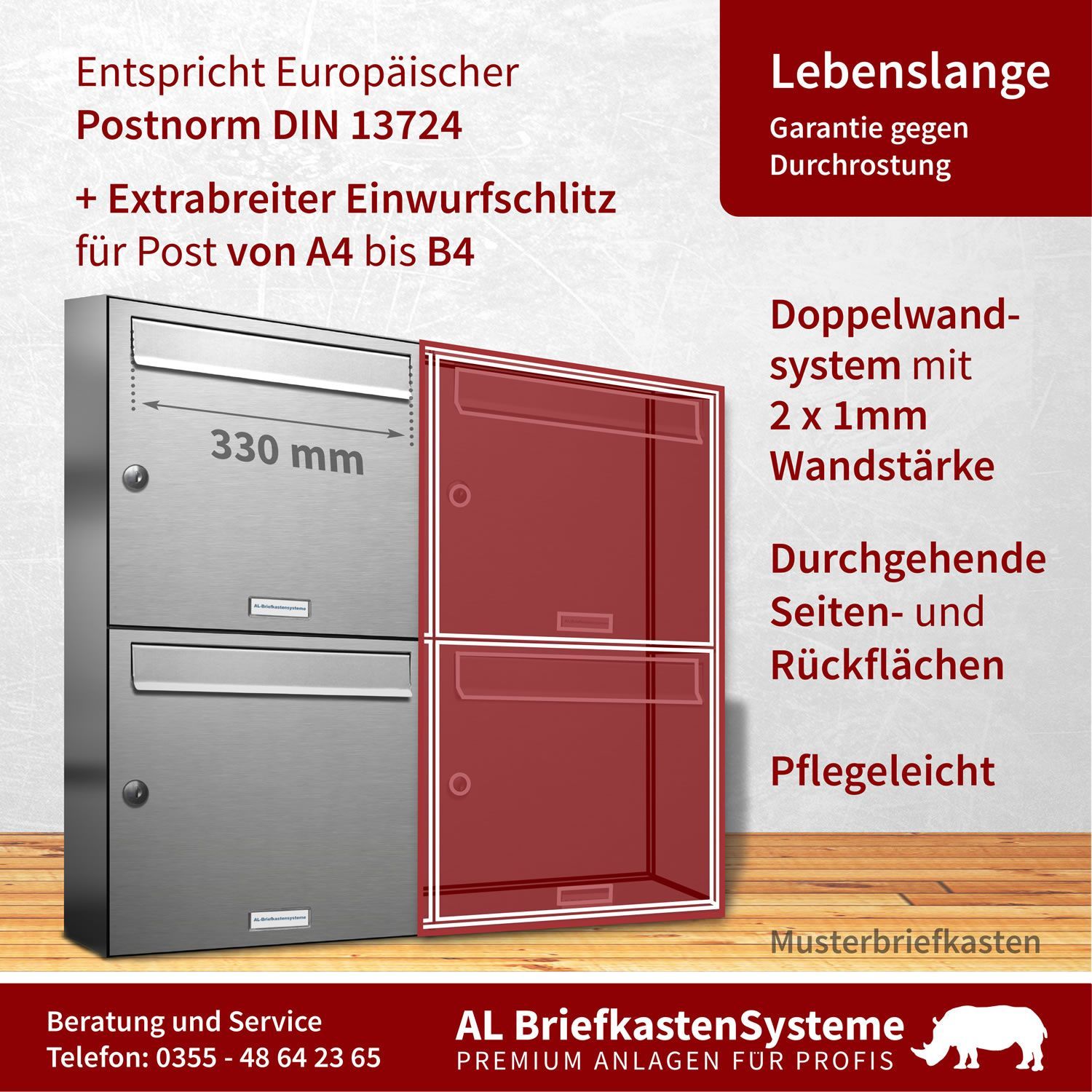 2er Premium V2A Edelstahl Briefkasten Anlage Außen Wand Design Postkasten 1x2 S