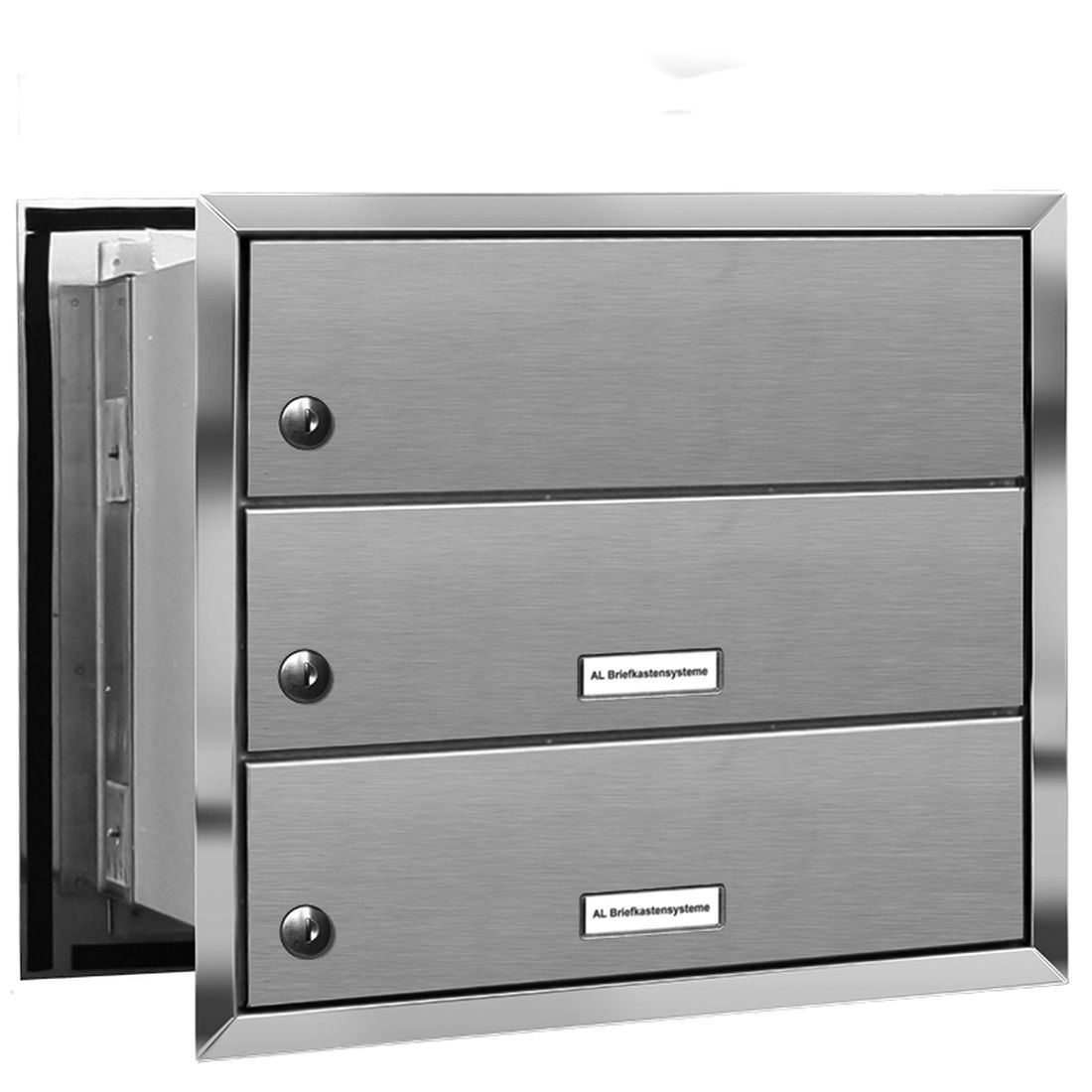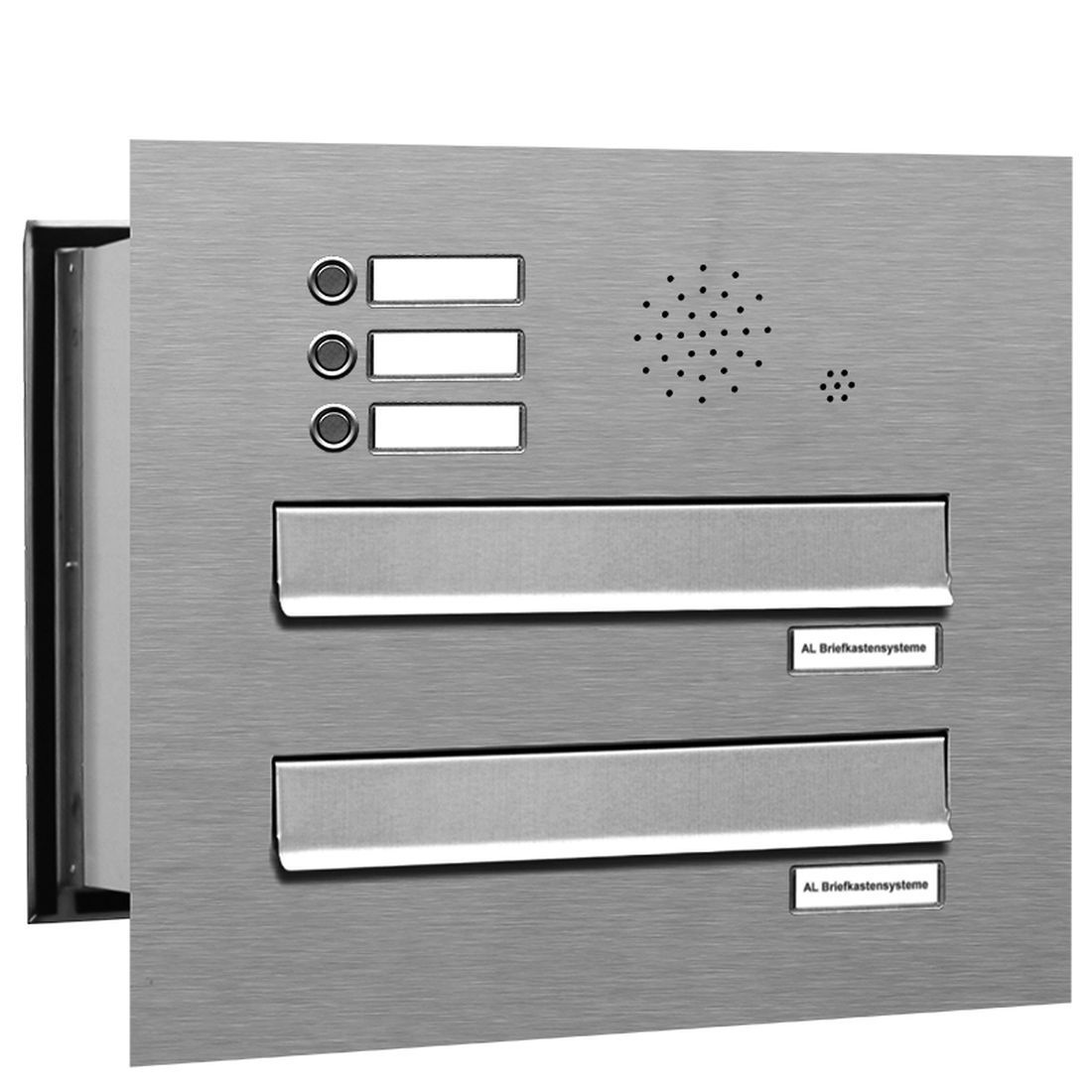 2er Premium V2A Mauer Durchwurf Briefkasten mit 3 Klingel 2Fach Postkasten A4