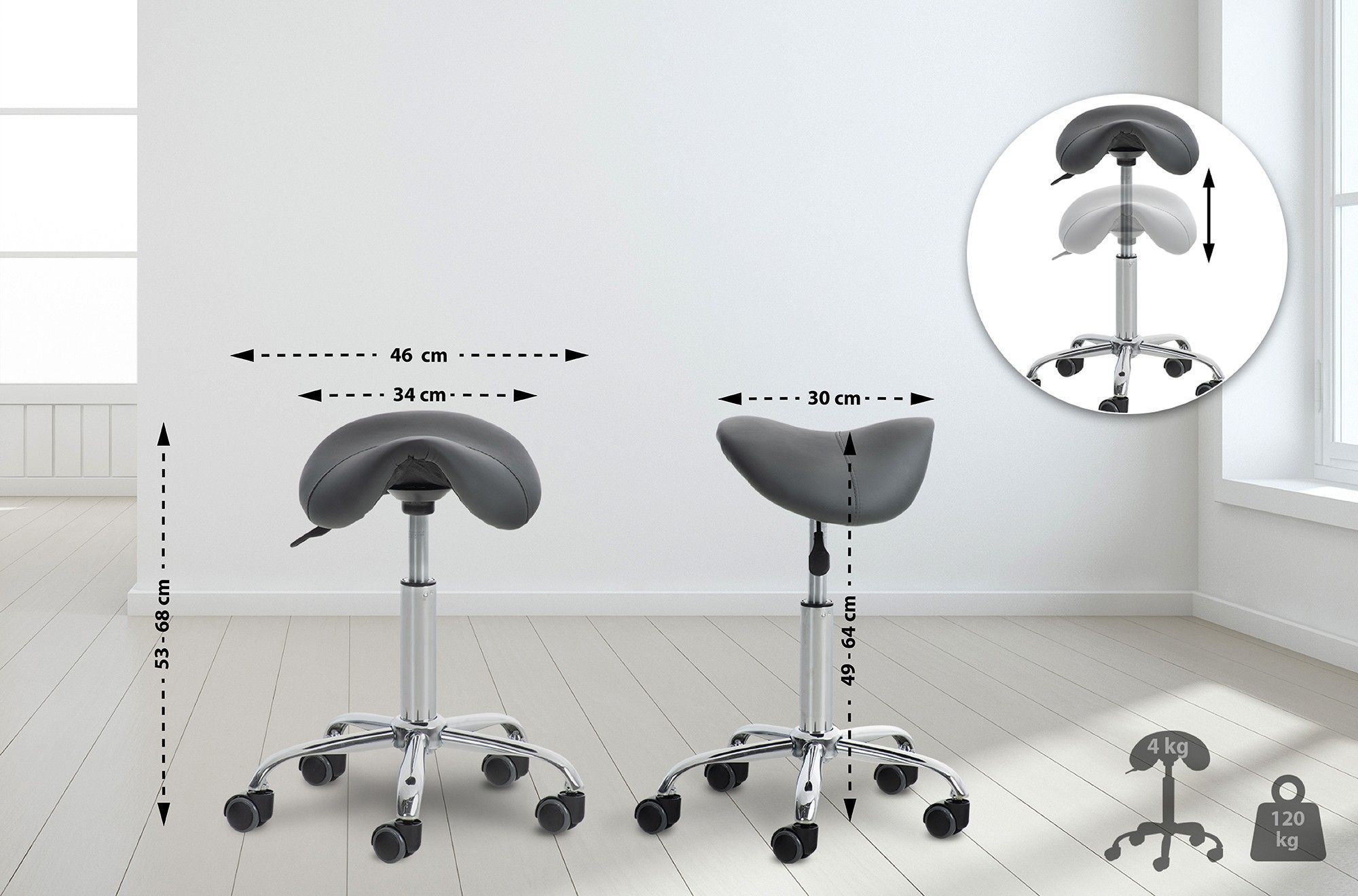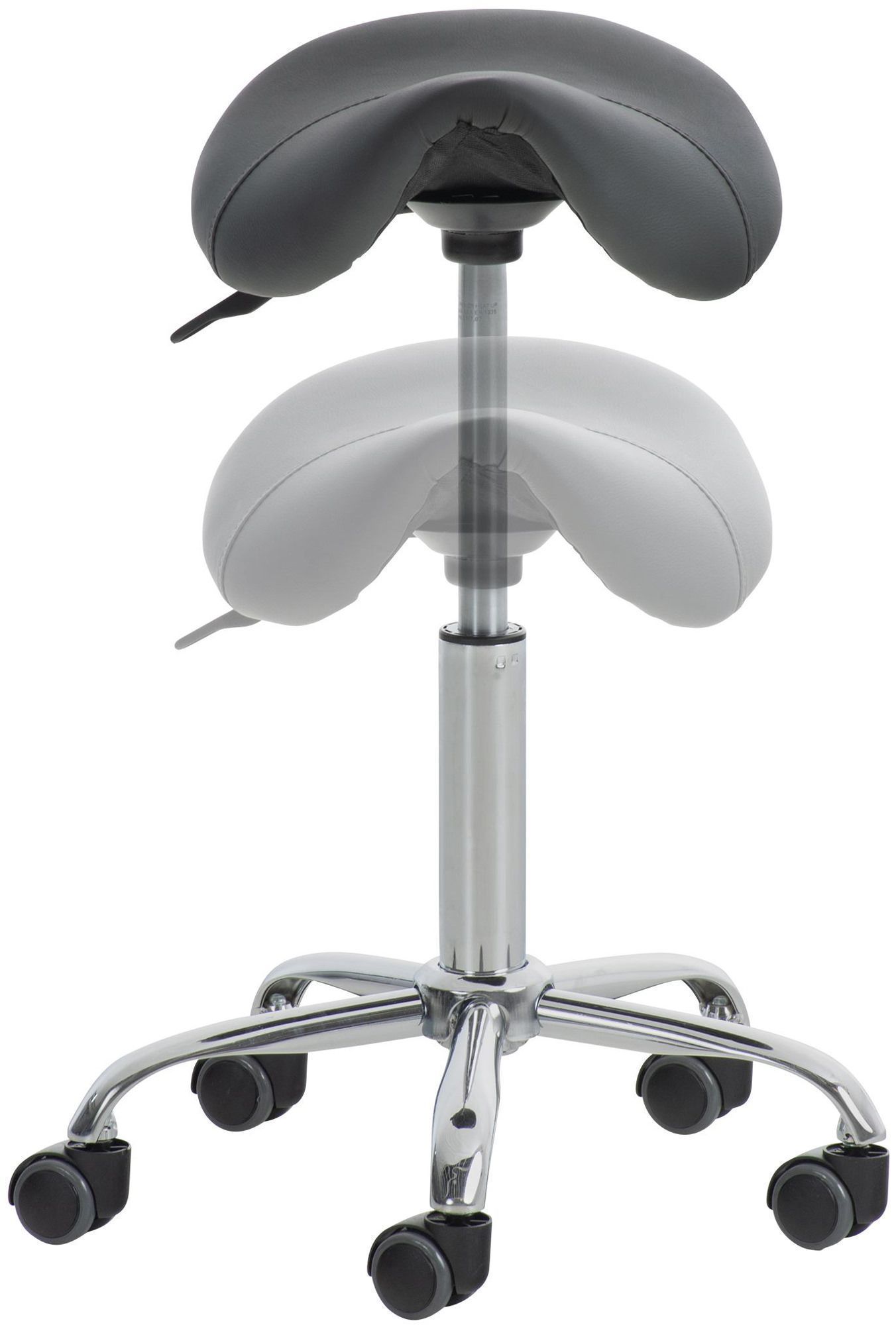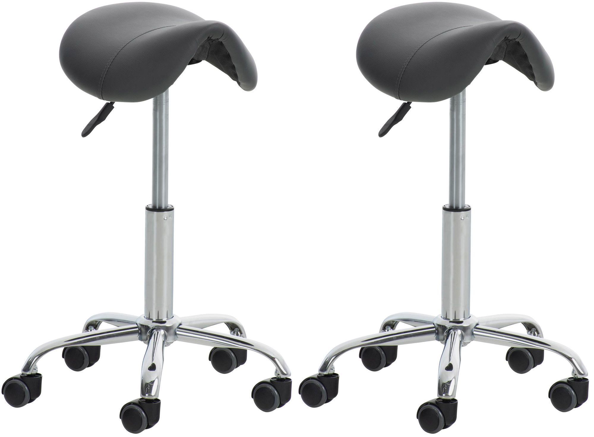 2er Sattelhocker mit Rollen VOULI Grau Höhenverstellbar Drehbar Kunstleder