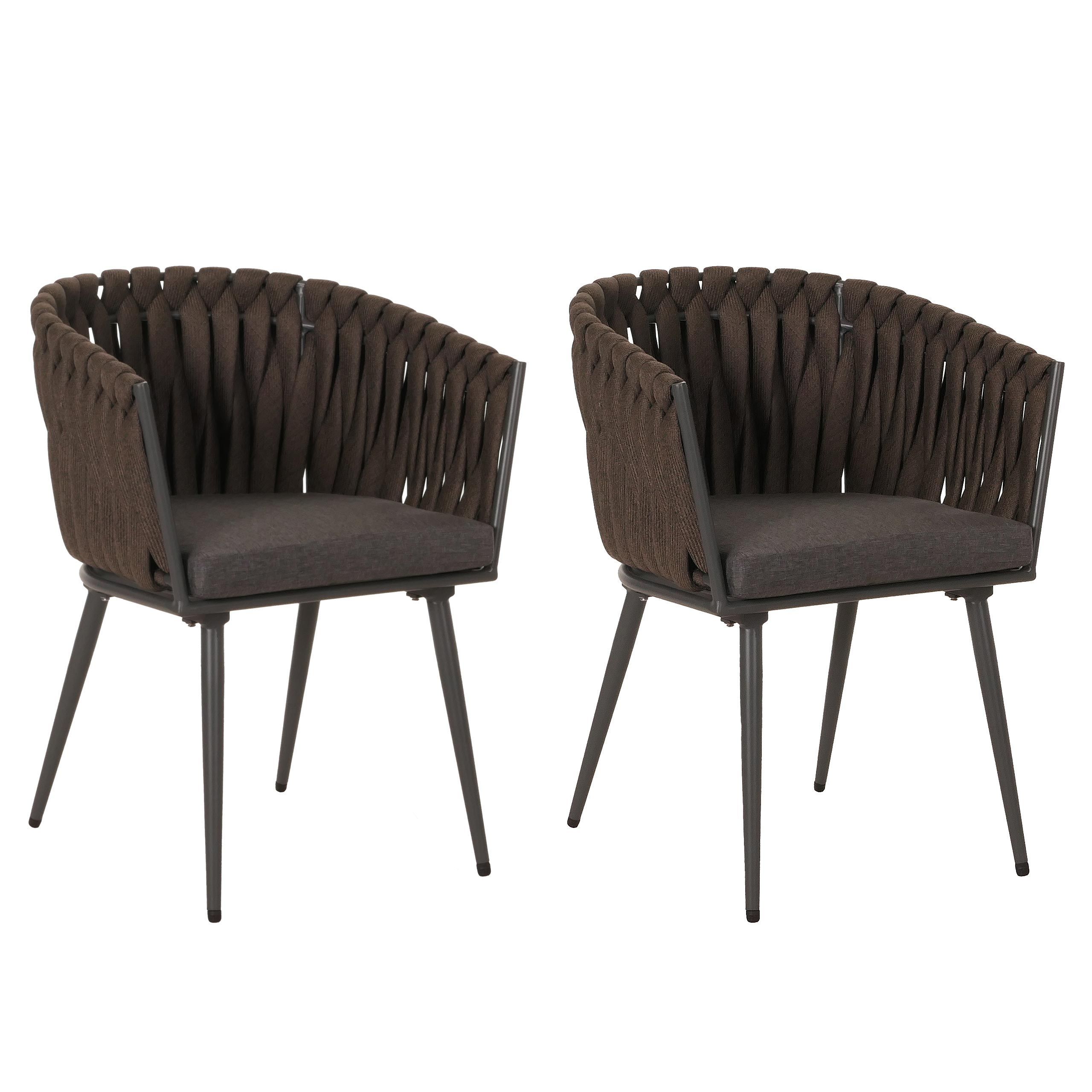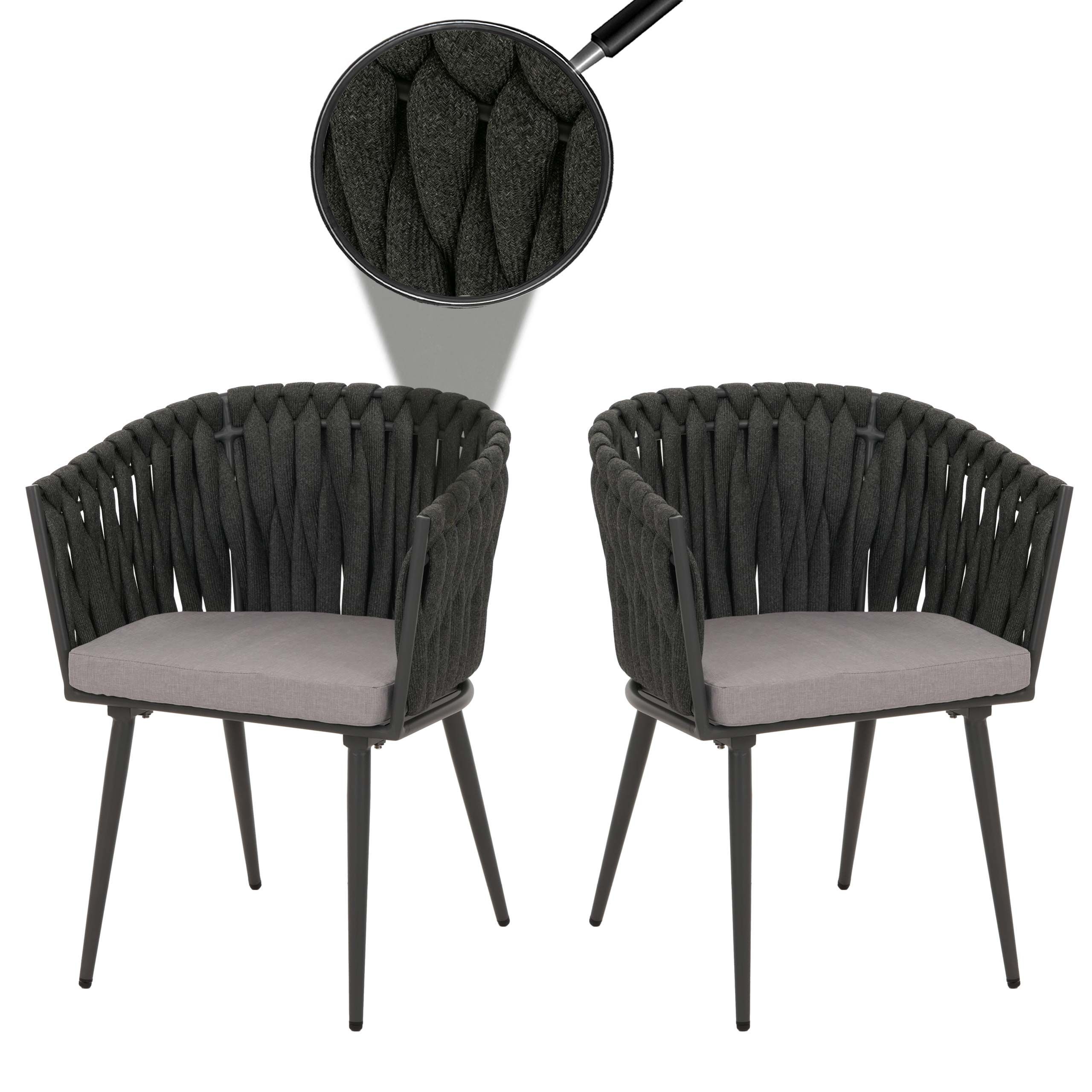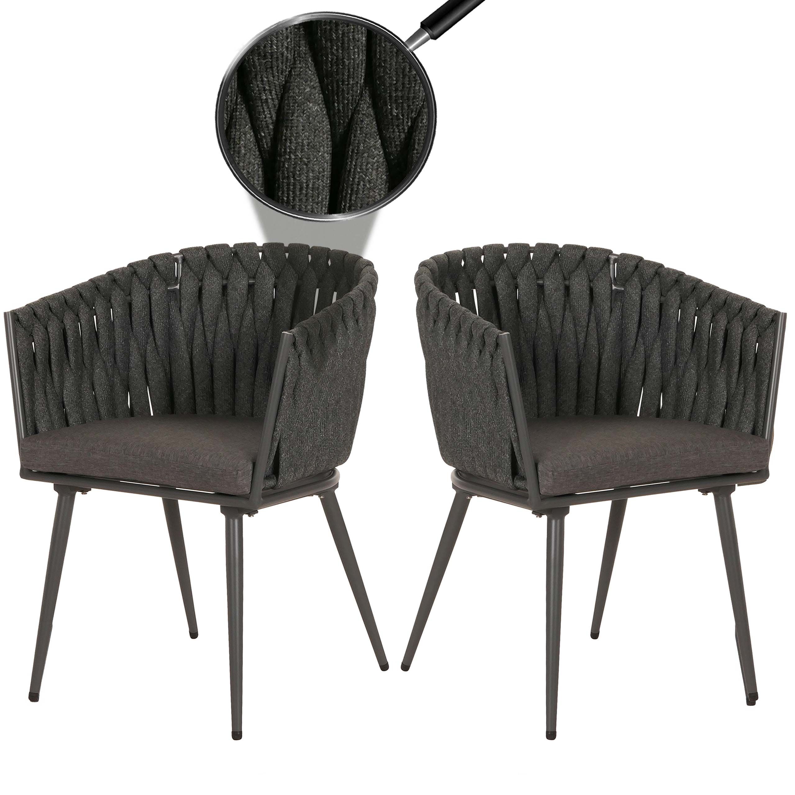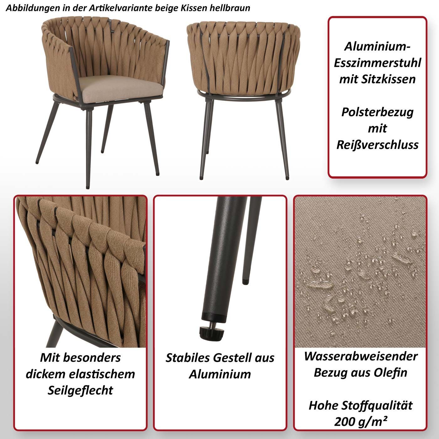 Mendler 2er-Set Aluminium-Esszimmerstuhl HWC-N38, Indoor Stuhl, Olefin Seilgeflecht Rope