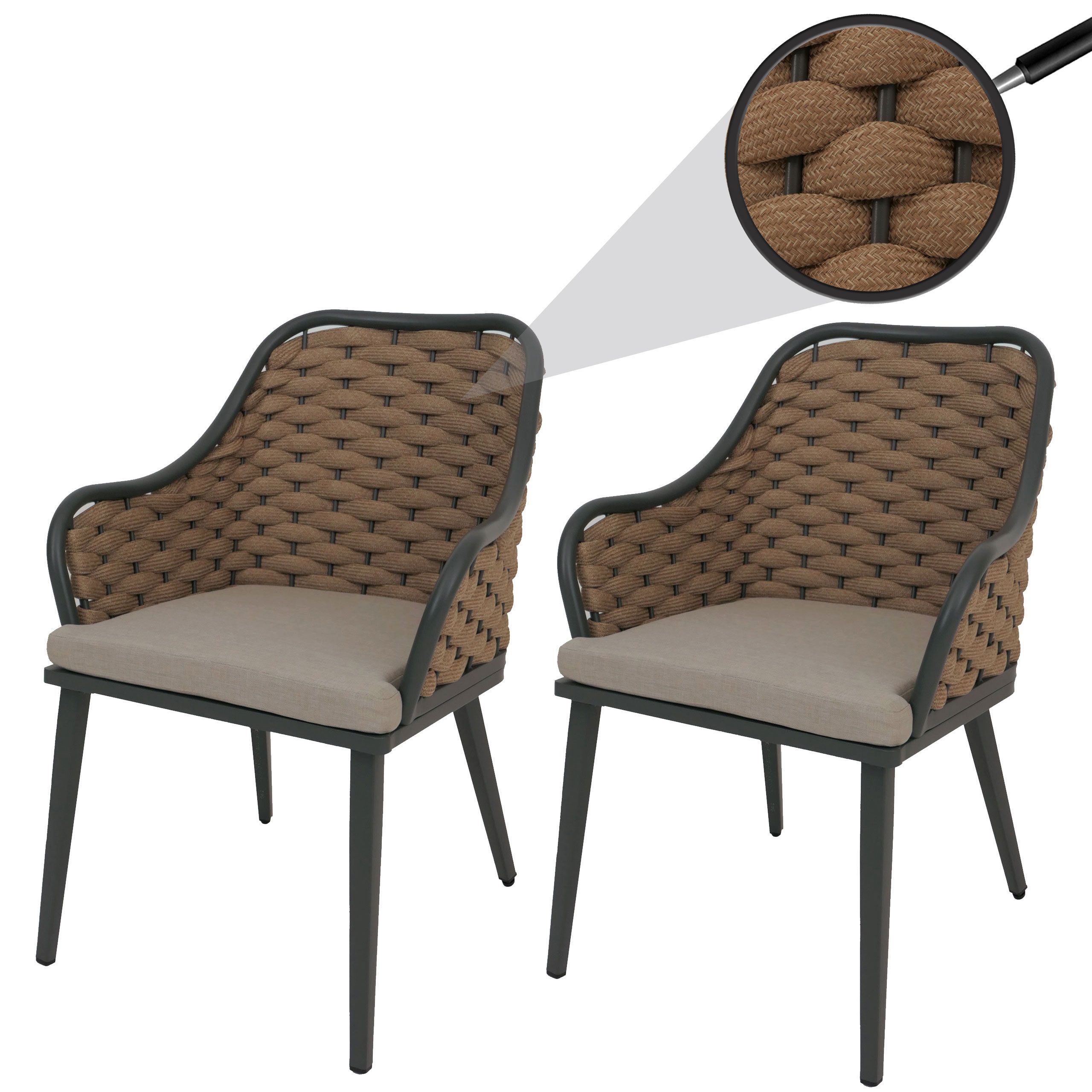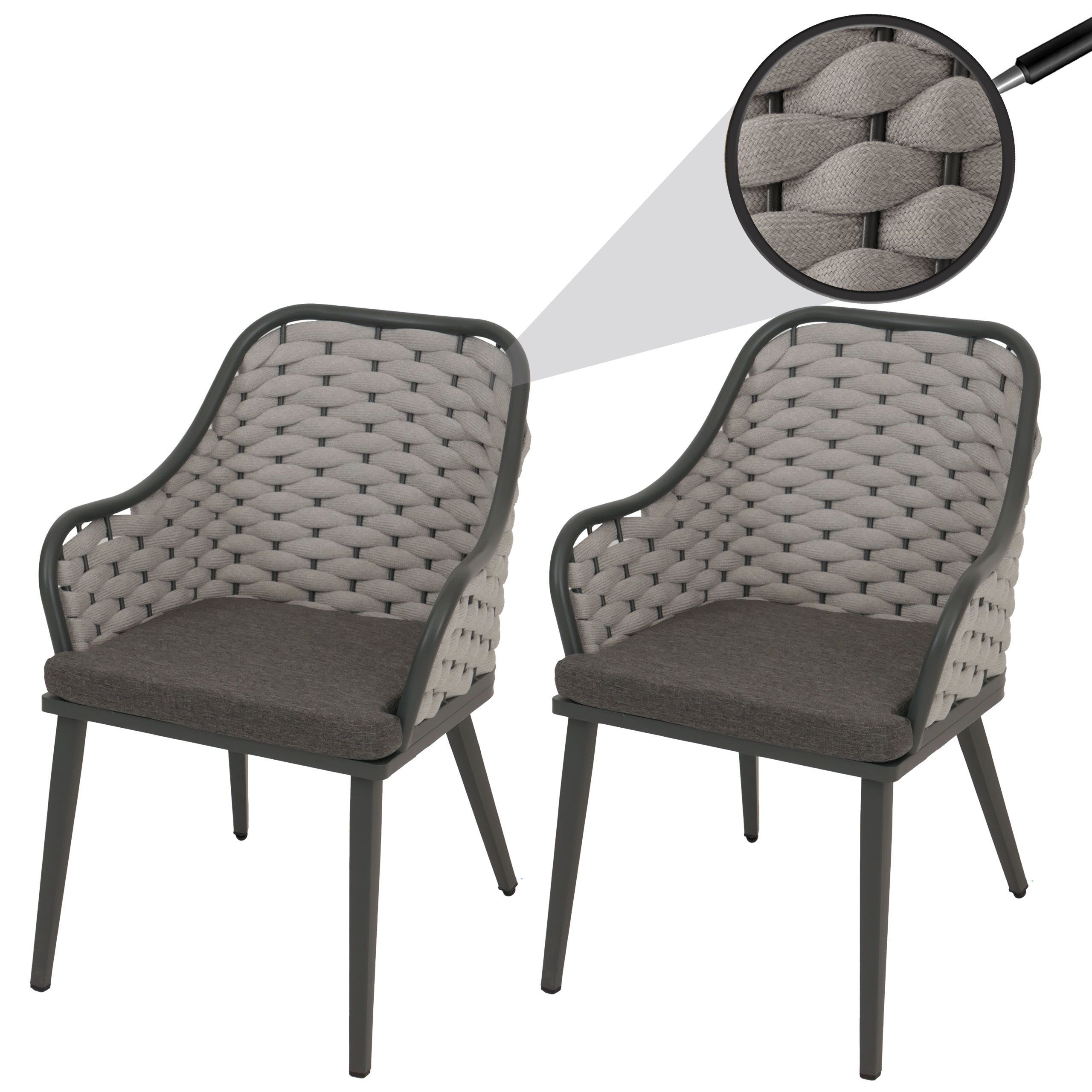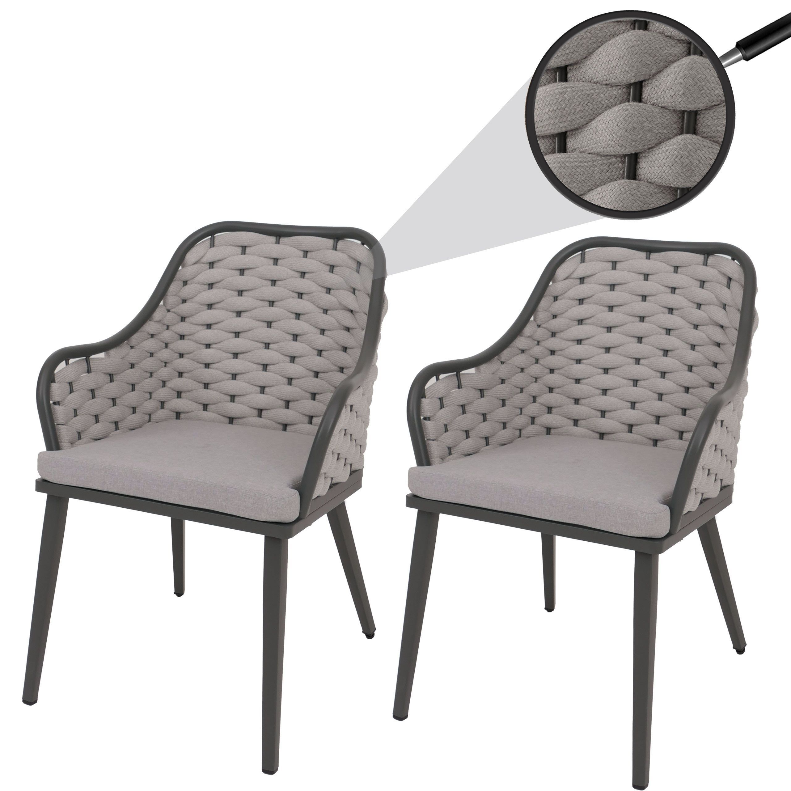 Mendler 2er-Set Aluminium-Gartenstuhl HWC-O16, Outdoor Stuhl, Olefin Seilgeflecht Rope