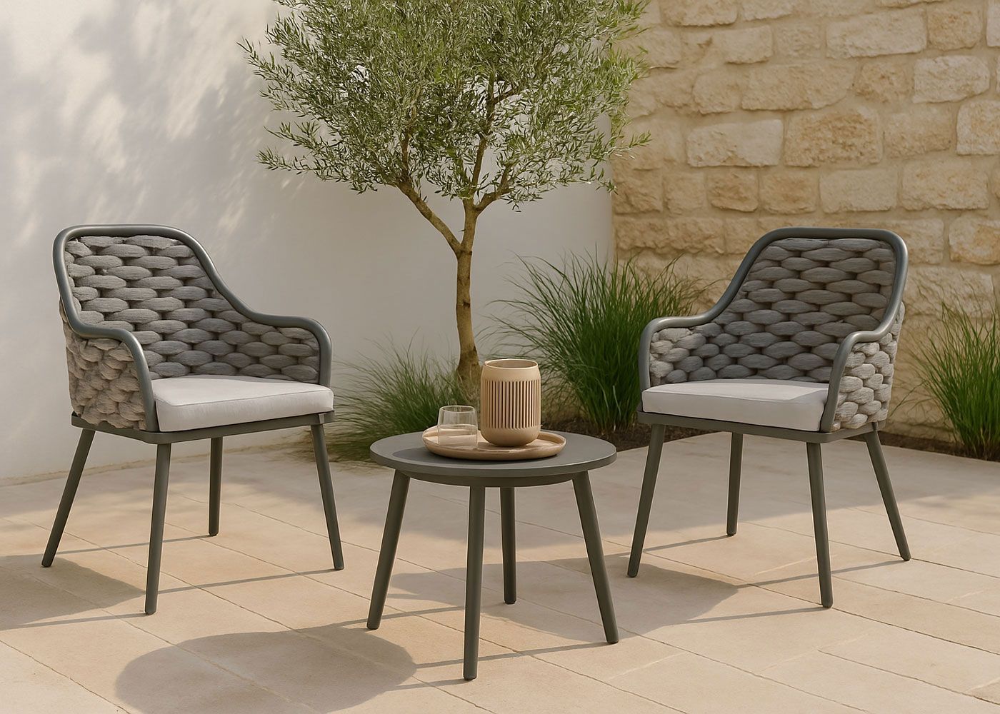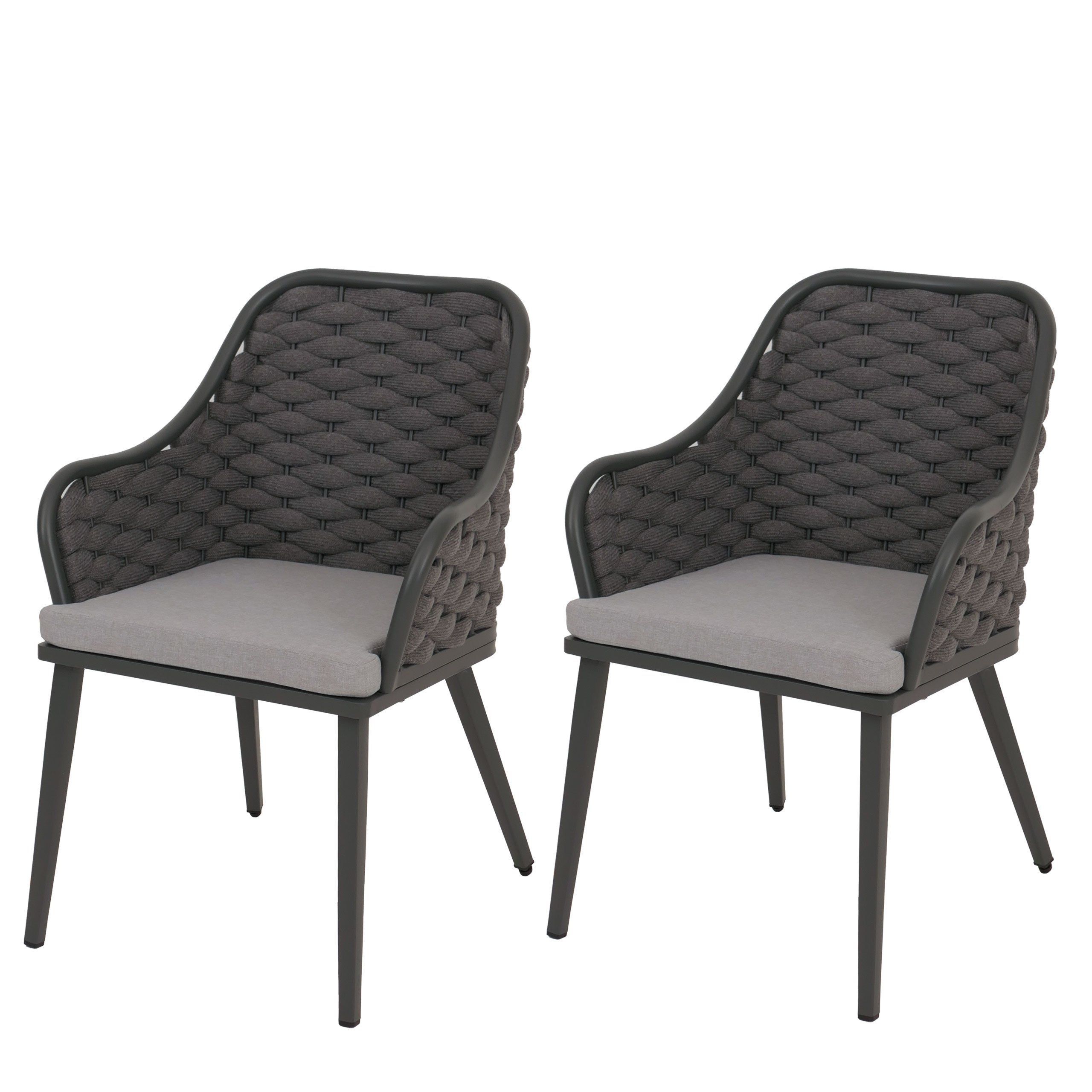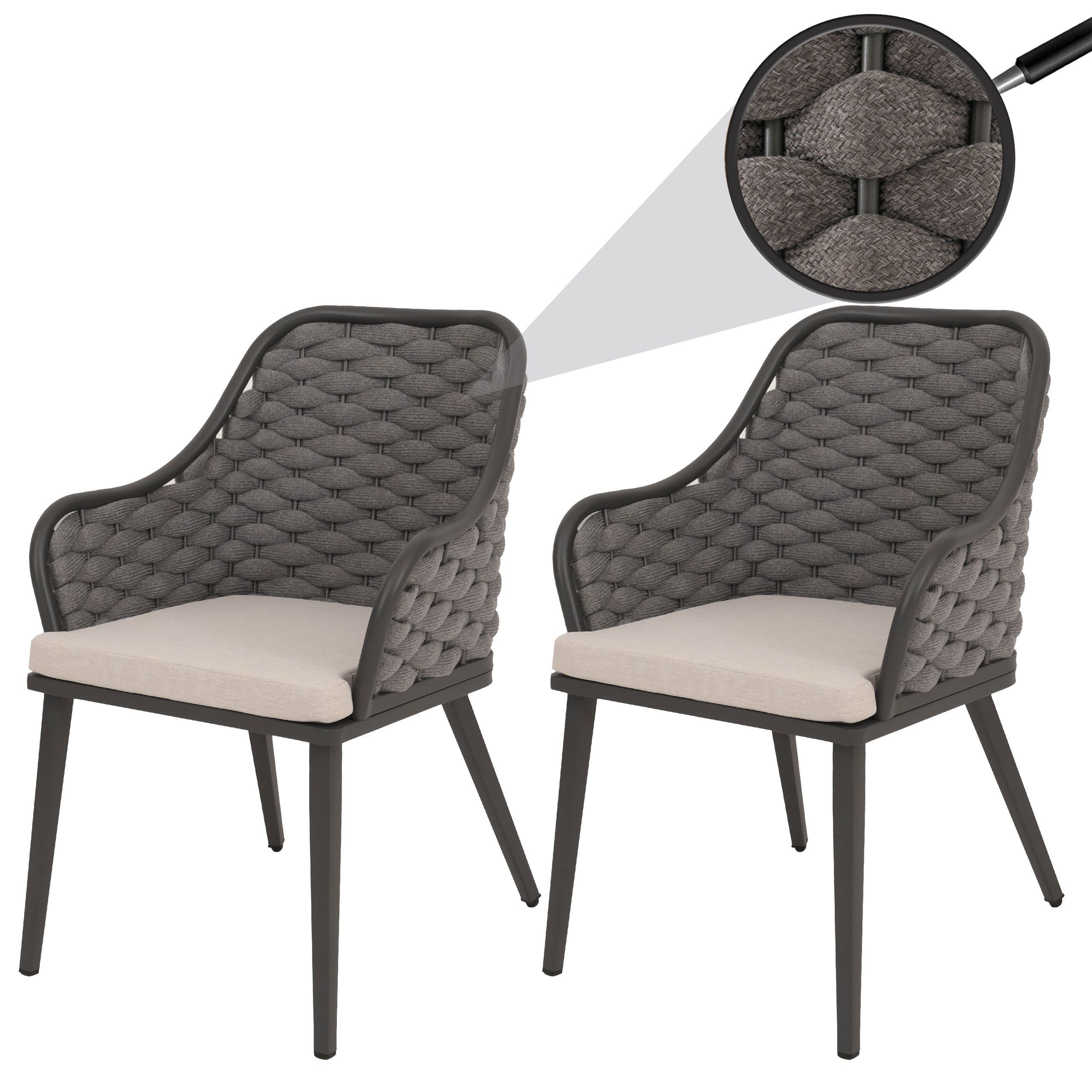 Mendler 2er-Set Aluminium-Gartenstuhl HWC-O16, Outdoor Stuhl, Olefin Seilgeflecht Rope