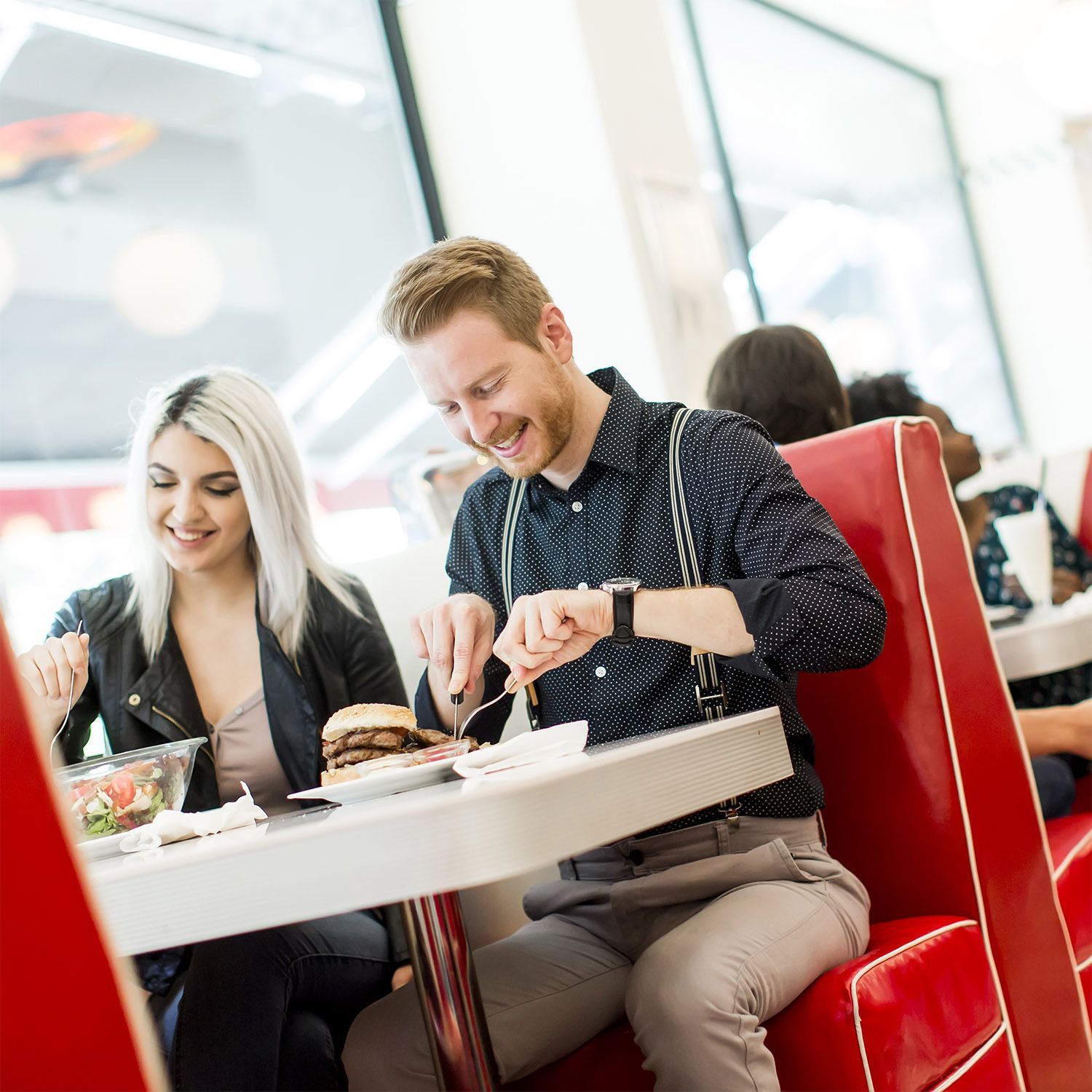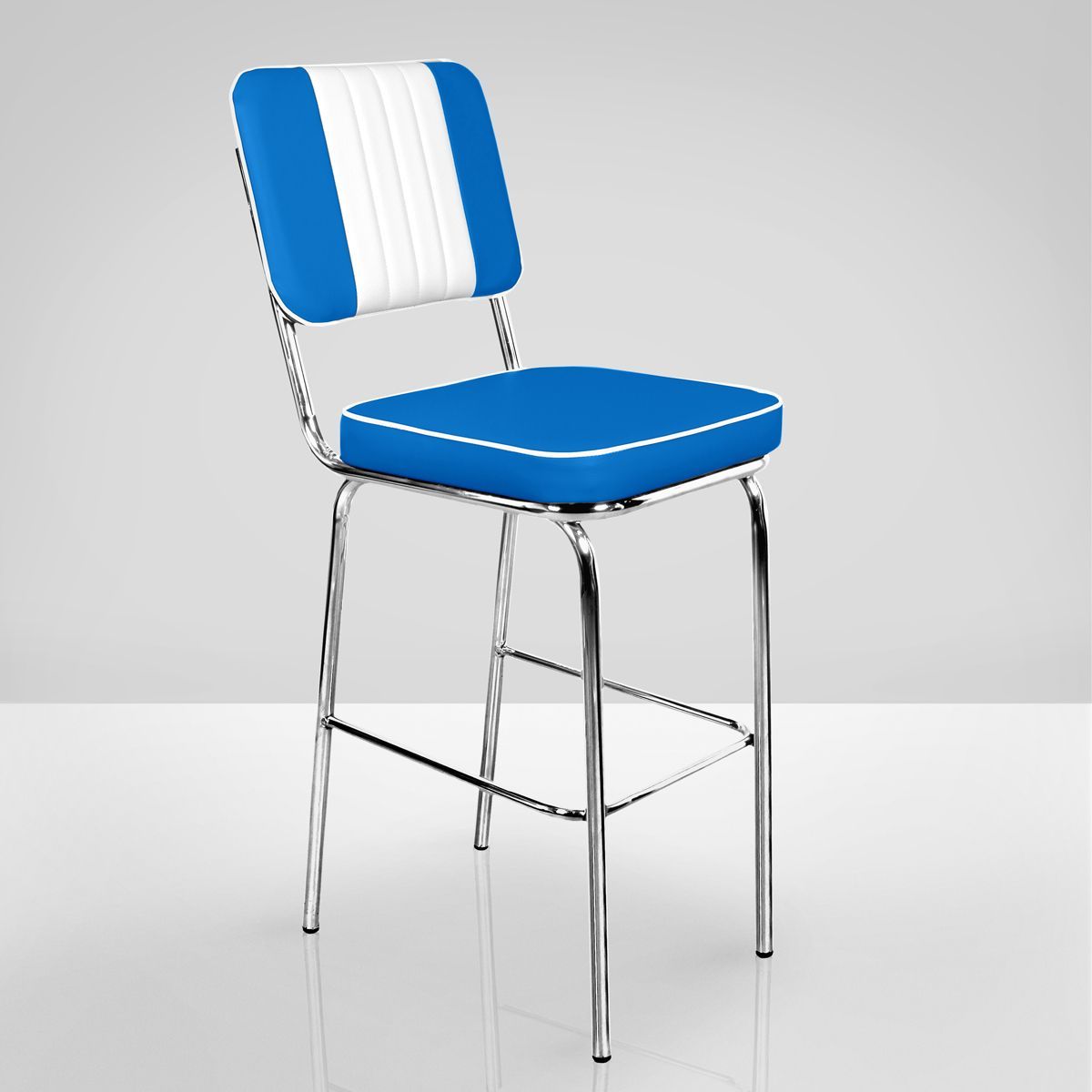 2er-Set American Bistro Diner Barhocker | Blau + Keder Weiß | Gestreift | Retro Bars