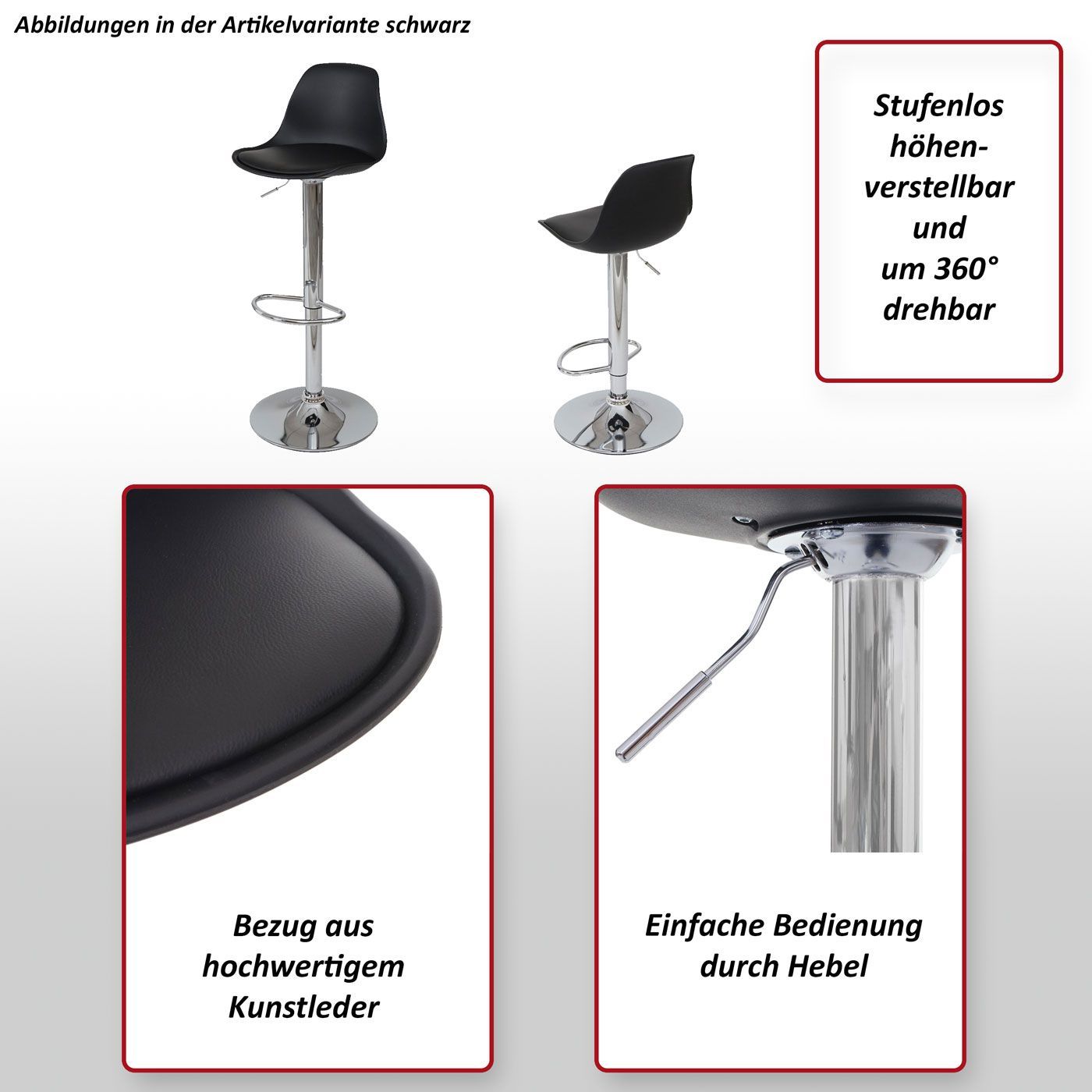 Mendler 2er-Set Barhocker HWC-B14, Tresenhocker Barstuhl Drehhocker, Kunstleder