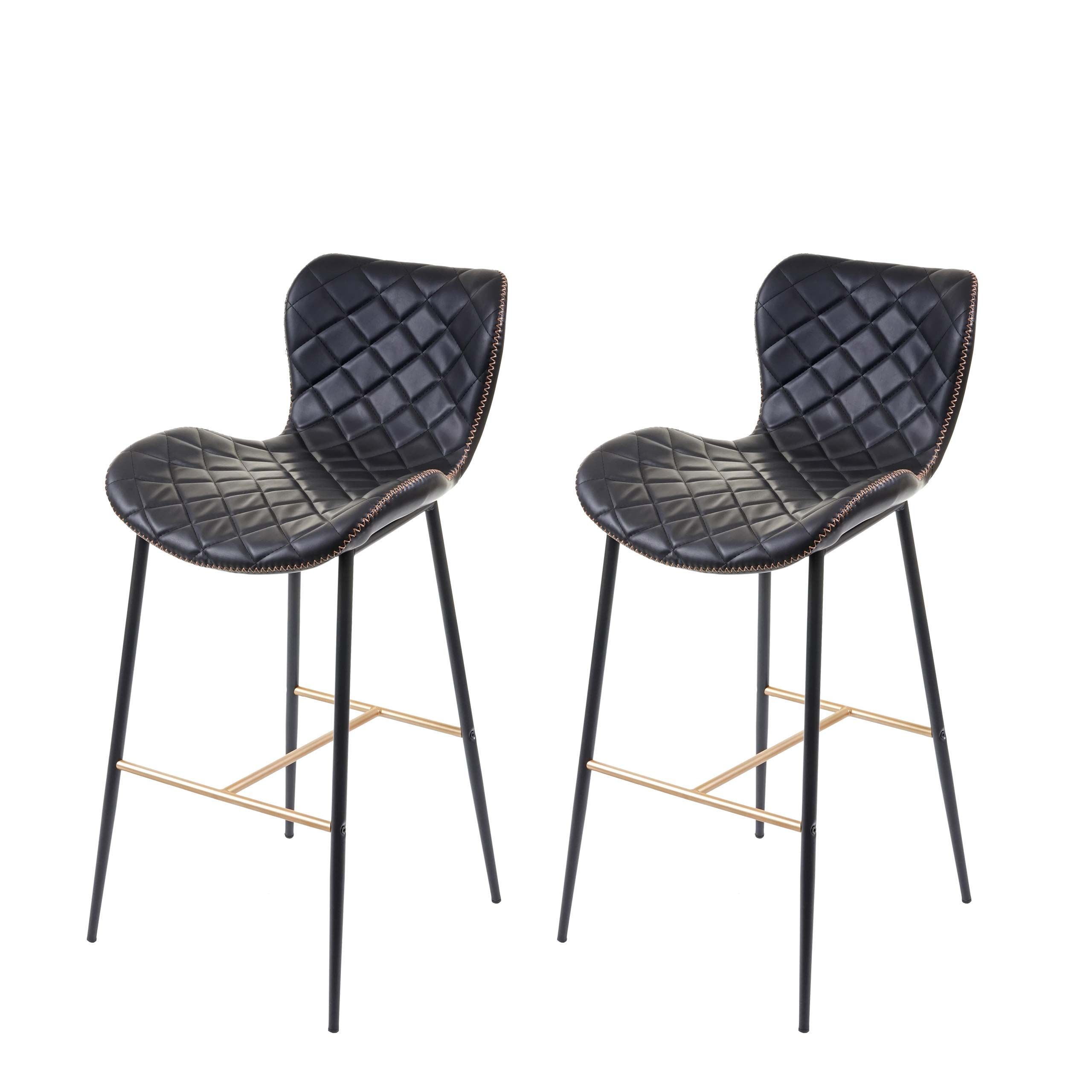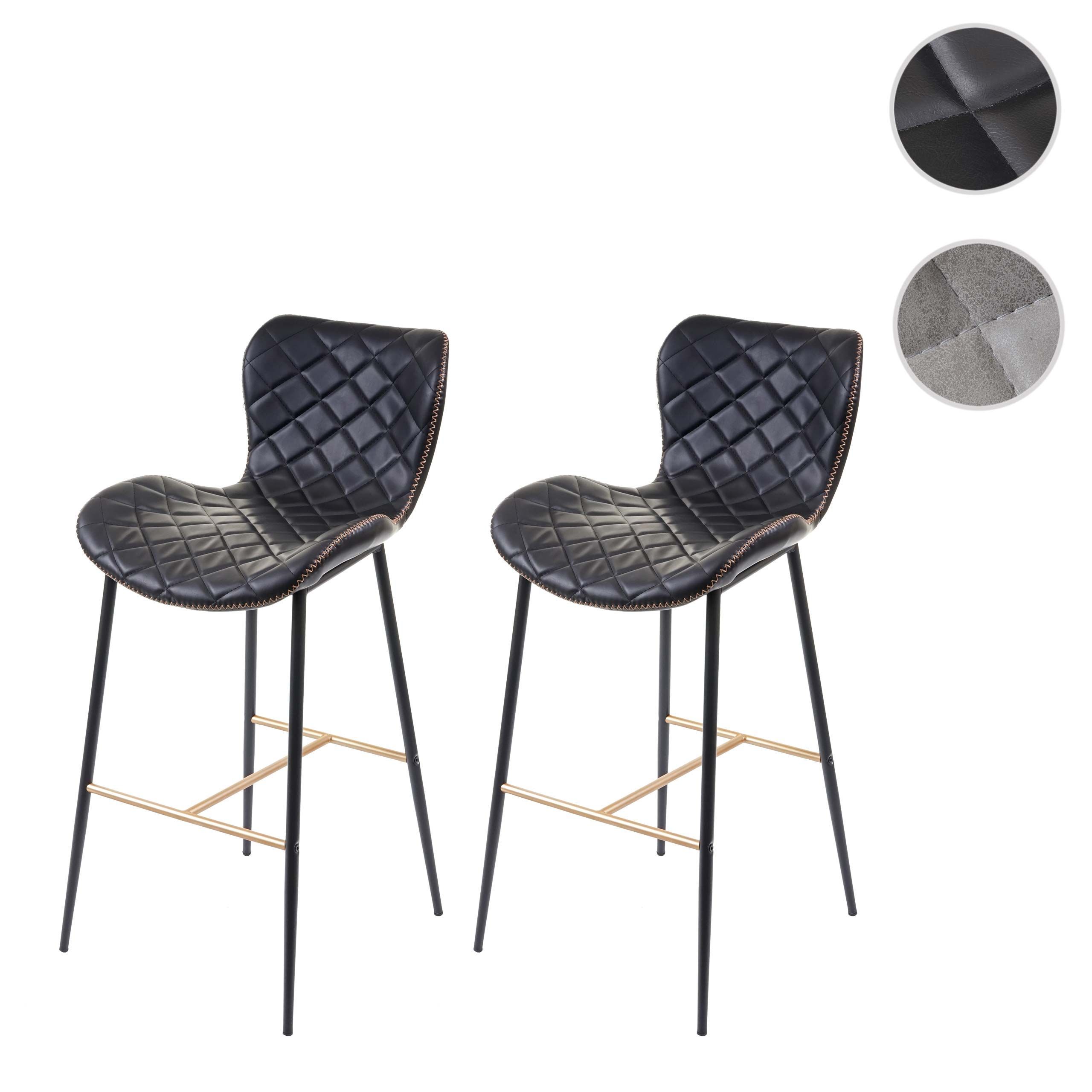 Mendler 2er-Set Barhocker HWC-E55, Barstuhl Tresenhocker, Vintage goldfarbene Streben