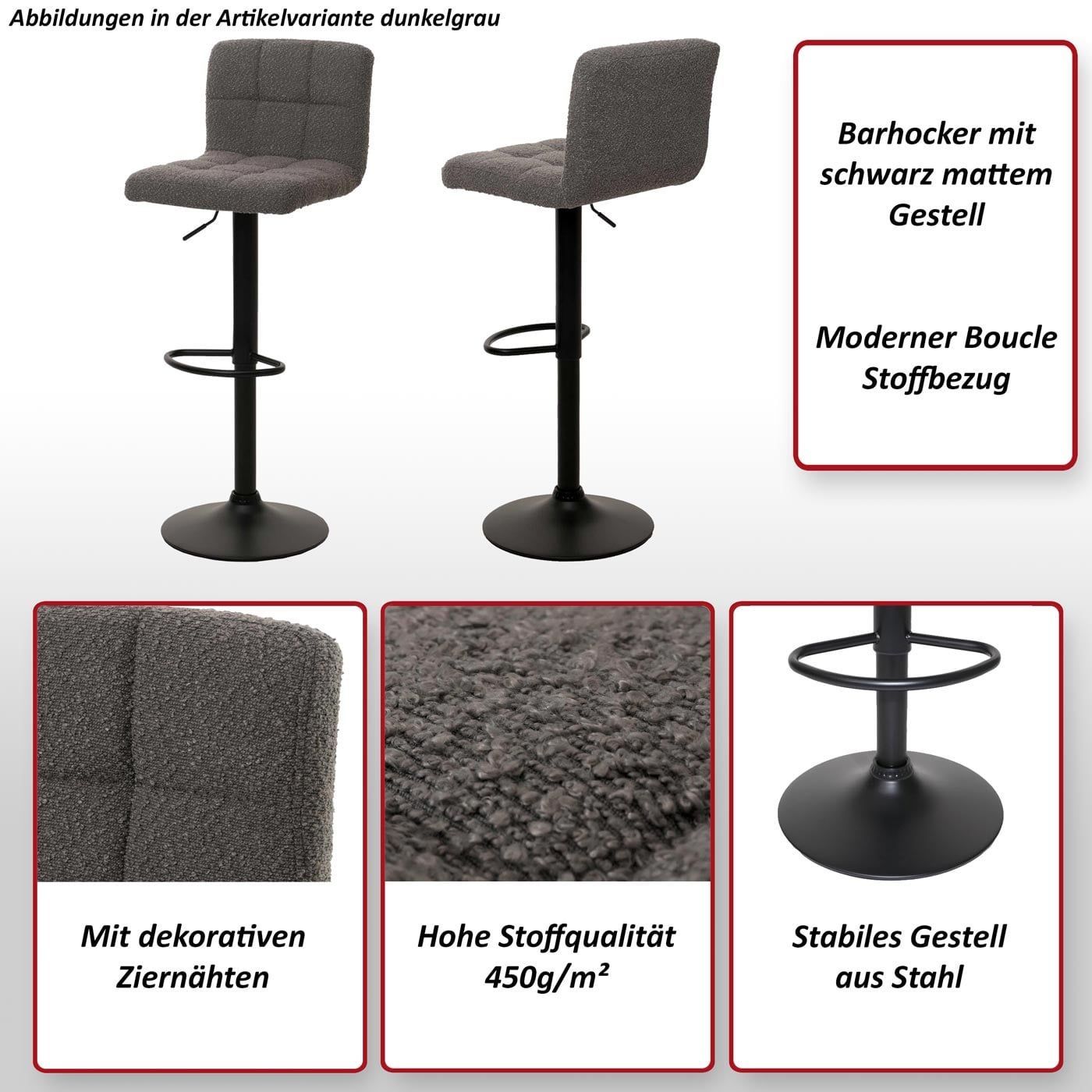 Mendler 2er-Set Barhocker HWC-G87, Tresenhocker Barstuhl, höhenverstellbar drehbar, Boucle