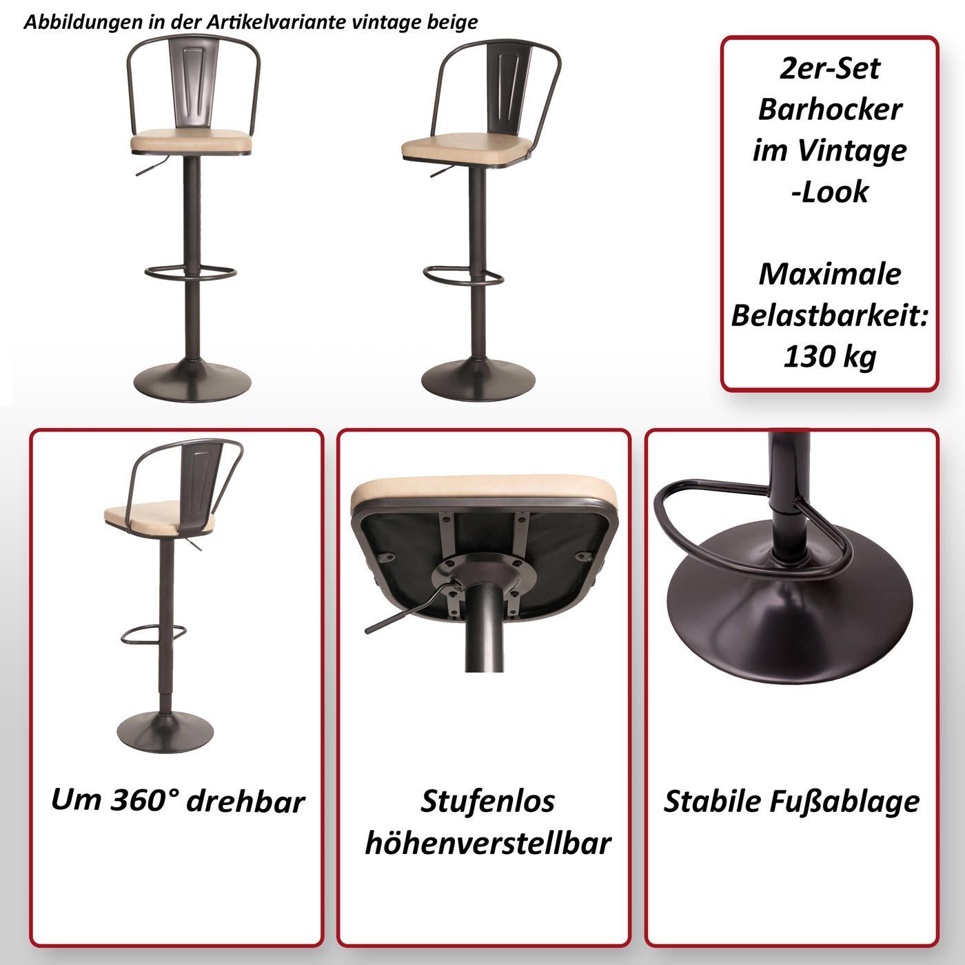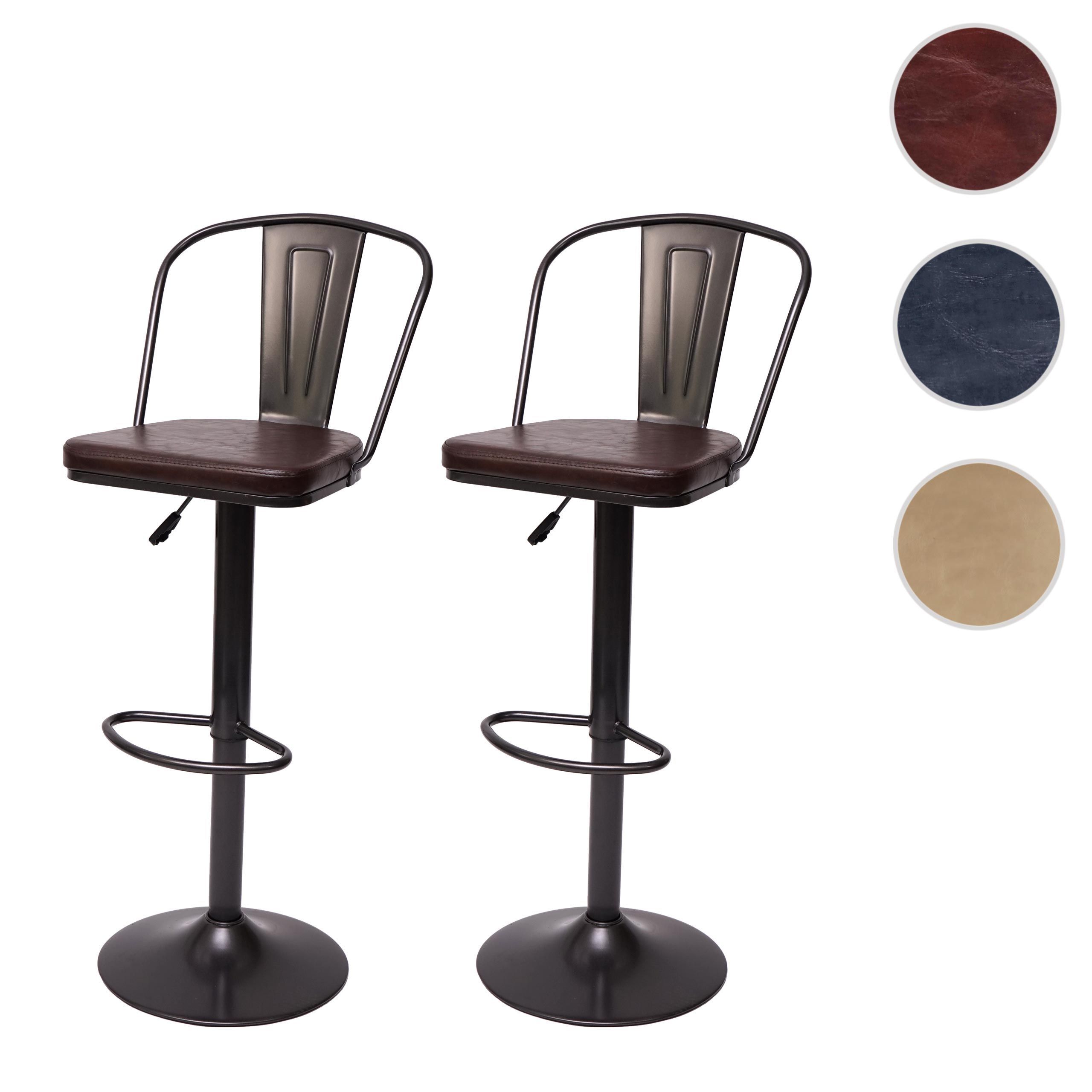 Mendler 2er-Set Barhocker HWC-H10a, Tresenhocker Barstuhl höhenverstellbar drehbar Industrial