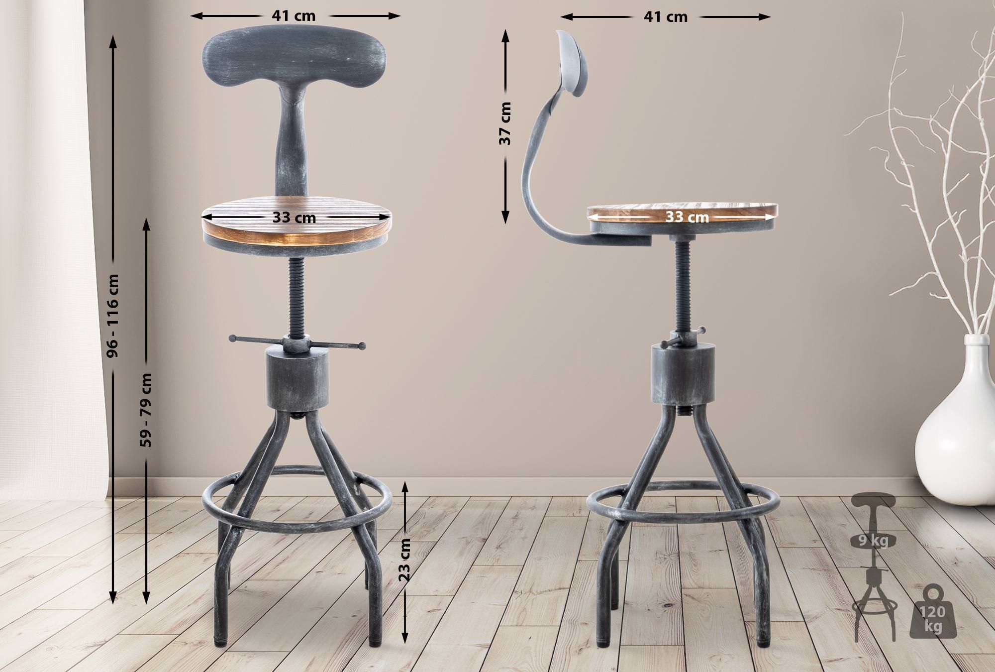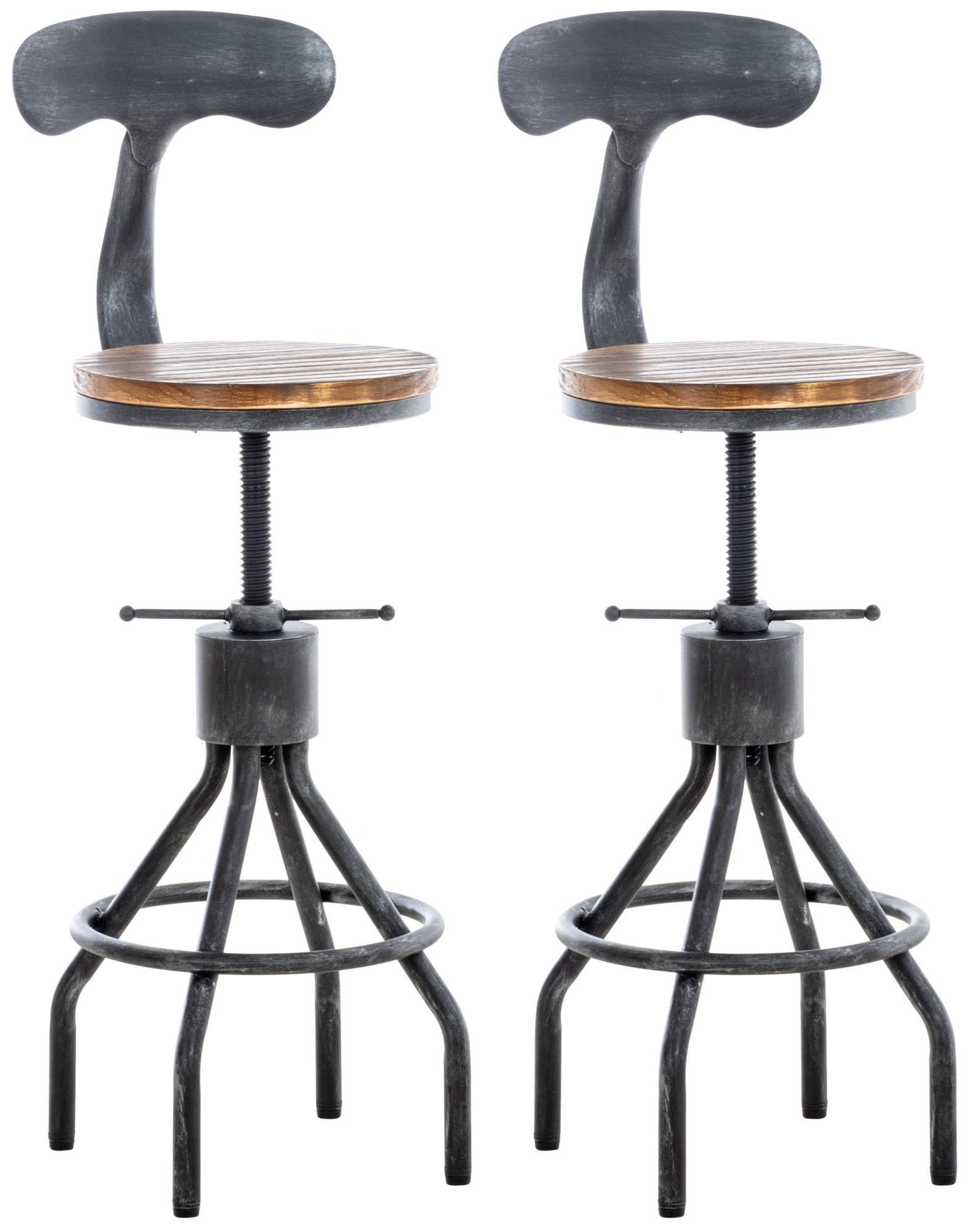 2er Set Barhocker SALIS Holz Antik silber 41x41x96 cm Barstuhl Mit Lehne Tresenhocker