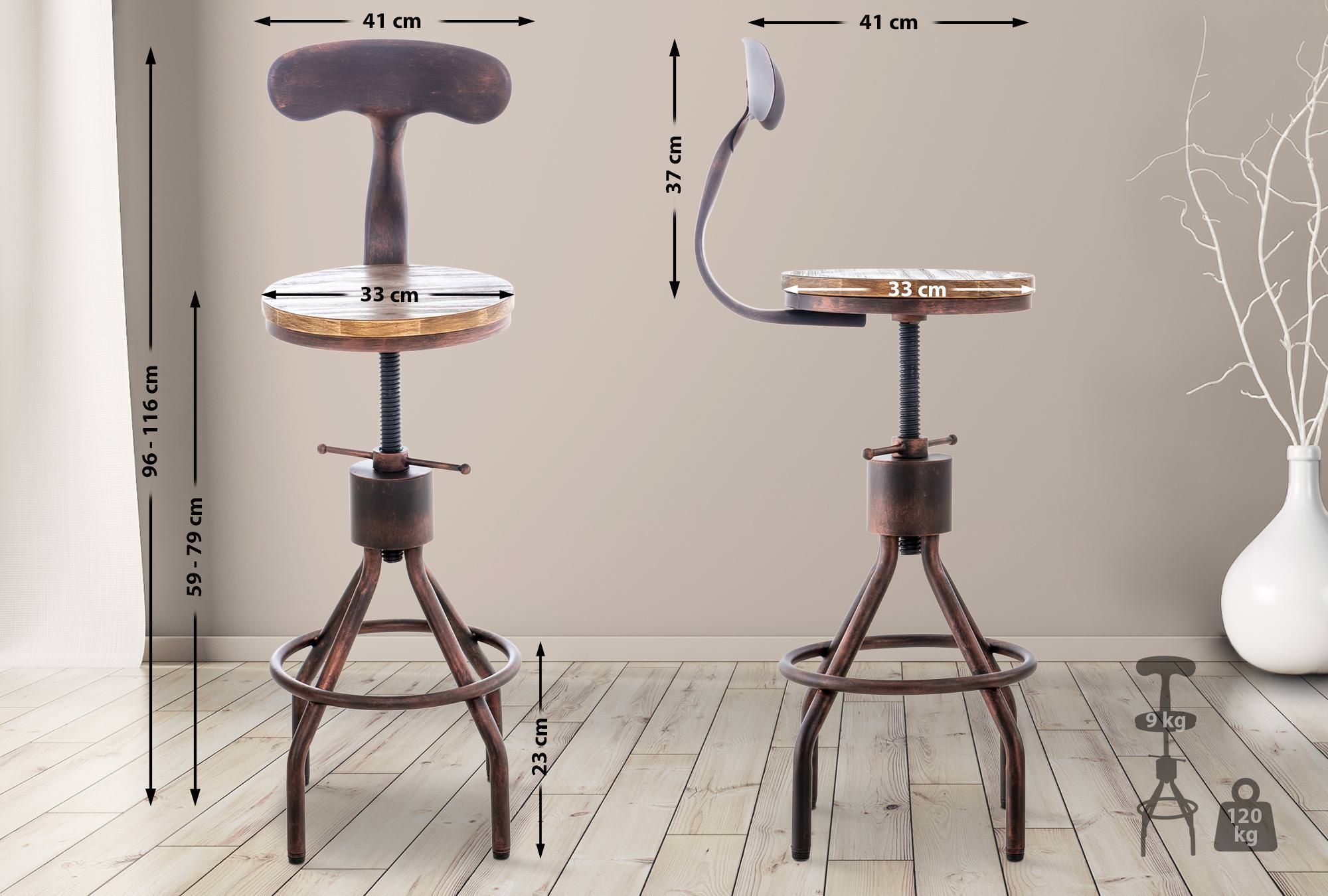 2er Set Barhocker SALIS Holz Bronze 41x41x96 cm Barstuhl Mit Lehne Tresenhocker