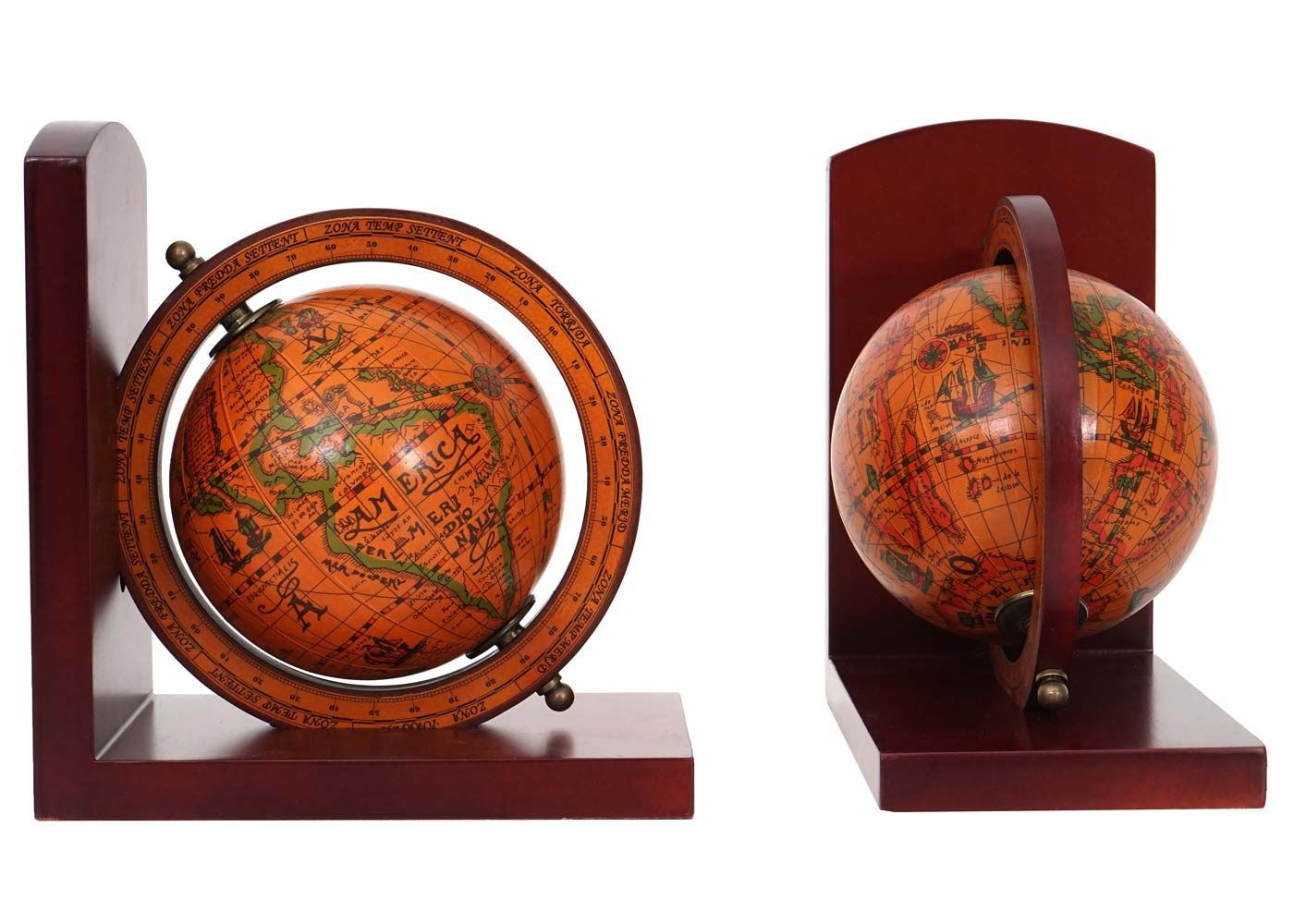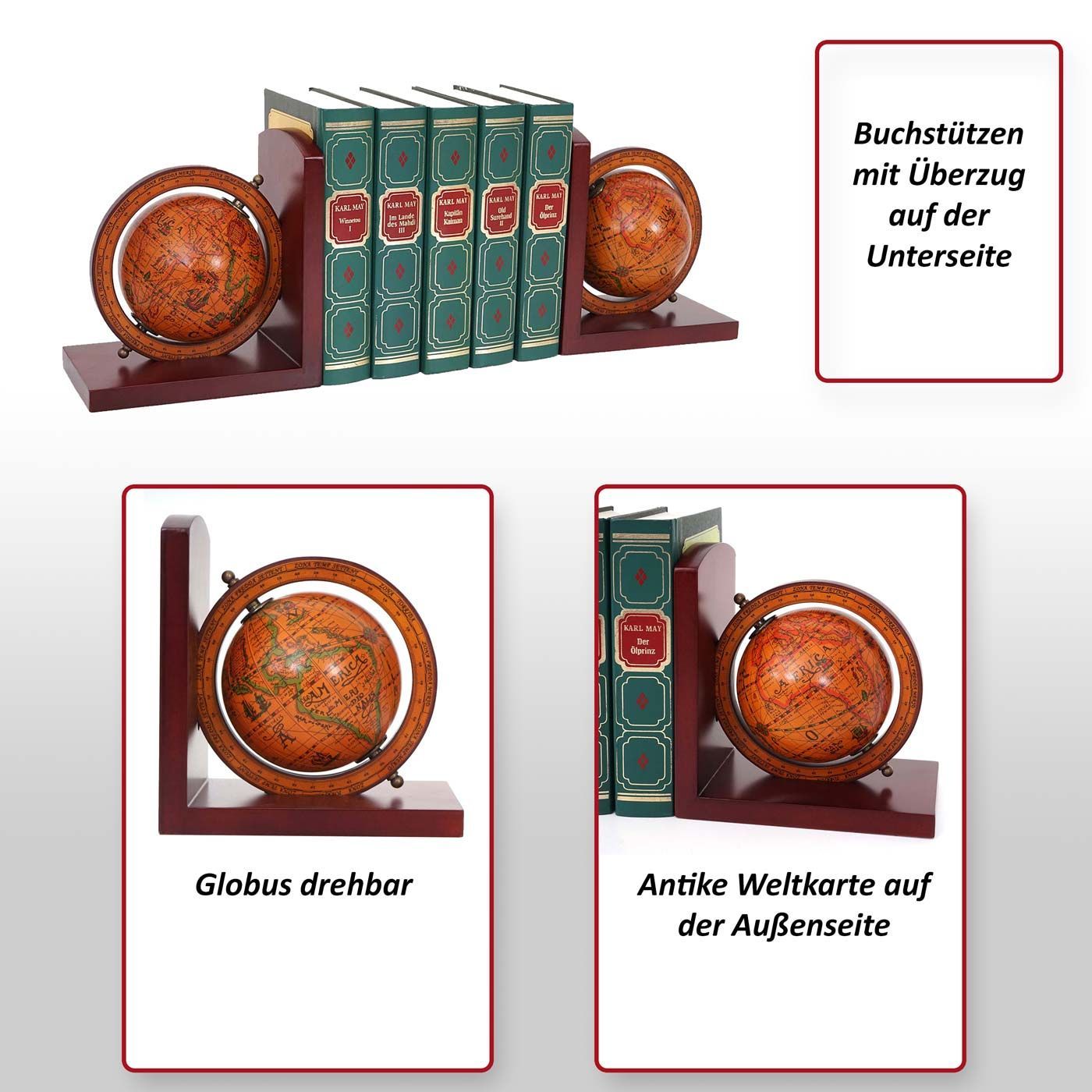 Mendler 2er-Set Buchstützen HWC-B79, Bücherstütze Globus Weltkugel, MVG-zertifiziert braun