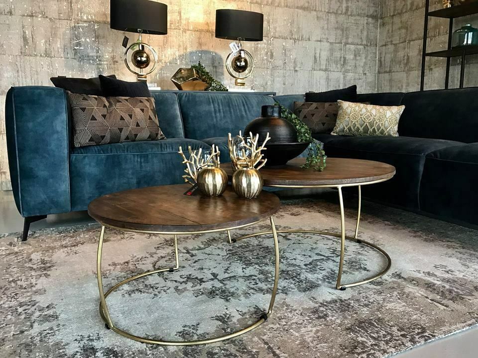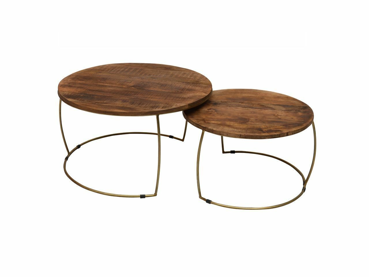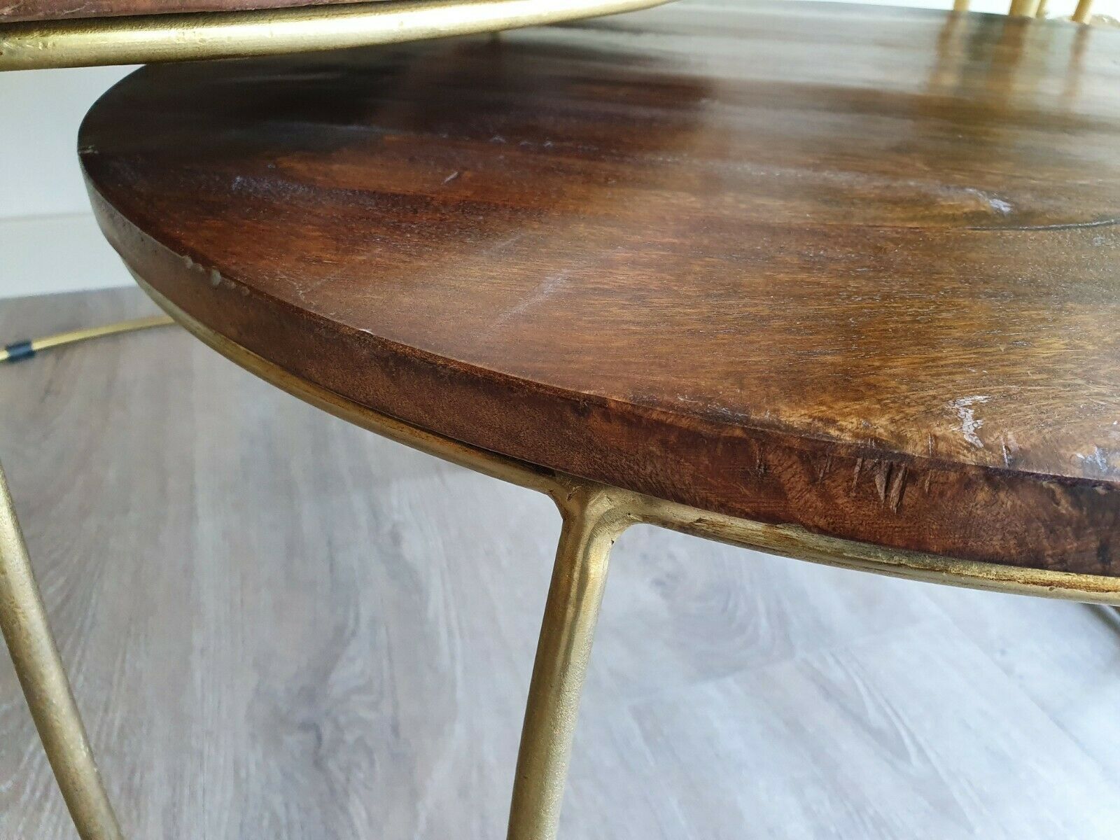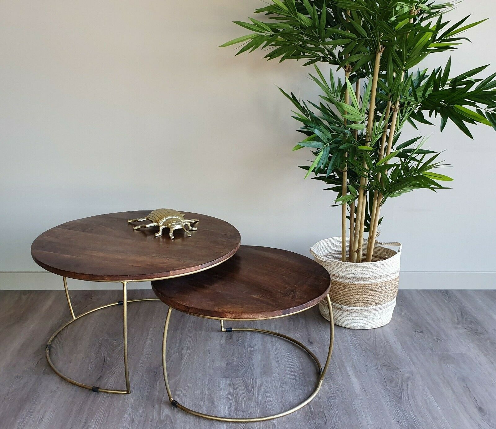2er Set Couchtisch Emma Gold rund Metall Mango Satztische Beistelltisch braun