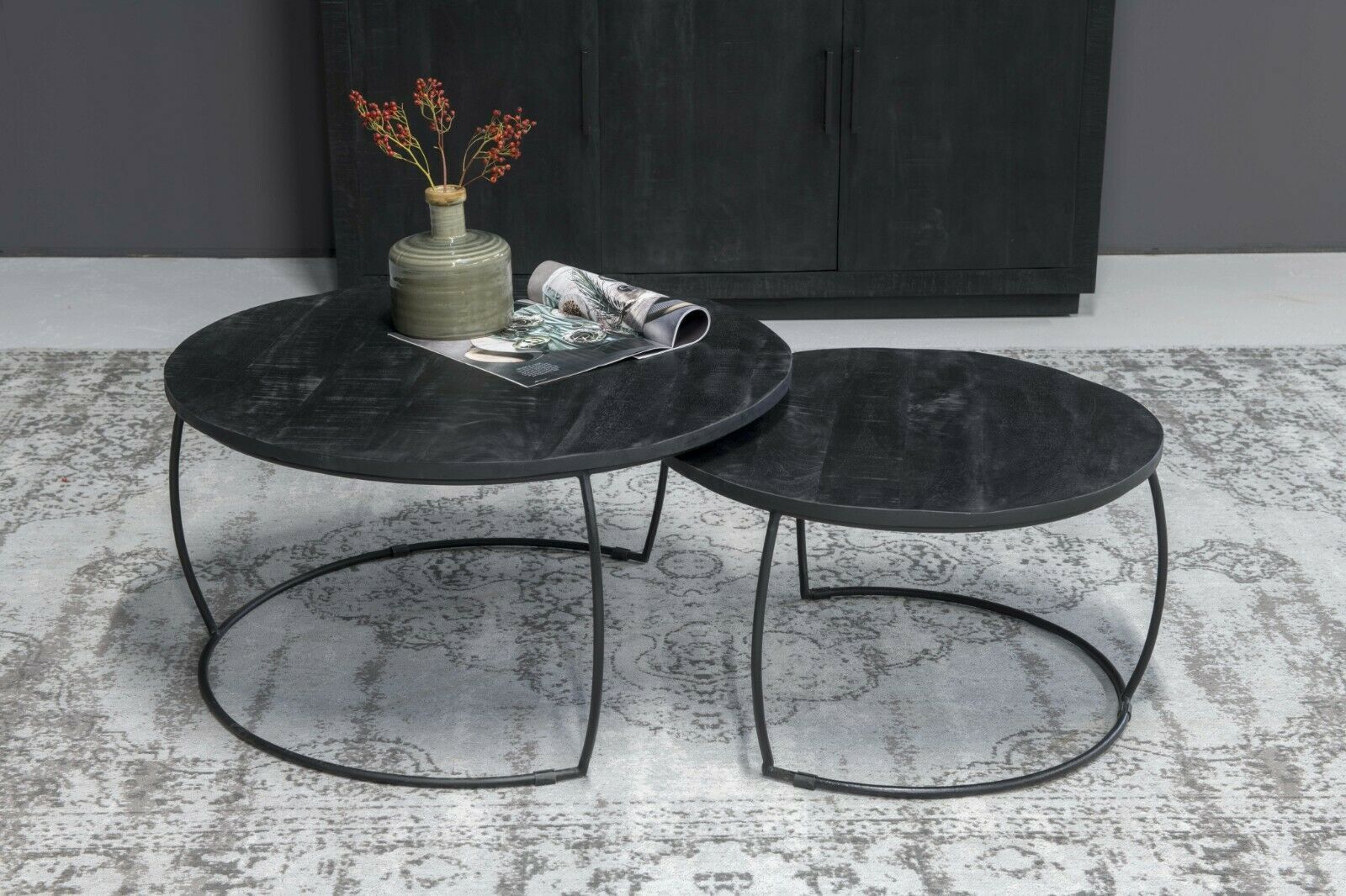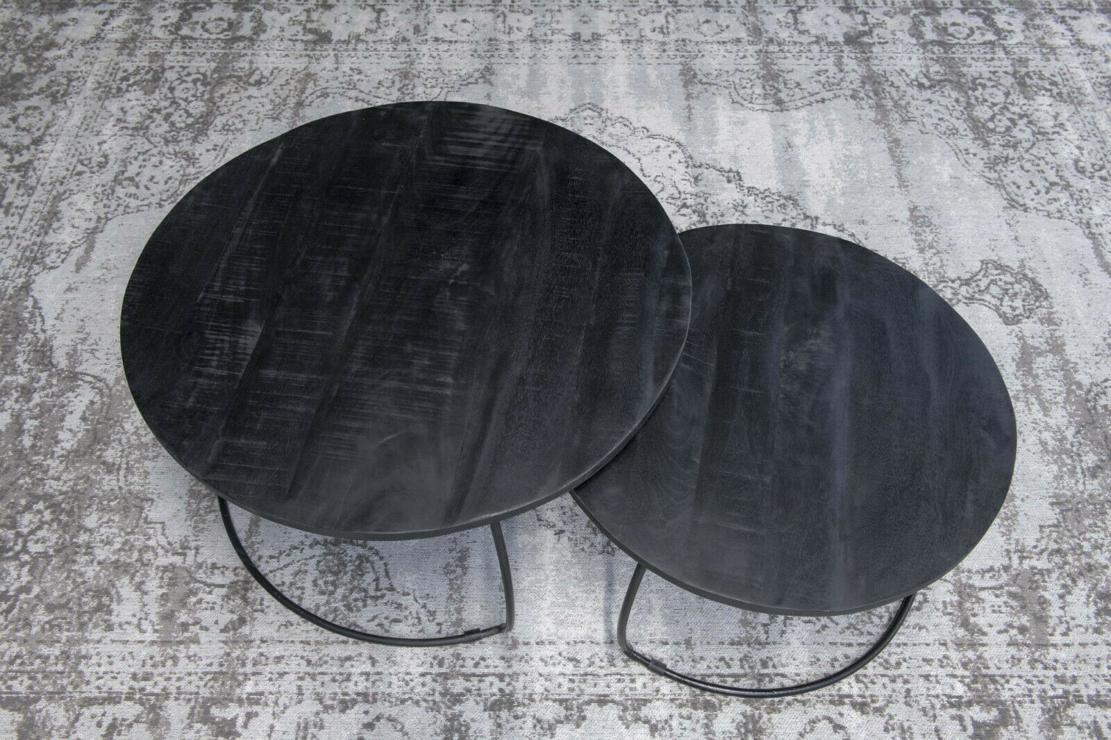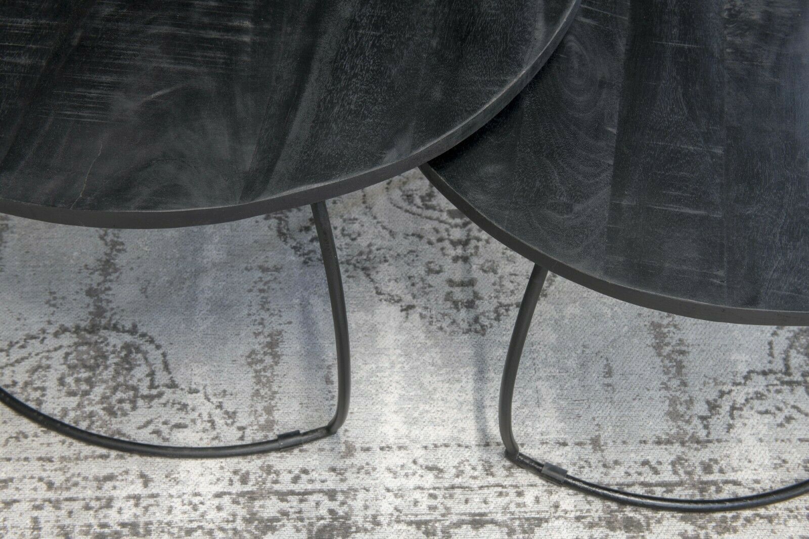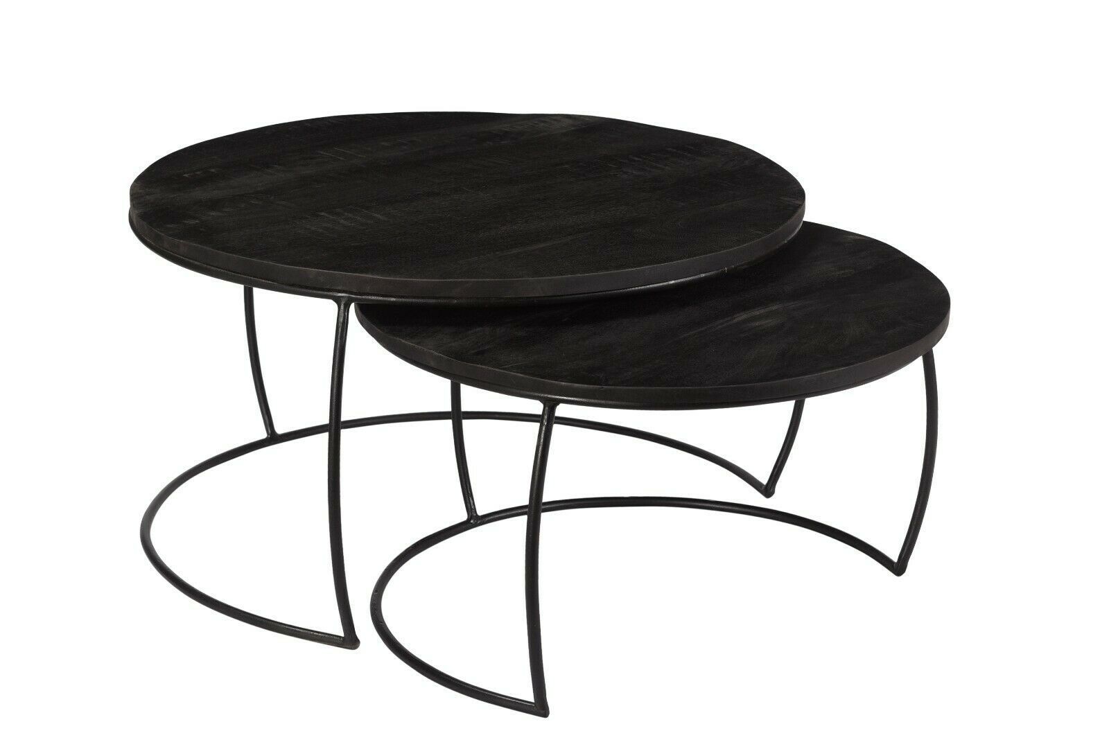 2er Set Couchtisch Emma Schwarz rund Metall Mango Satztische Beistelltisch