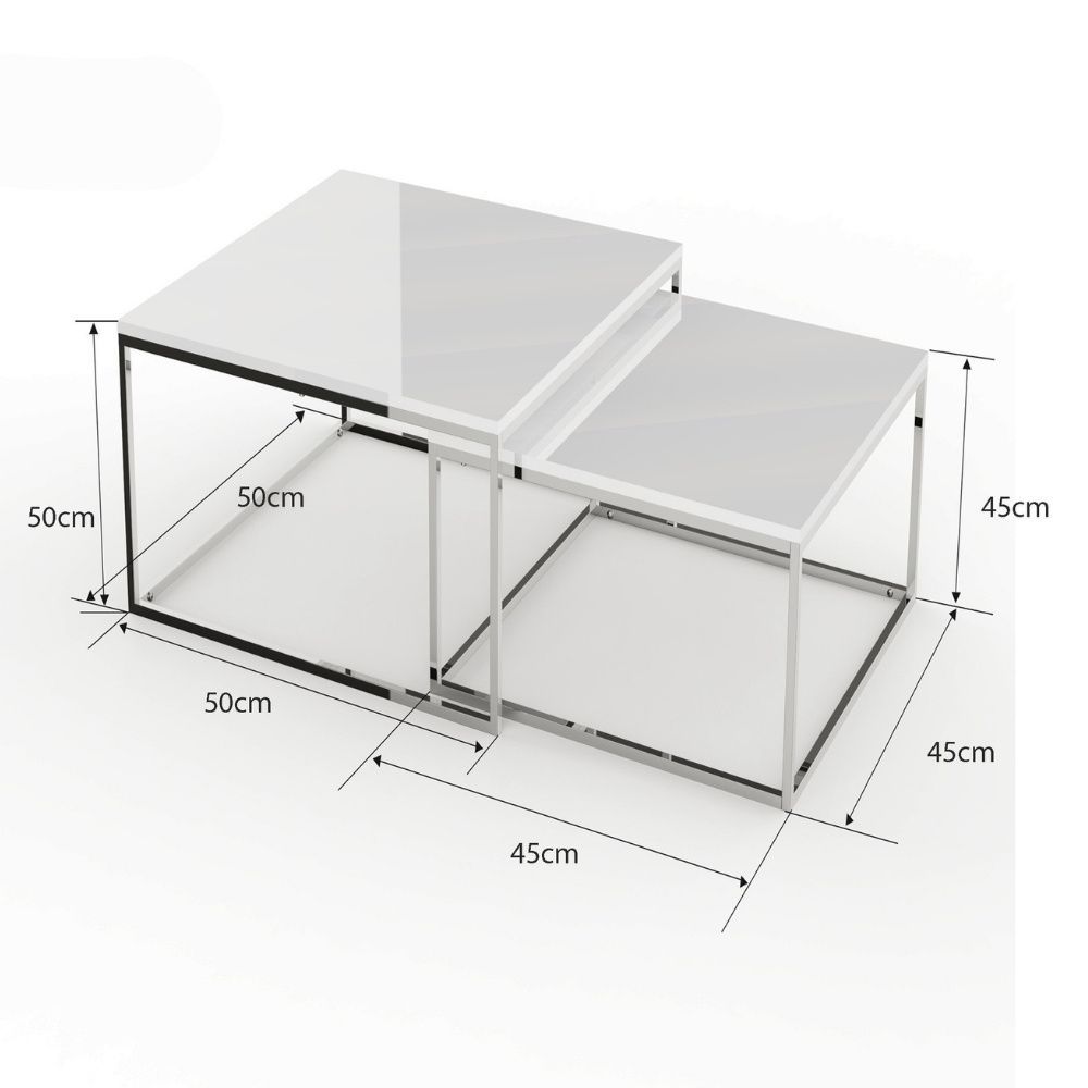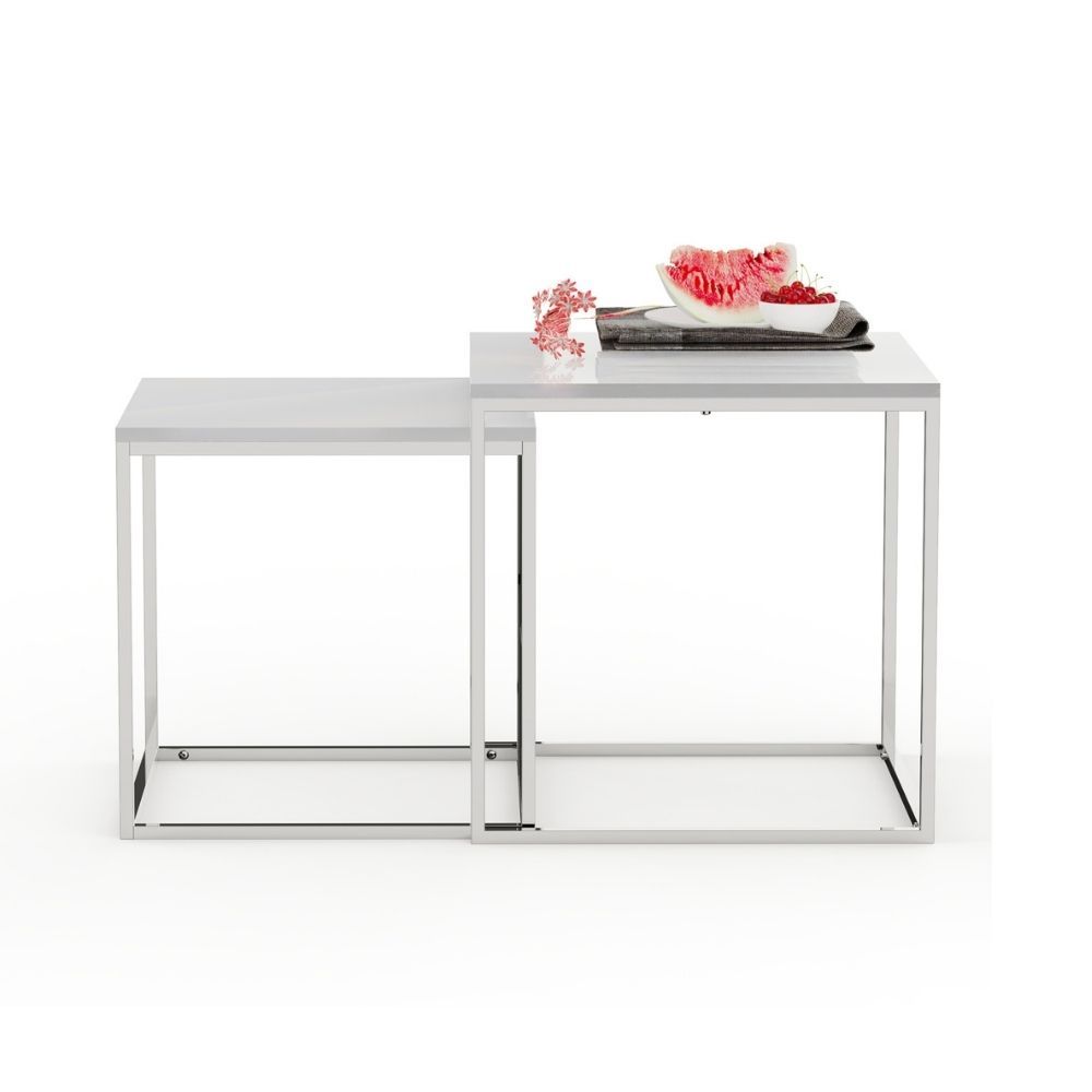 2er Set Design Beistelltisch MENTO 50cm weiss hochglanz Edelstahl-Gestell