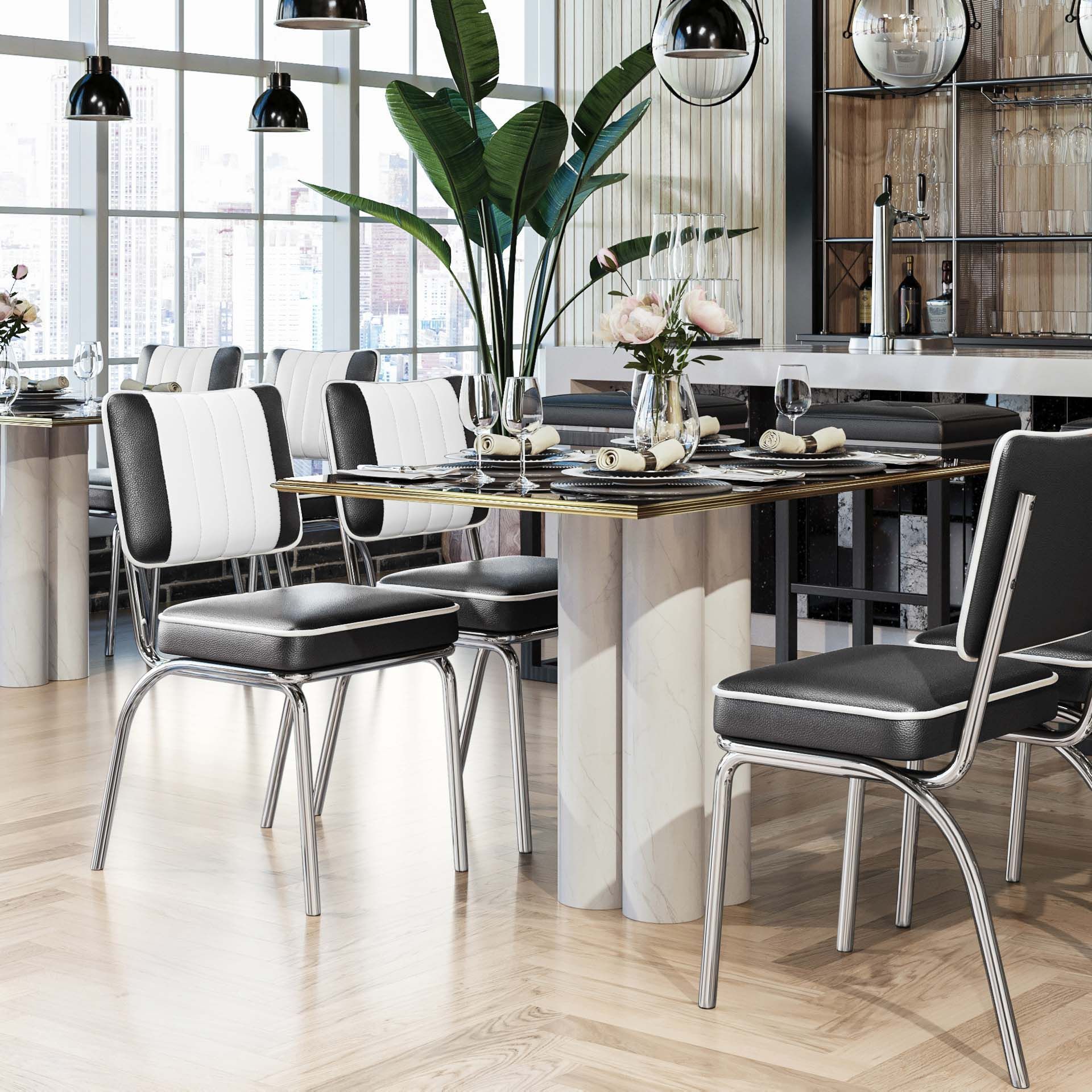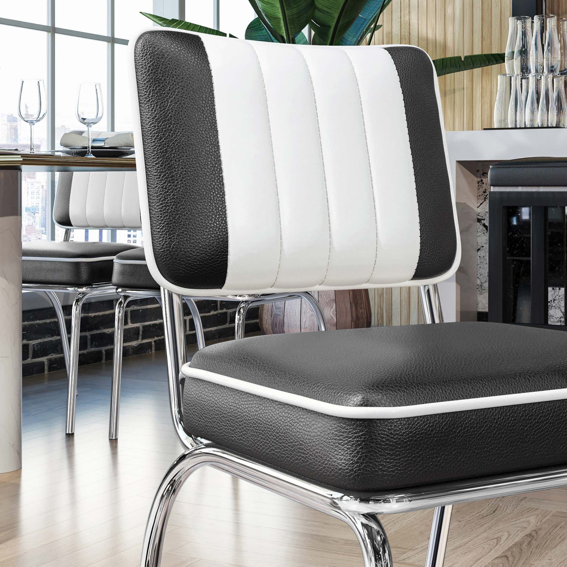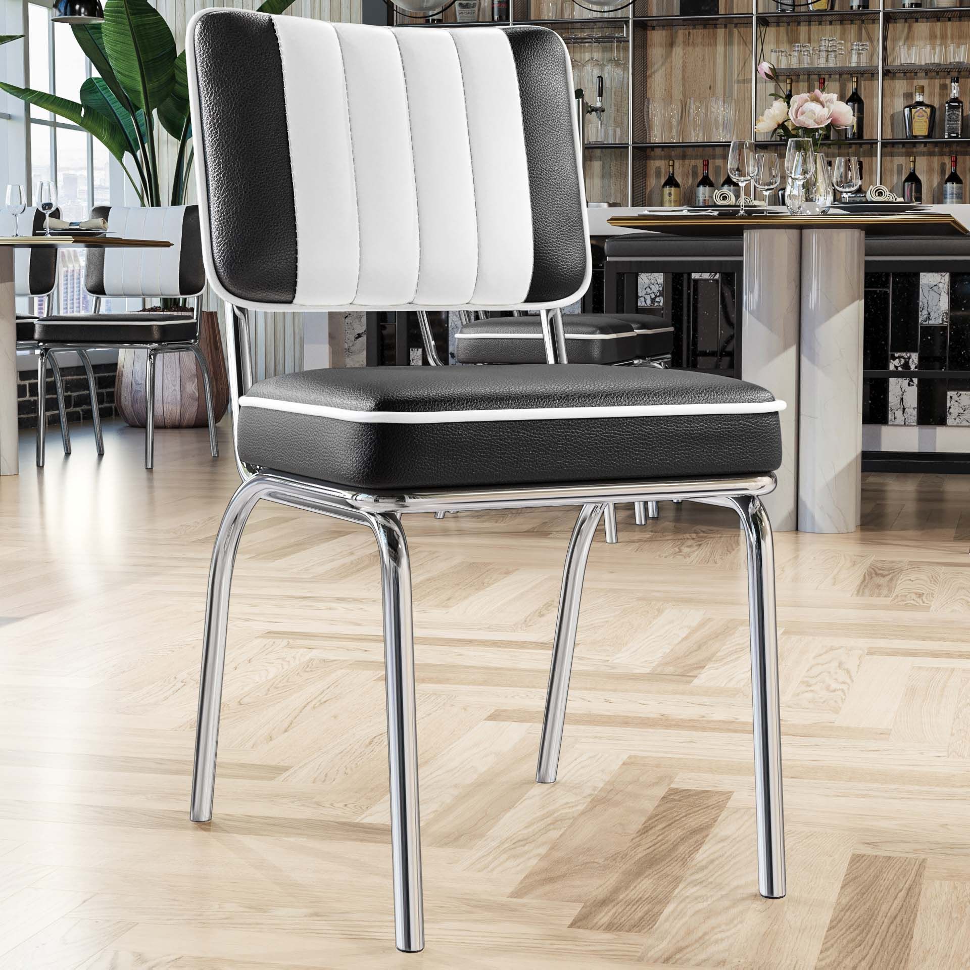2er-Set DINER STEEL CHROME | Dinerstuhl | Schwarz | Leder | American Diner Stuhl, Am