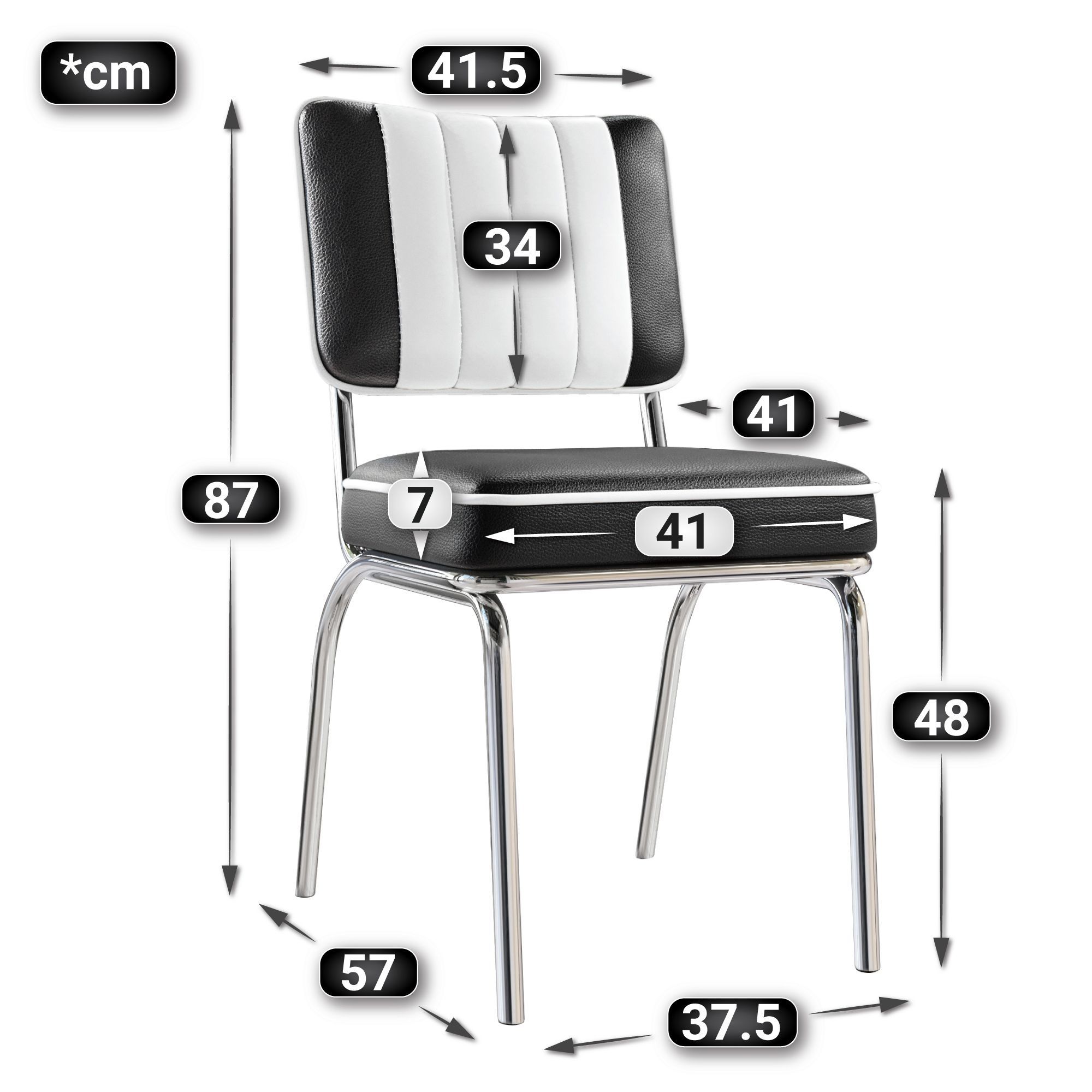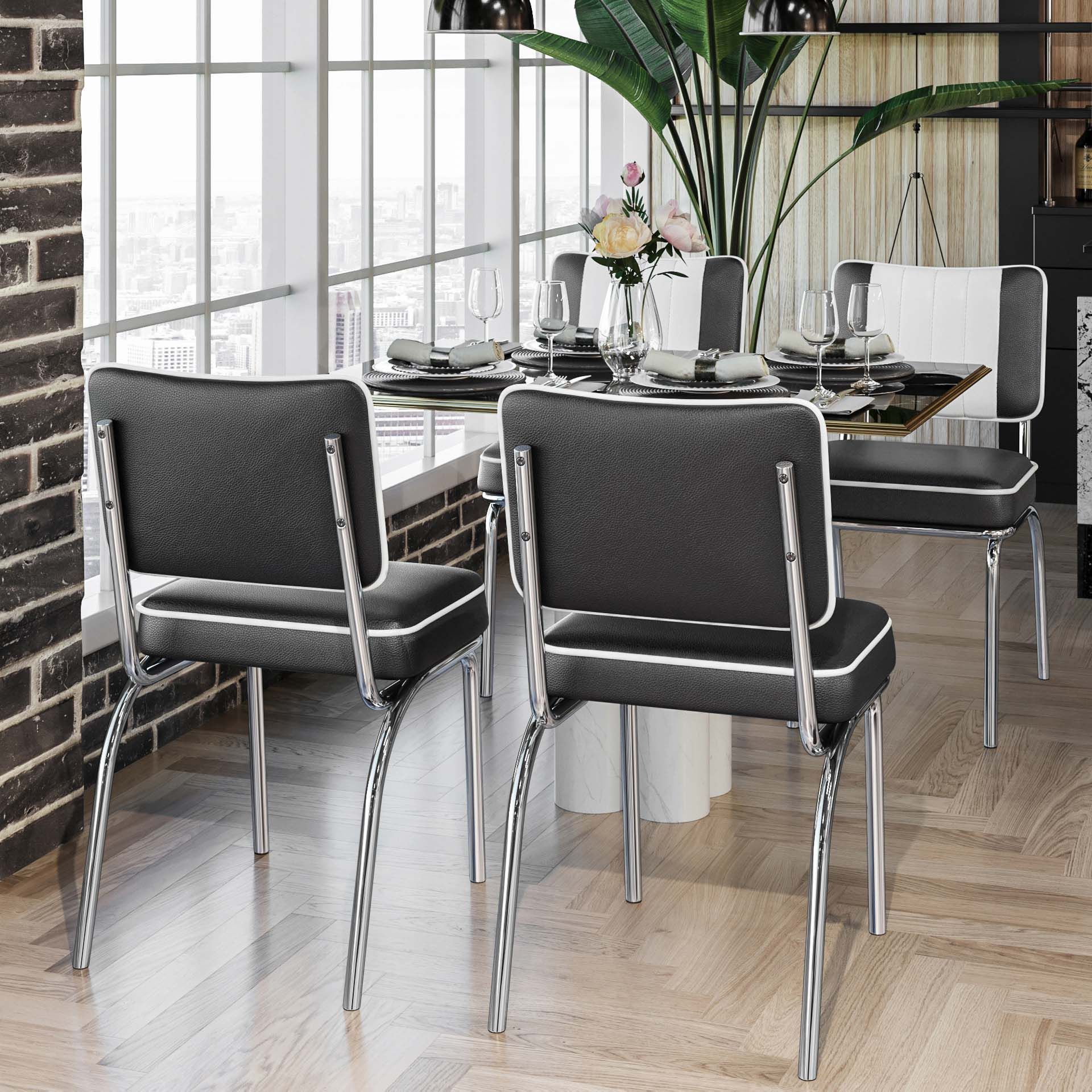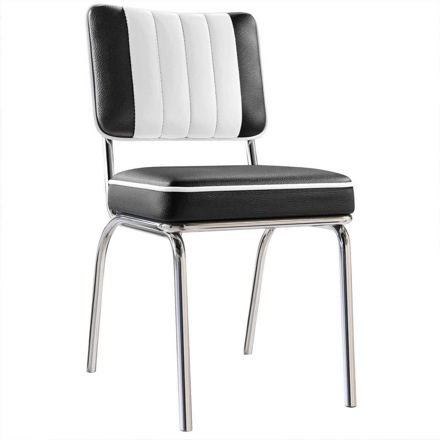 2er-Set DINER STEEL CHROME | Dinerstuhl | Schwarz | Leder | American Diner Stuhl, Am