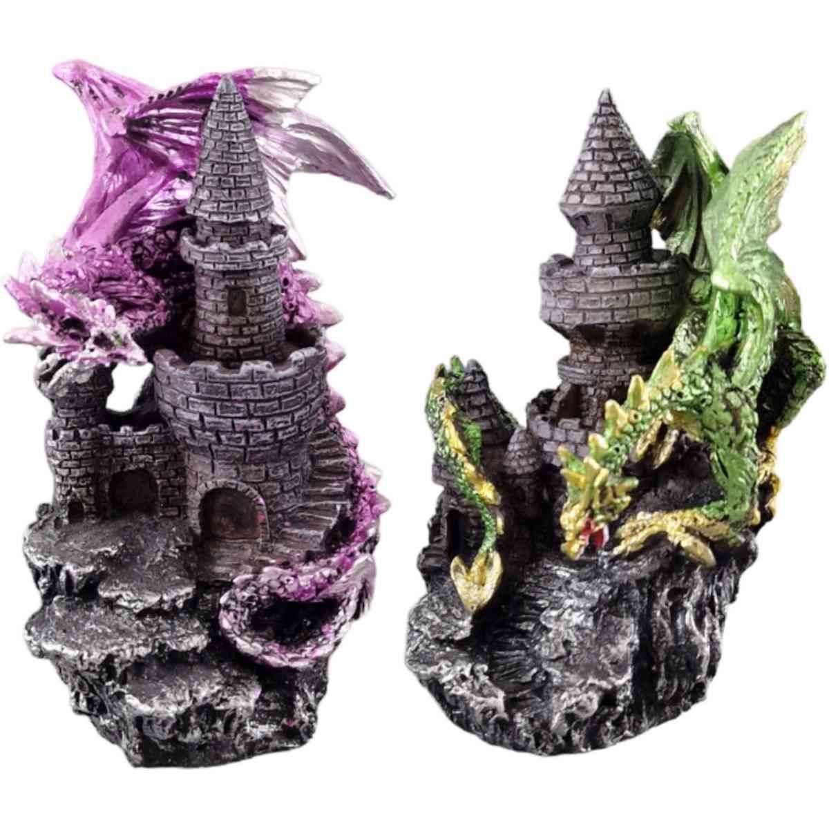 2er Set Drache auf Burg, lila und grün