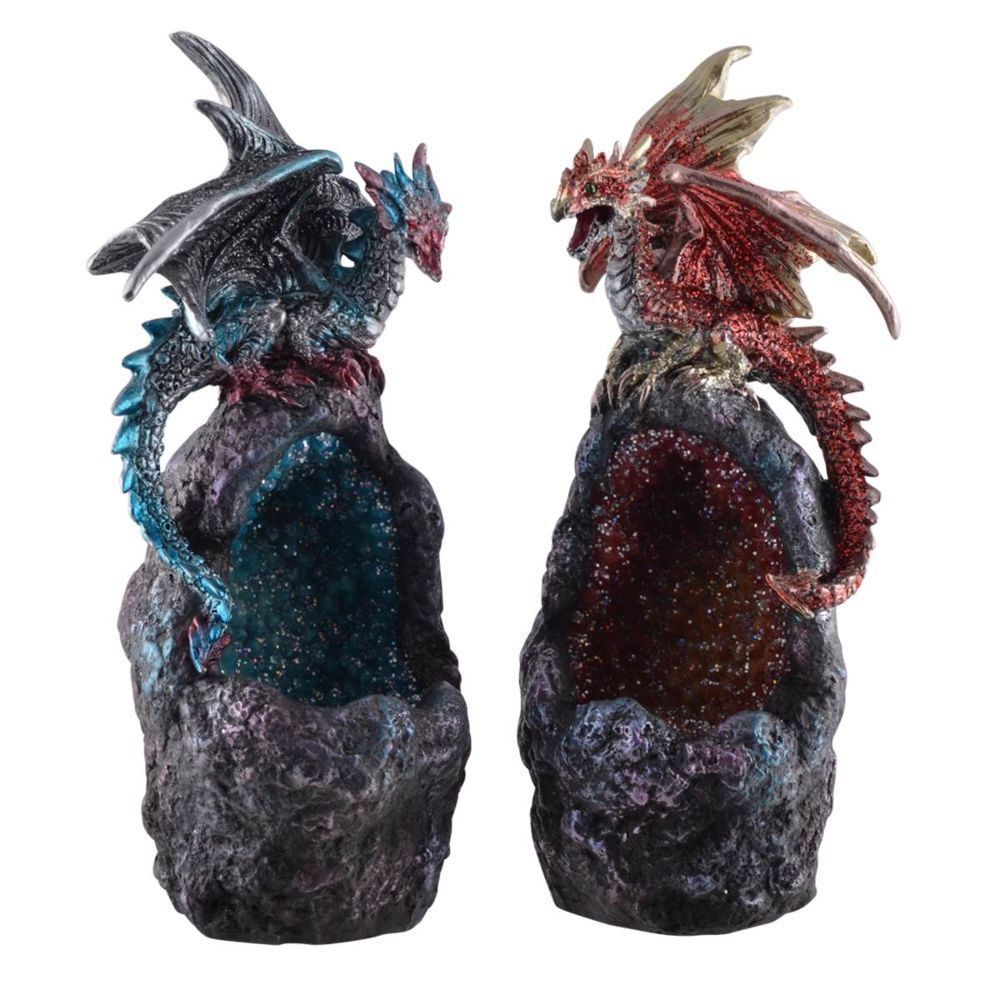 2er Set Drache auf Stein sitzend mit LED-Beleuchtung - rot/ blau