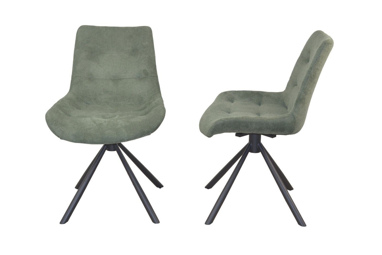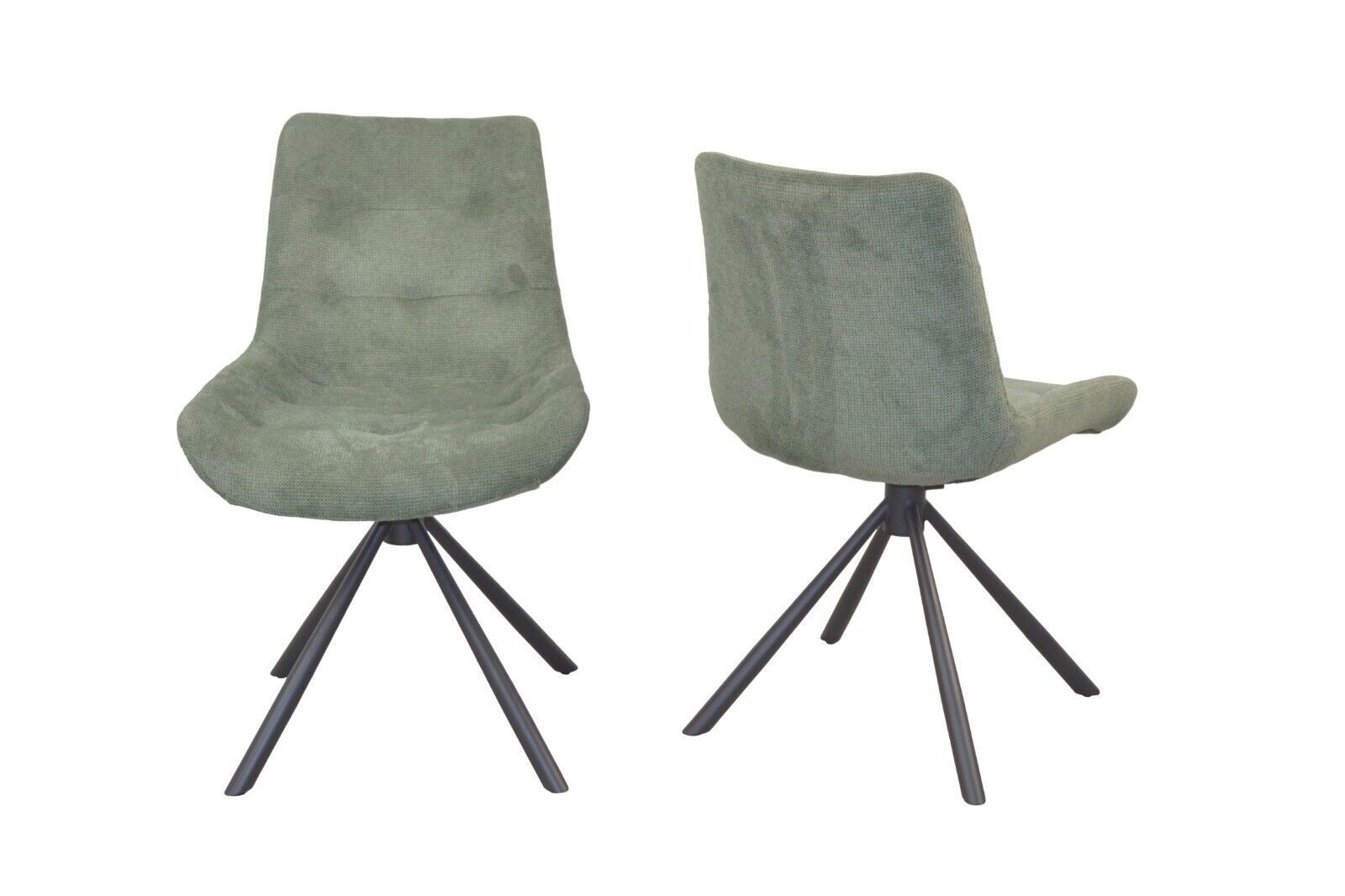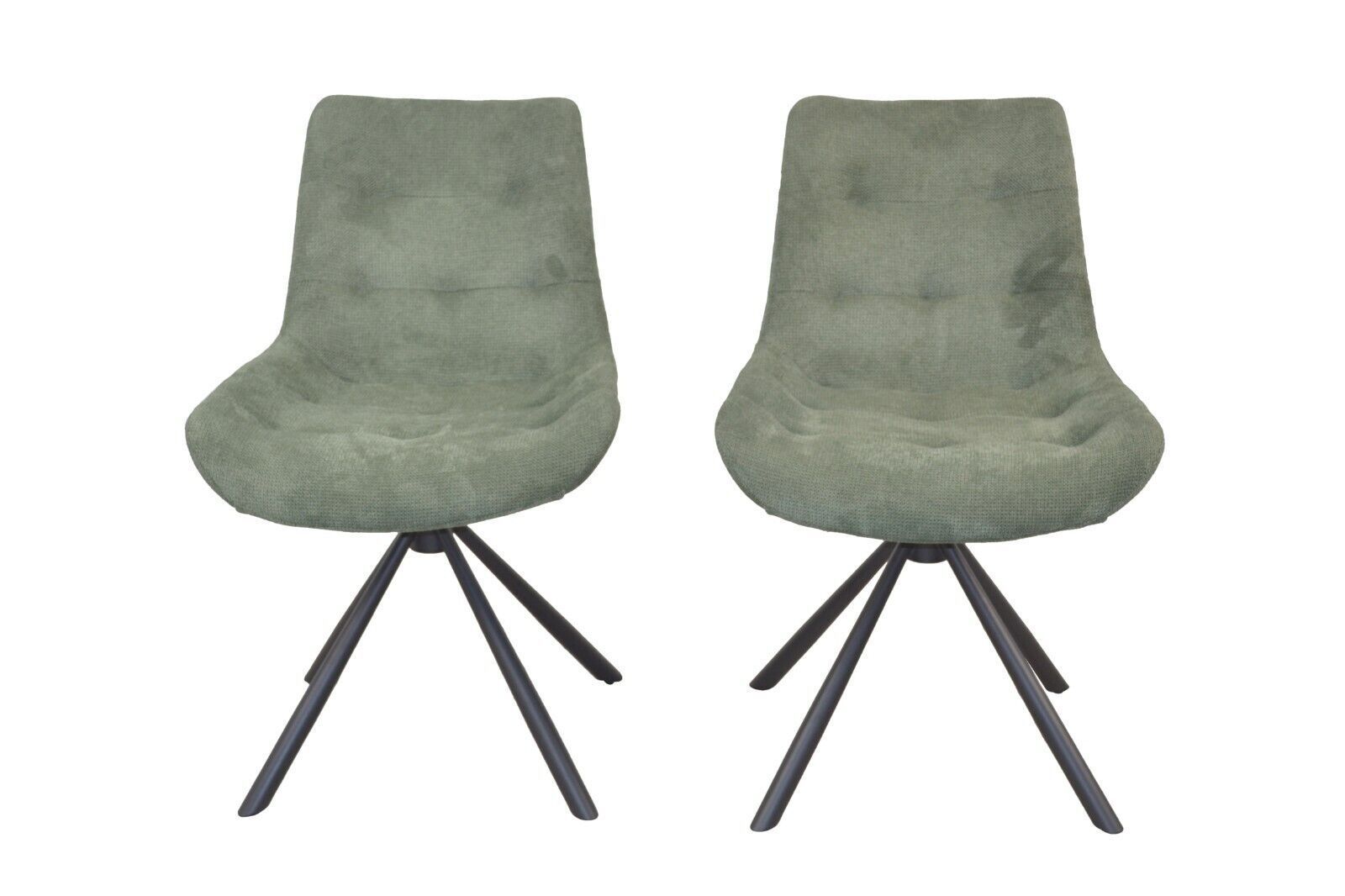 2er Set Stühle drehbar Stoff grün Moderner Esszimmerstuhl im 2er Set. Mit einem stabilen Gestell aus Stahlrohr, schwarz pulverbeschichtet. Die bequeme Sitzschale ist drehbar und komplett schaumstoffgepolstert. Sitzfläche ist mit einer Steppung gearbeitet. Stoffbezüge (100% Polyester) in Cordoptik ge