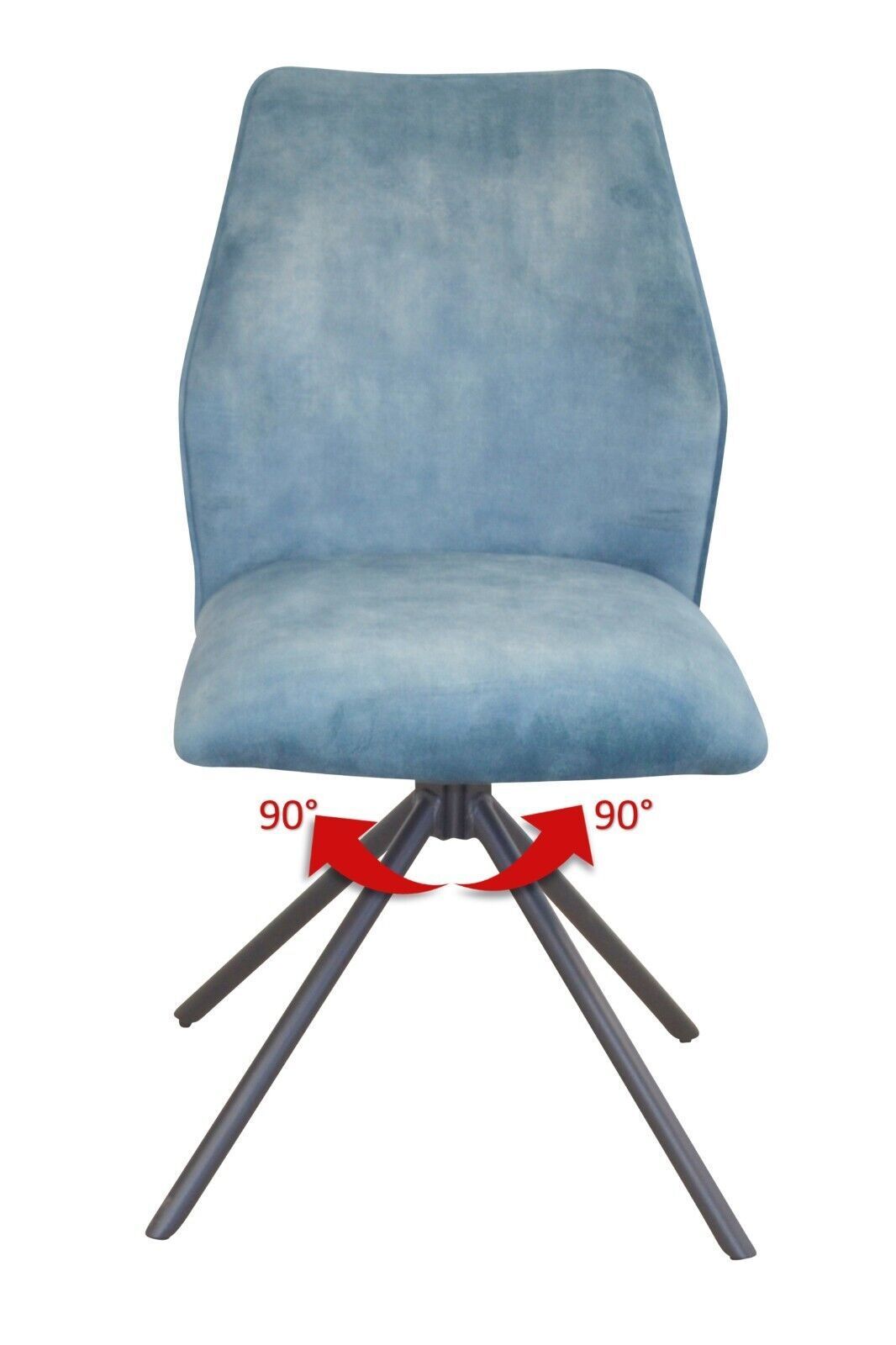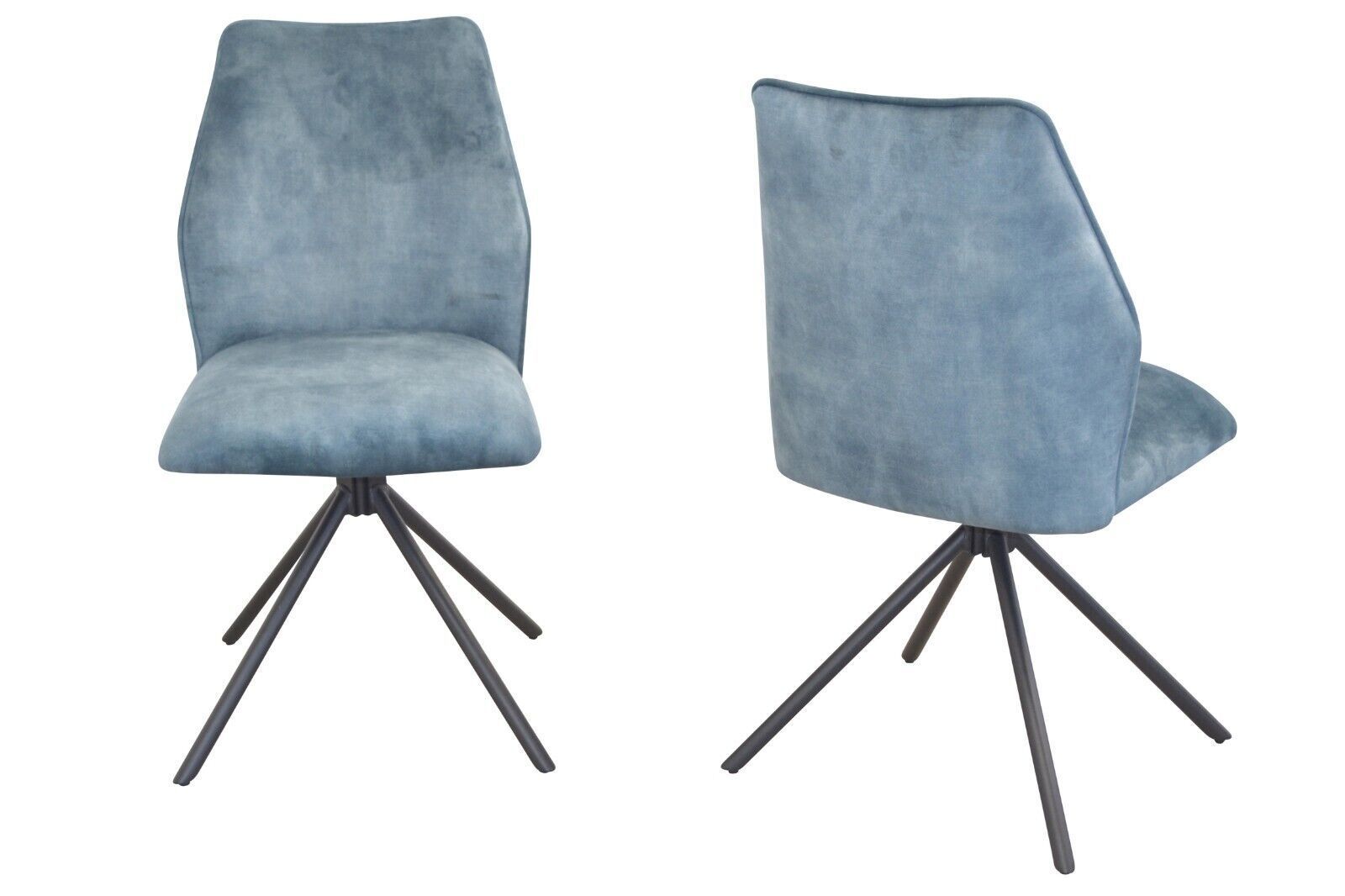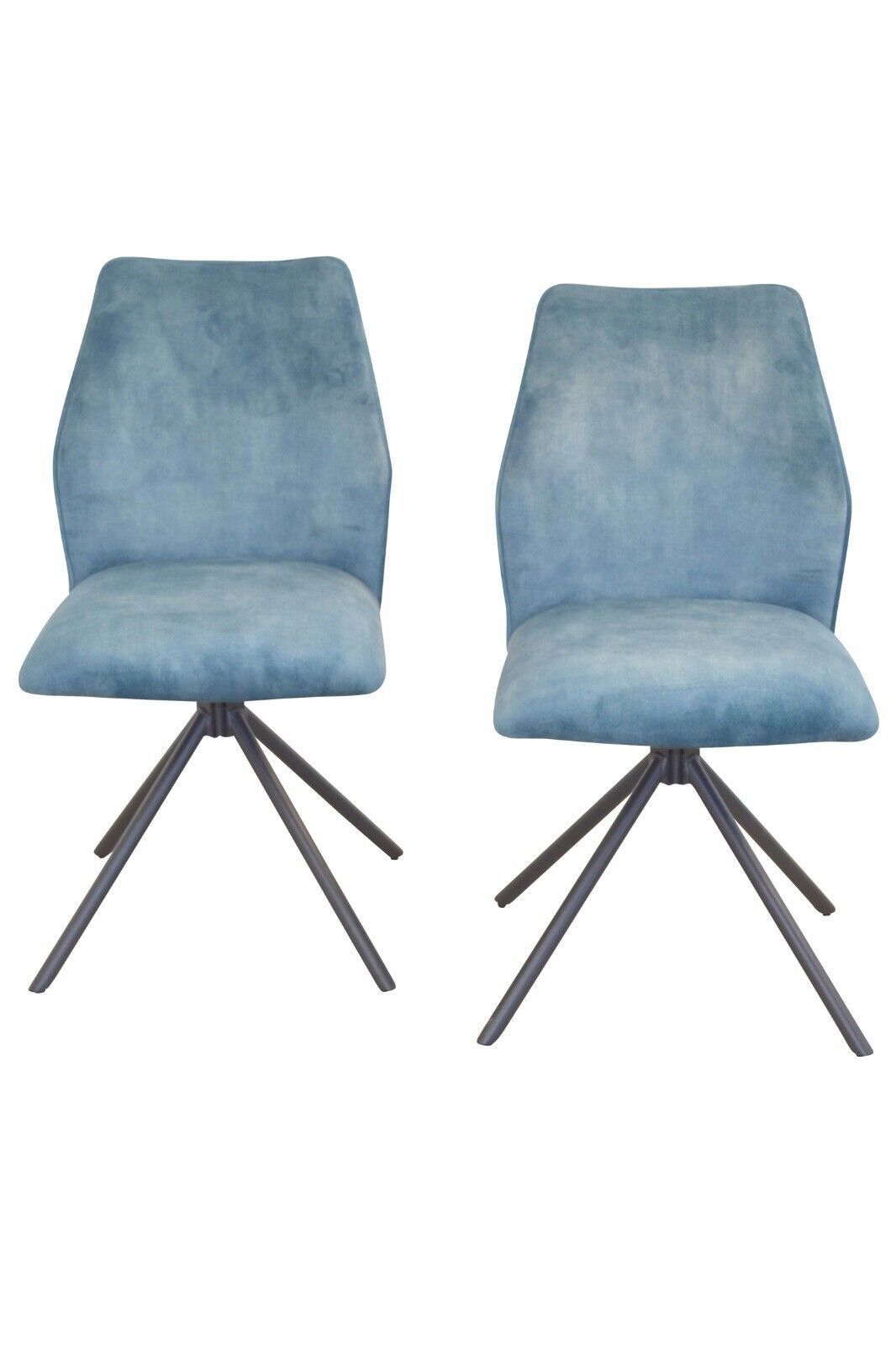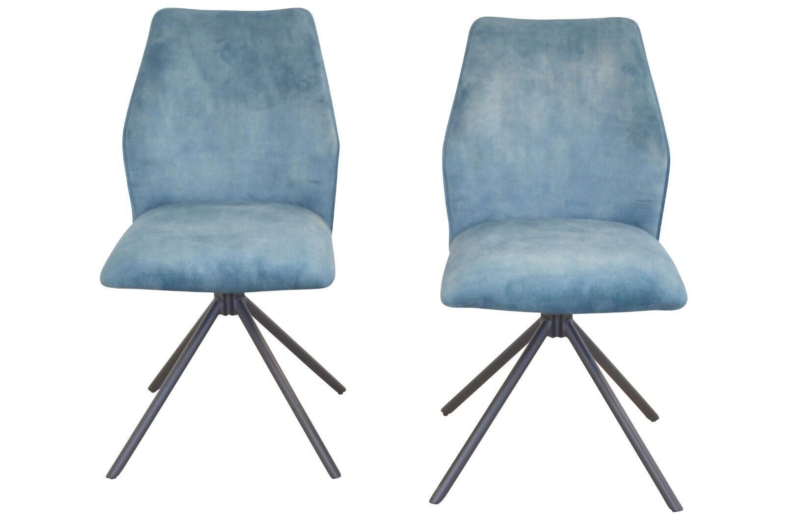2er Set Stühle drehbar Stoff blau Moderner Esszimmerstuhl im 2er Set. Mit einem stabilen Gestell aus Stahlrohr, schwarz pulverbeschichtet. Oben eine drehbare Sitzschale (rechts links um 90°) mit Memoryfunktion. Komplett schaumstoffgepolstert und mit einem attraktiven Vintage-Stoffbezug (100% Polyest