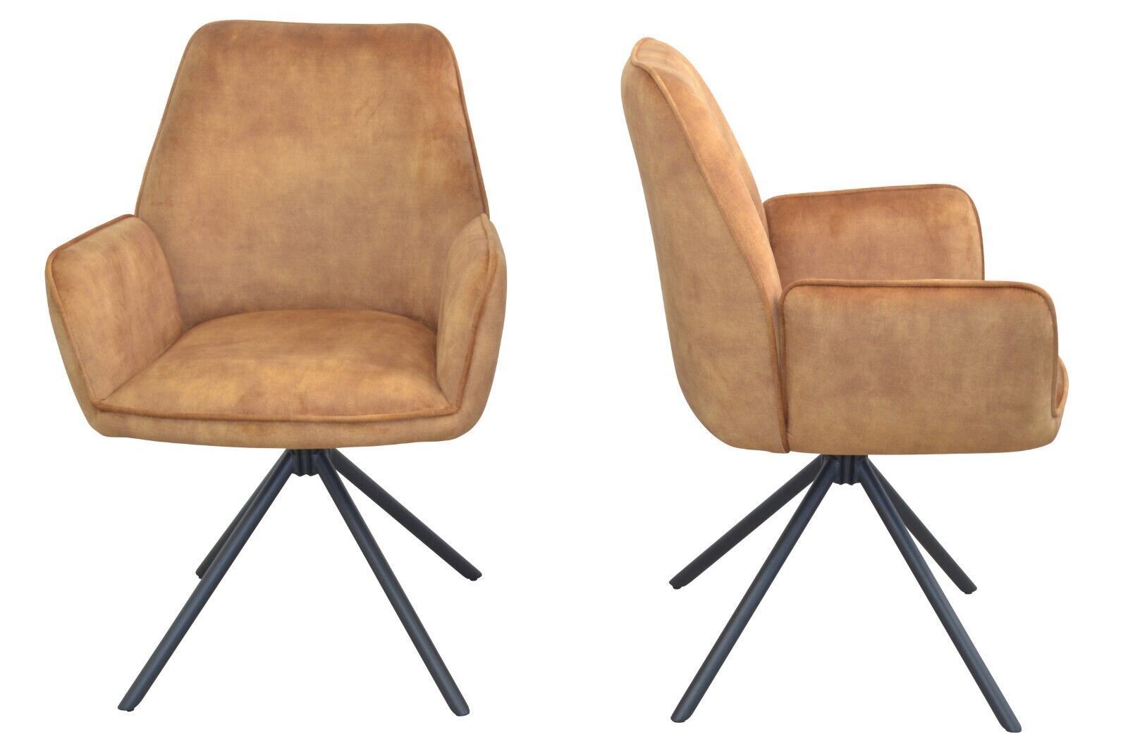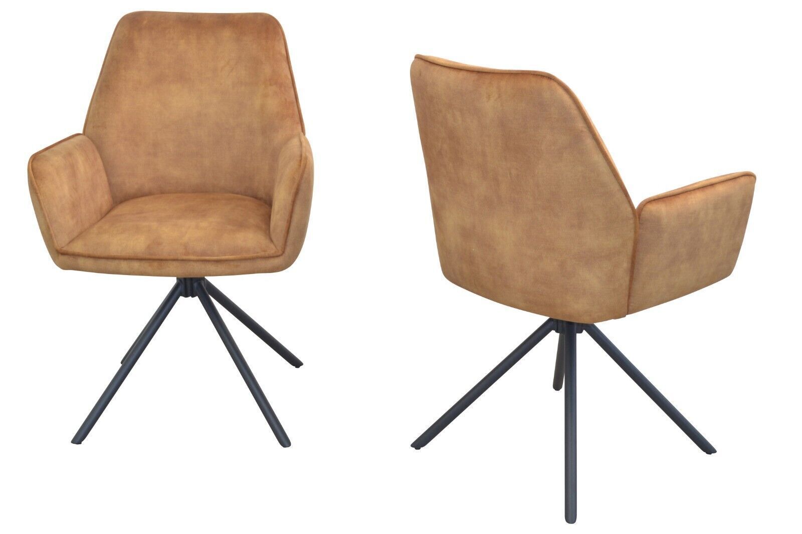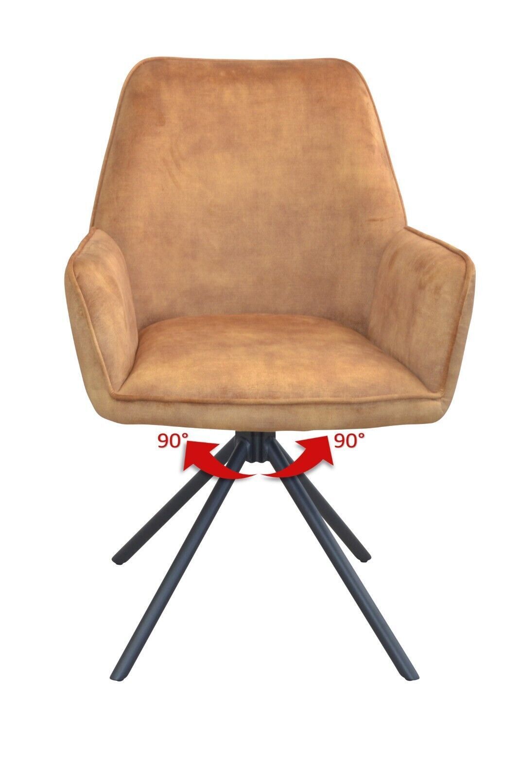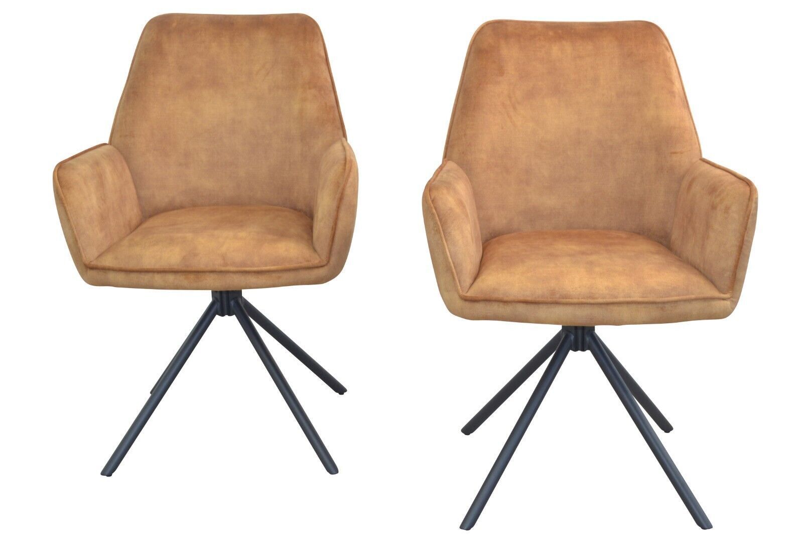 2er Set Stühle drehbar Stoff Ockerfarben Moderner Esszimmerstuhl im 2er Set. Mit einem stabilen Gestell aus Stahlrohr, schwarz pulverbeschichtet. Oben eine drehbare Sitzschale (rechts links um 90°) mit Memoryfunktion. Komplett schaumstoffgepolstert und mit einem attraktiven Vintage-Stoffbezug (100%