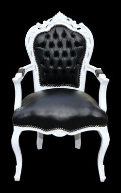 Casa Padrino Barock Esszimmerstuhl Schwarz / Weiß Lederoptik mit Armlehnen