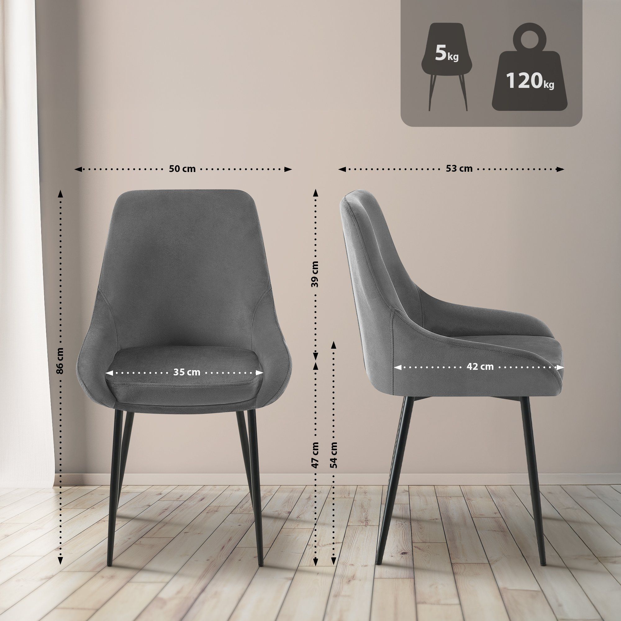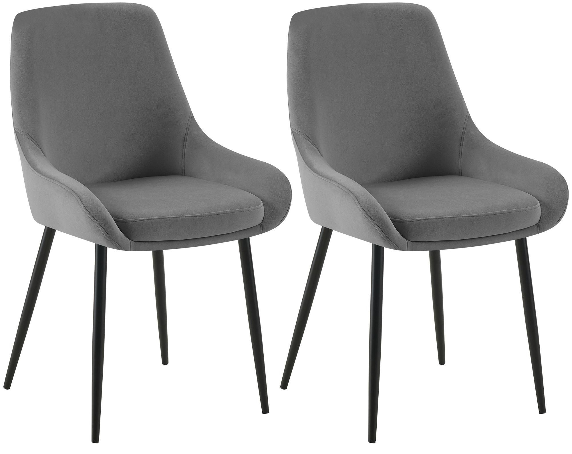 2er Set Esszimmerstuhl Elmira Samt schwarz, dunkelgrau