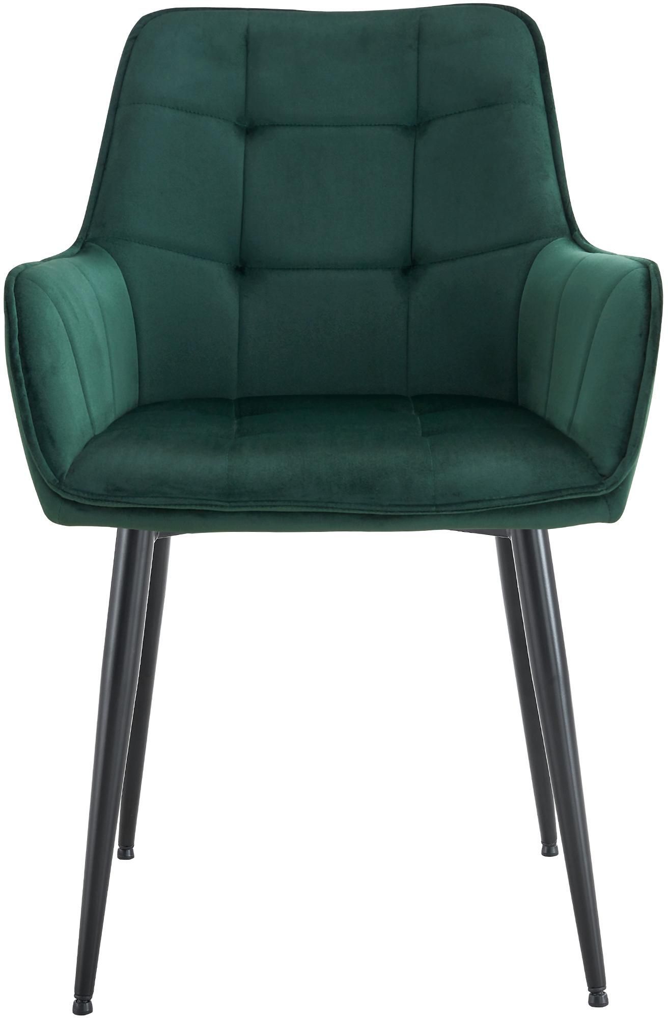 2er Set Esszimmerstuhl Ferndale Samt, dunkelgrün