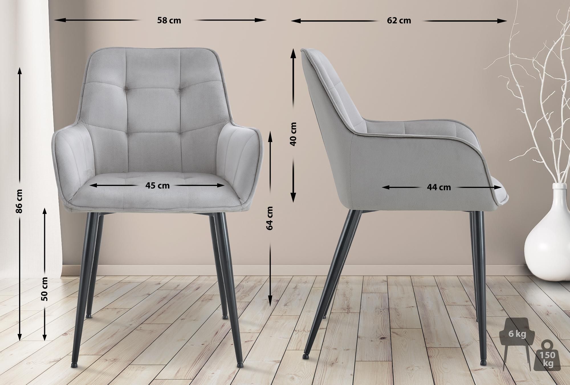 2er Set Esszimmerstuhl Ferndale Samt, hellgrau