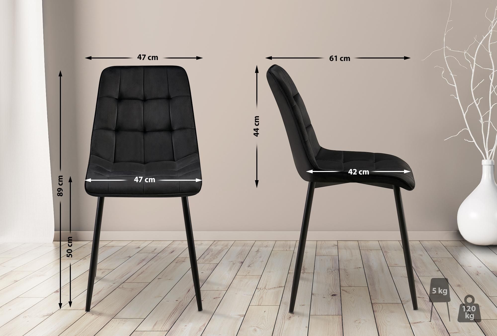 2er Set Esszimmerstuhl Gifford Samt, schwarz